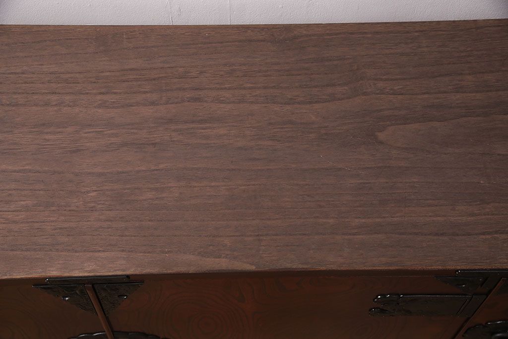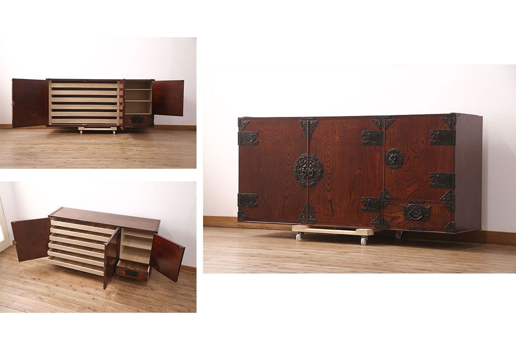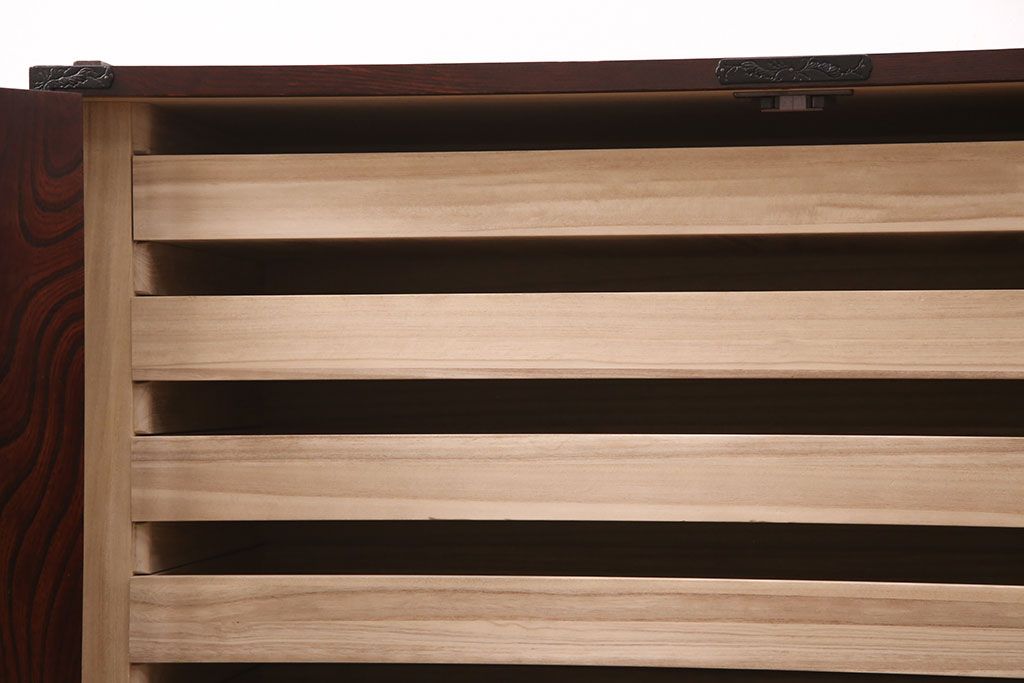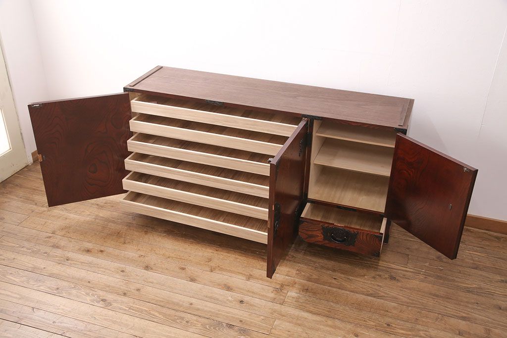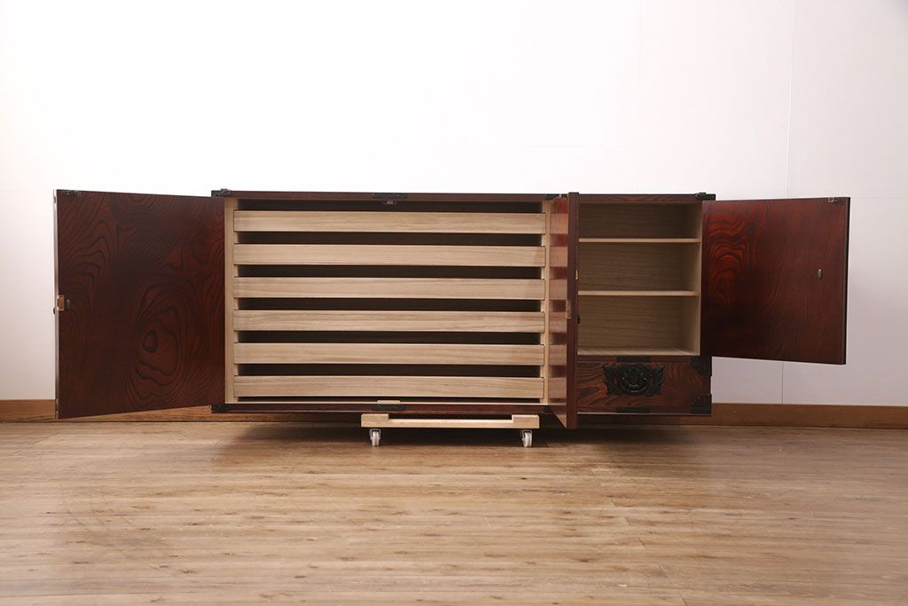 ラフジュ工房> 民芸家具 > 中古 民芸家具 岩谷堂箪笥 天板・脚(台輪)付きリメイク 和の趣あふれる現代のお部屋にぴったりの衣装盆付きサイドボード(ローボード、着物箪笥、収納棚、テレビ台)(R-051255)