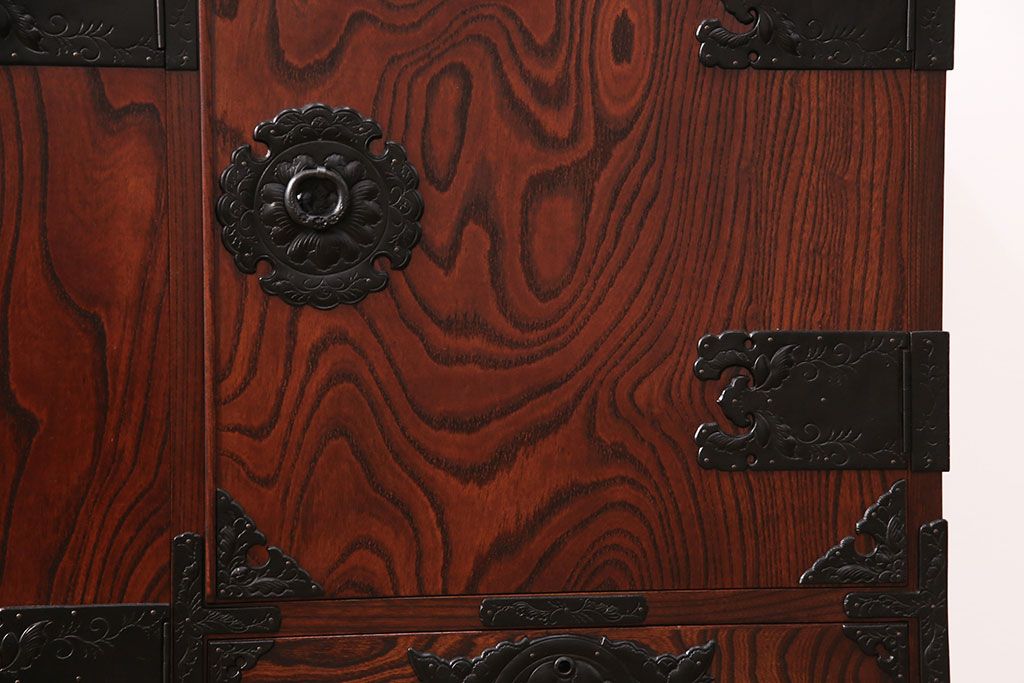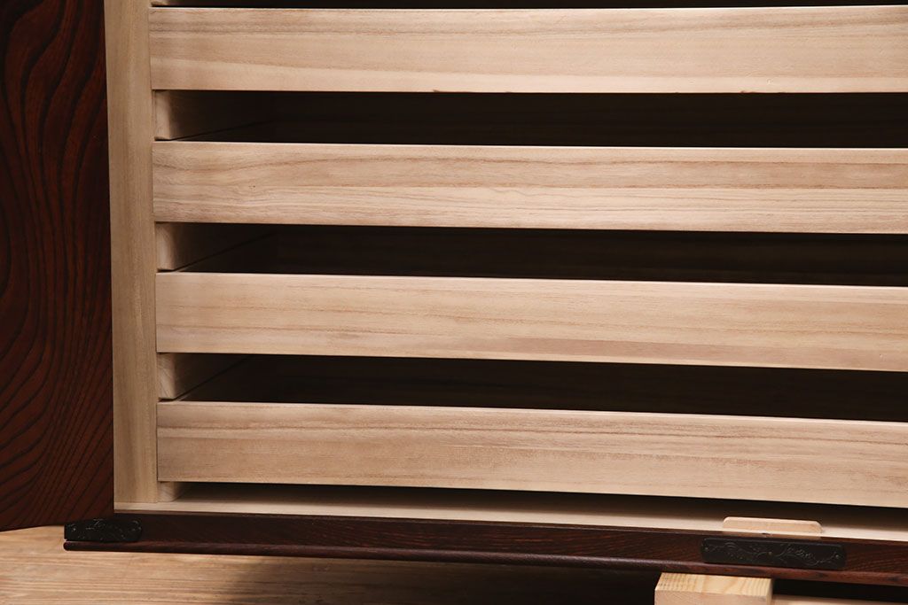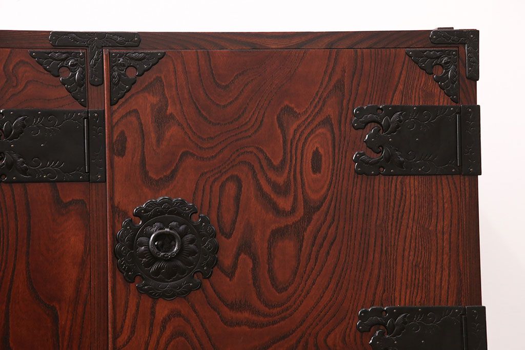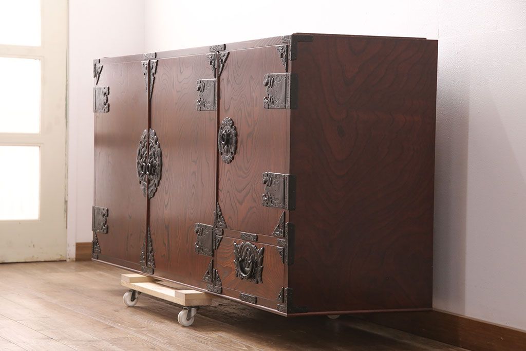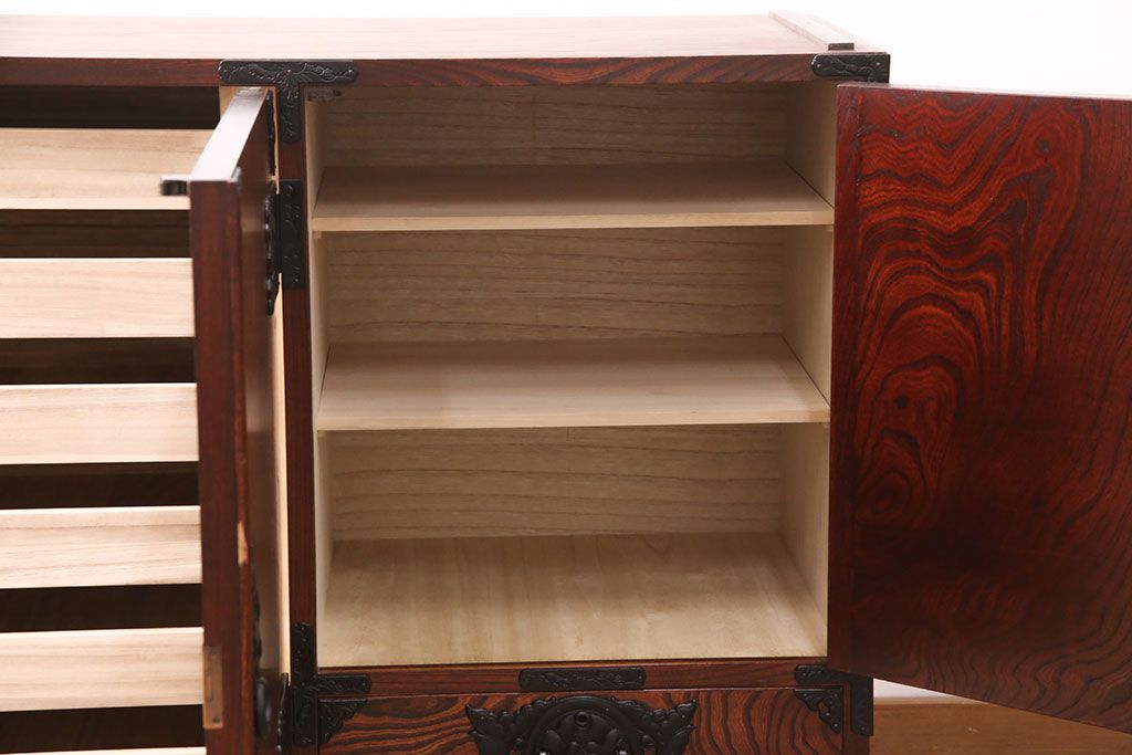 ラフジュ工房> 民芸家具 > 中古 民芸家具 岩谷堂箪笥 天板・脚(台輪)付きリメイク 和の趣あふれる現代のお部屋にぴったりの衣装盆付きサイドボード(ローボード、着物箪笥、収納棚、テレビ台)(R-051255)