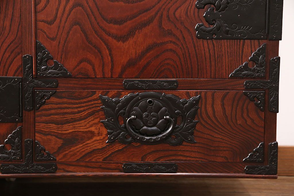 ラフジュ工房> 和箪笥> 着物箪笥 > 中古 民芸家具 岩谷堂箪笥 天板・脚(台輪)付きリメイク 和の趣あふれる現代のお部屋にぴったりの衣装盆付きサイドボード(ローボード、着物箪笥、収納棚、テレビ台)(R-051255)