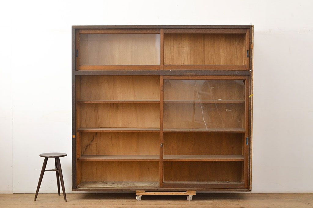 アンティーク家具 昭和中期 脚(台輪)付きリメイク 店舗什器としてもおすすめ!たっぷり収納できるキャビネット(収納棚、戸棚、飾り棚)(R-051057)