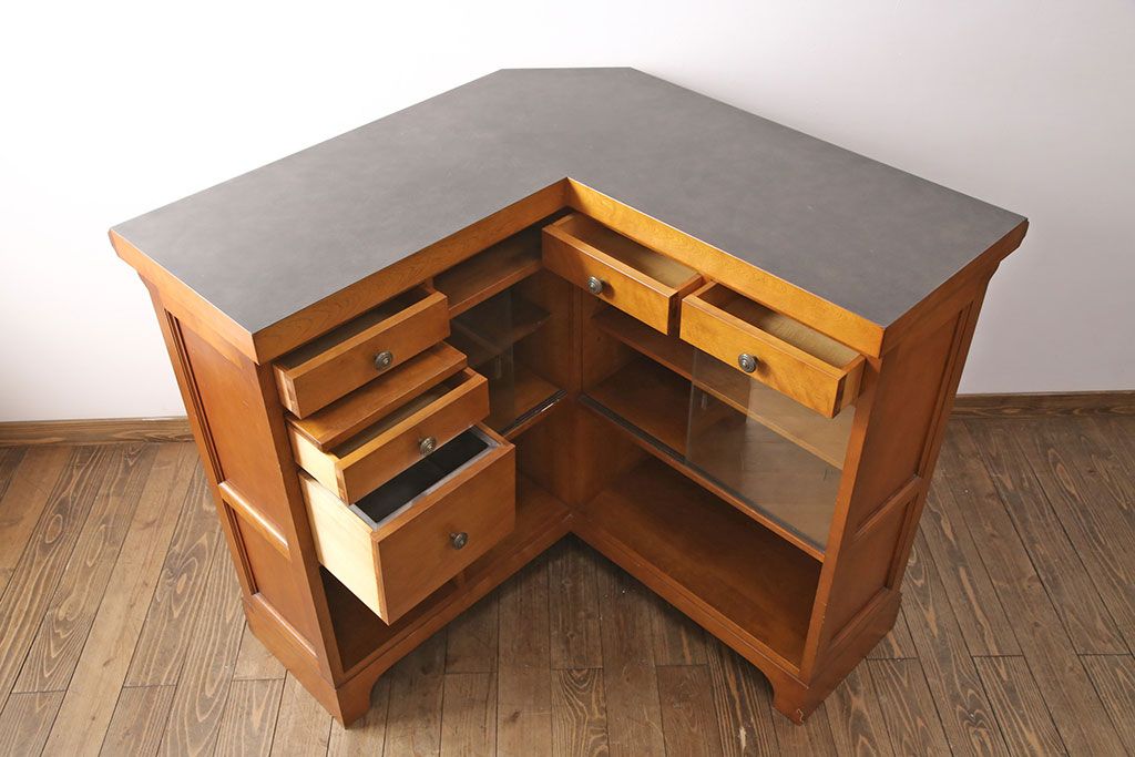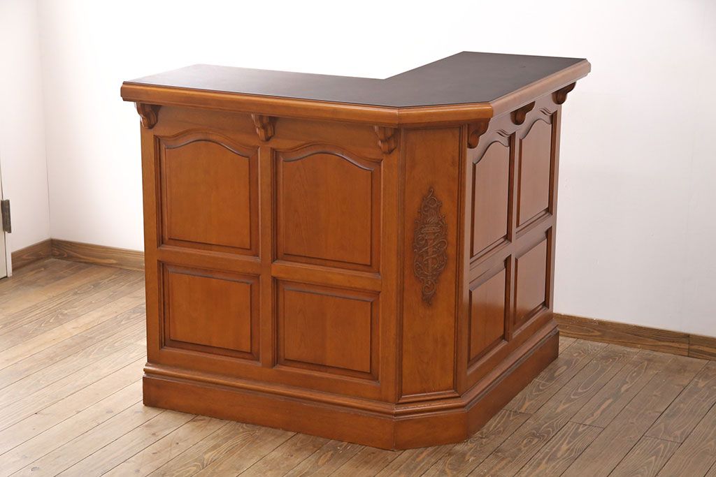 中古 美品 横浜クラシック家具 ダニエル(Daniel) 大容量の収納力が嬉しい!高級感と重厚感を兼ね備えたコーナーカウンター(収納棚、カウンターテーブル)(定価約160万円)(R-051149)