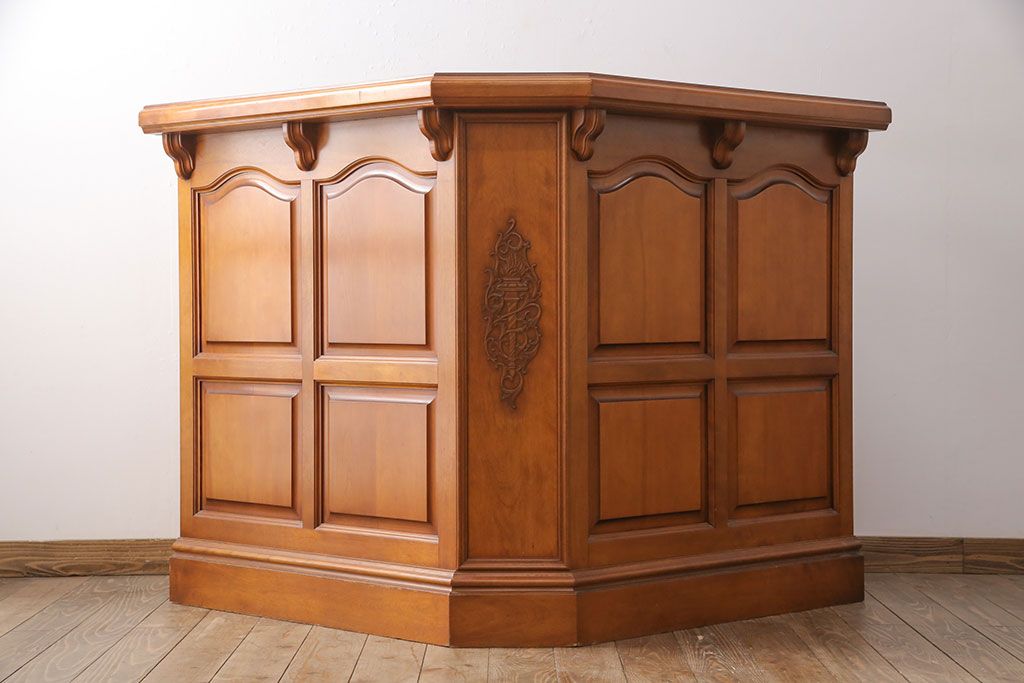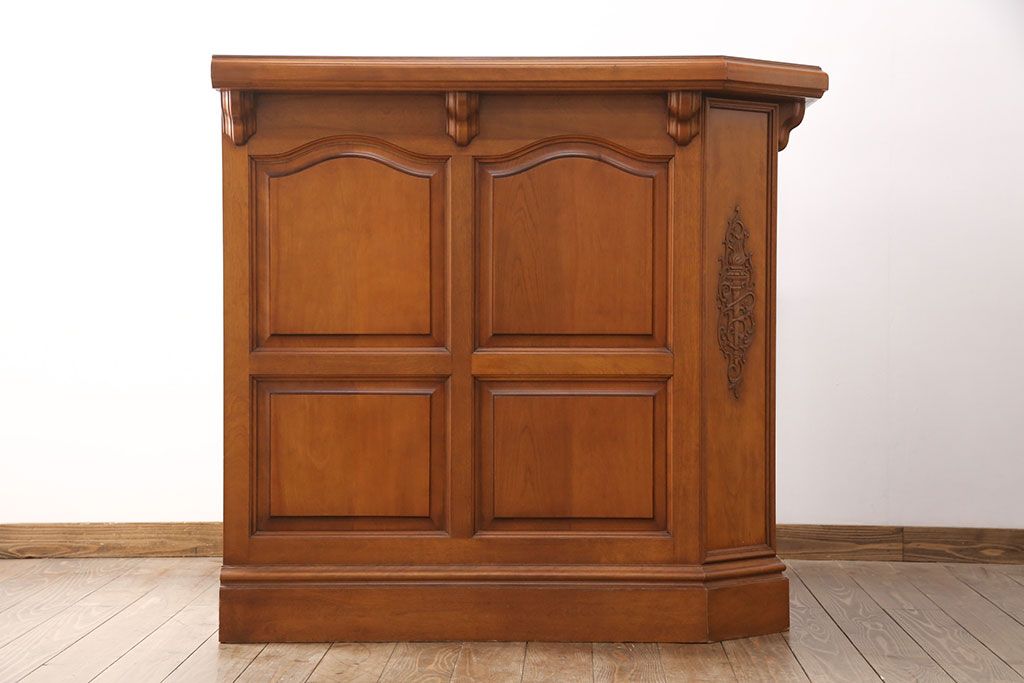 テーブル> カウンターテーブル > 中古 美品 横浜クラシック家具 ダニエル(Daniel) 大容量の収納力が嬉しい!高級感と重厚感を兼ね備えたコーナーカウンター(収納棚、カウンターテーブル)(定価約160万円)(R-051149)