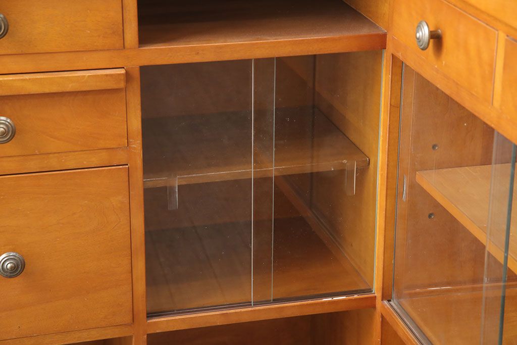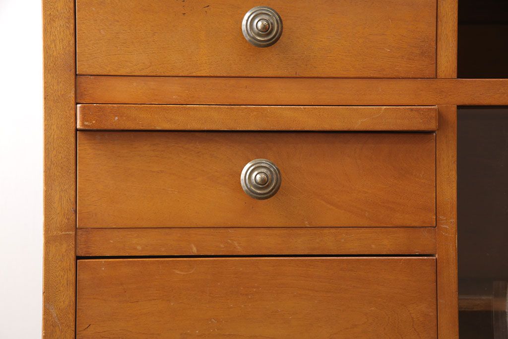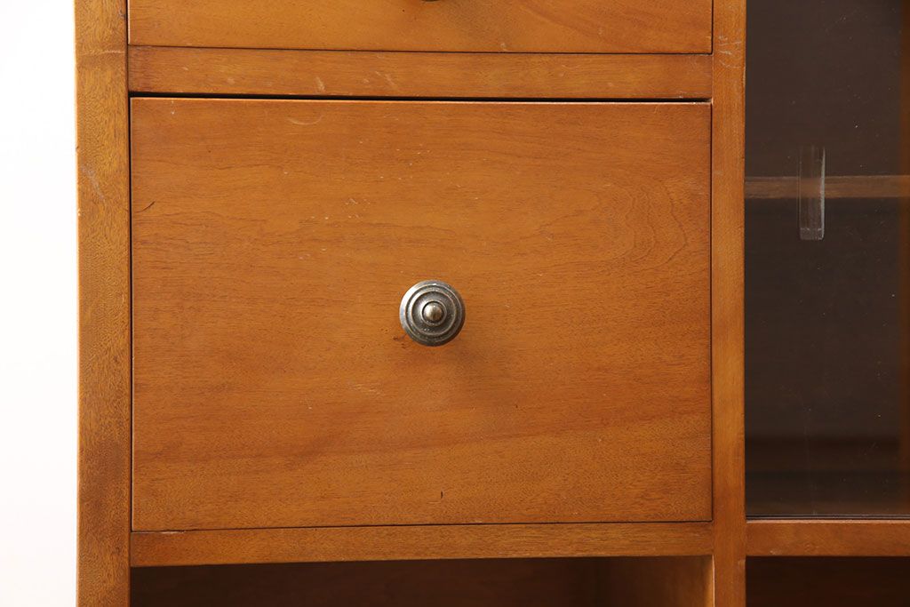 引き出しやガラス扉のついた棚に