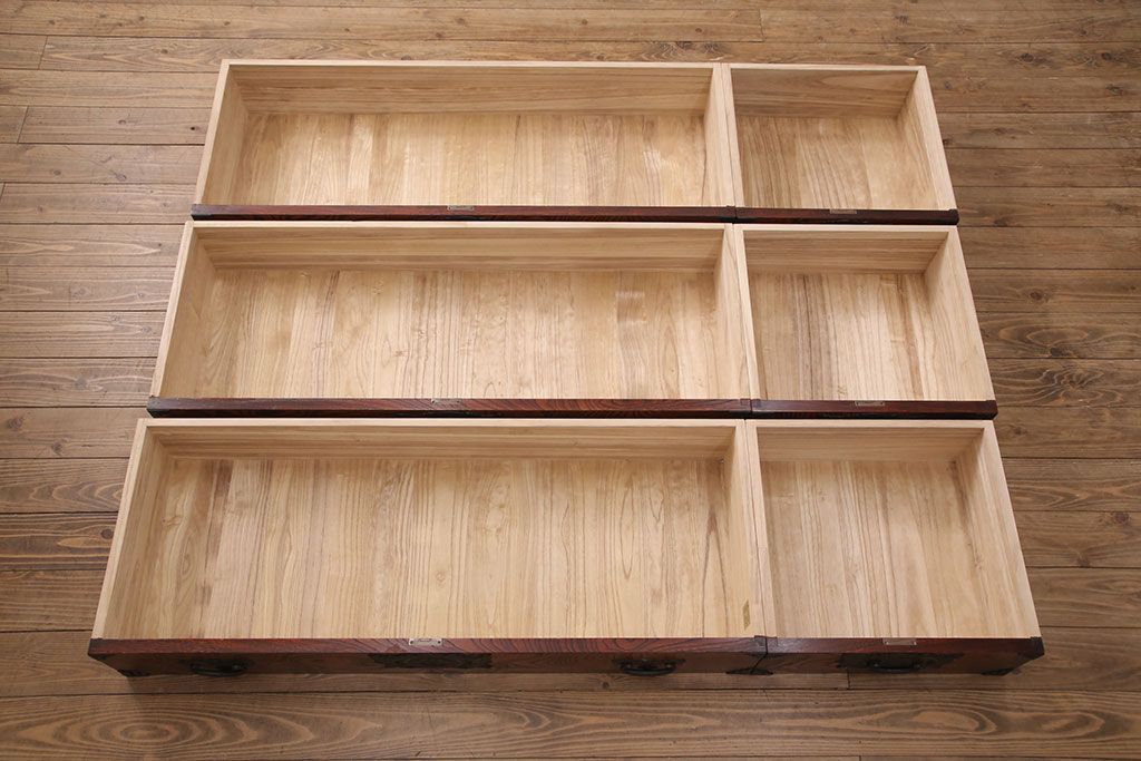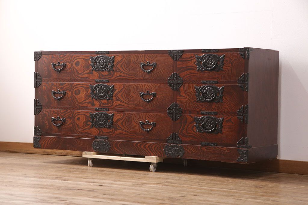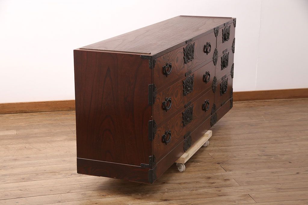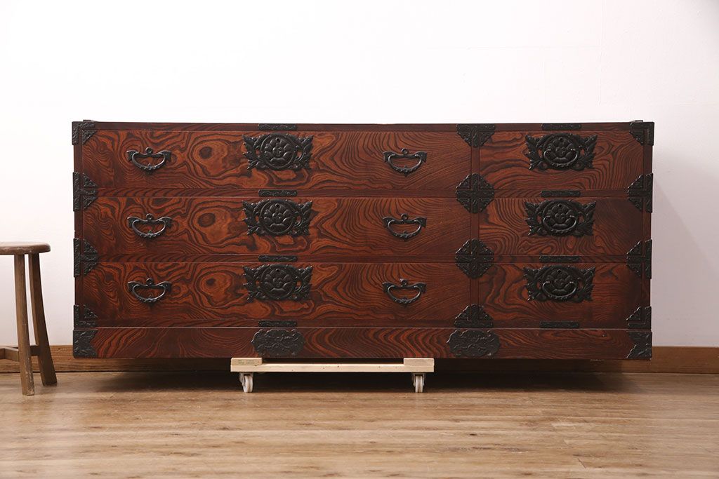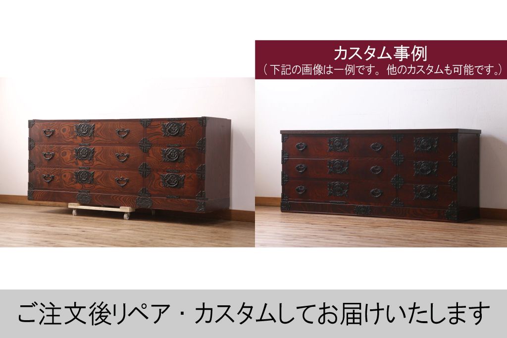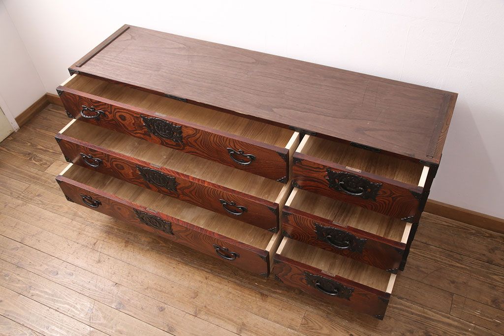 和箪笥 > 中古 岩谷堂箪笥 天板を付けてリメイク!迫力のある杢目が目を引くローボード(引き出し、サイドチェスト、ローチェスト、収納箪笥)(R-051256)