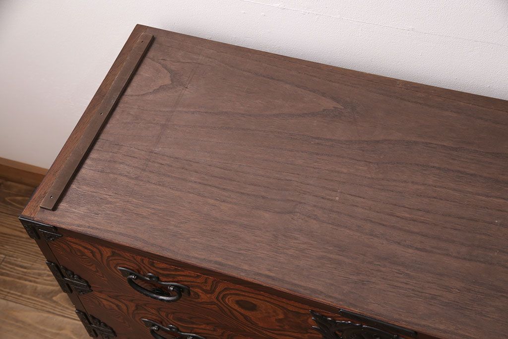 中古 岩谷堂箪笥 天板を付けてリメイク!迫力のある杢目が目を引くローボード(引き出し、サイドチェスト、ローチェスト、収納箪笥)(R-051256)