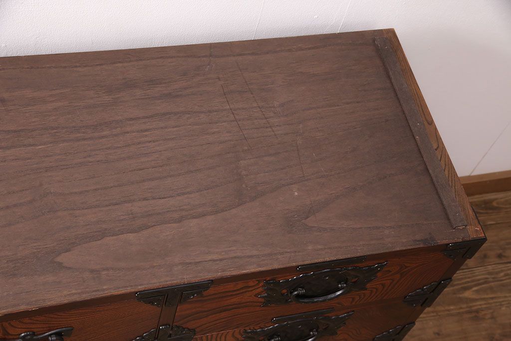民芸家具 > 中古 岩谷堂箪笥 天板を付けてリメイク!迫力のある杢目が目を引くローボード(引き出し、サイドチェスト、ローチェスト、収納箪笥)(R-051256)