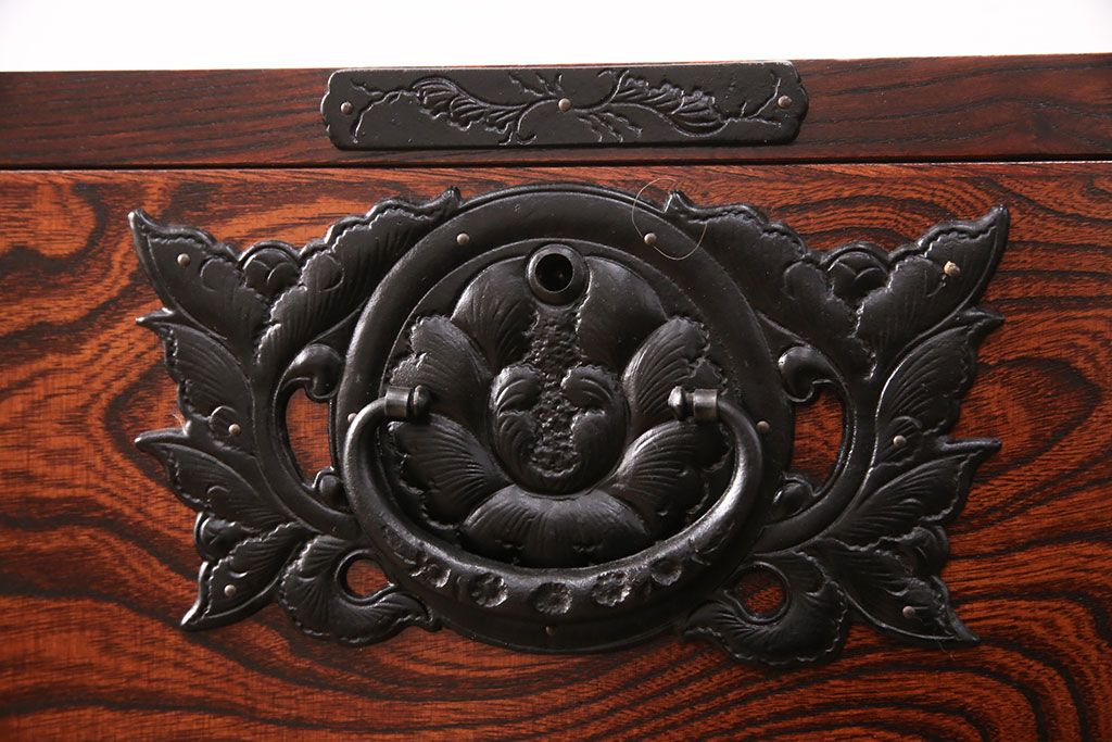 チェスト・引き出し> ローチェスト > 中古 岩谷堂箪笥 天板を付けてリメイク!迫力のある杢目が目を引くローボード(引き出し、サイドチェスト、ローチェスト、収納箪笥)(R-051256)