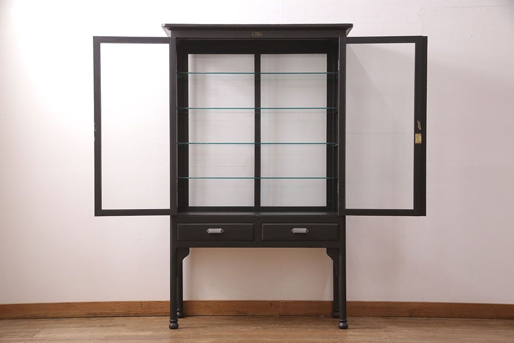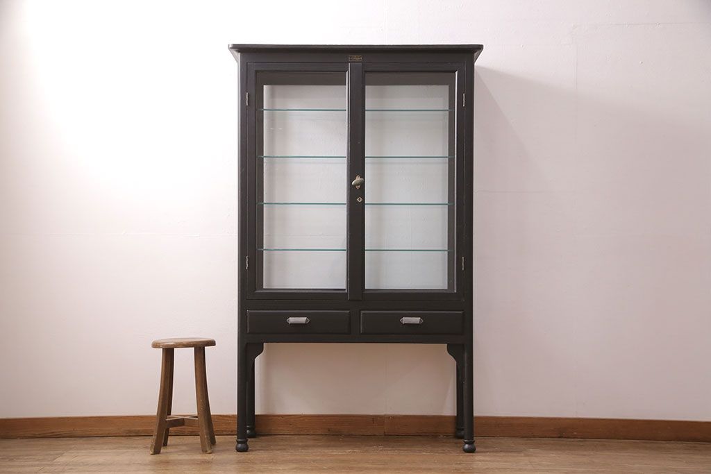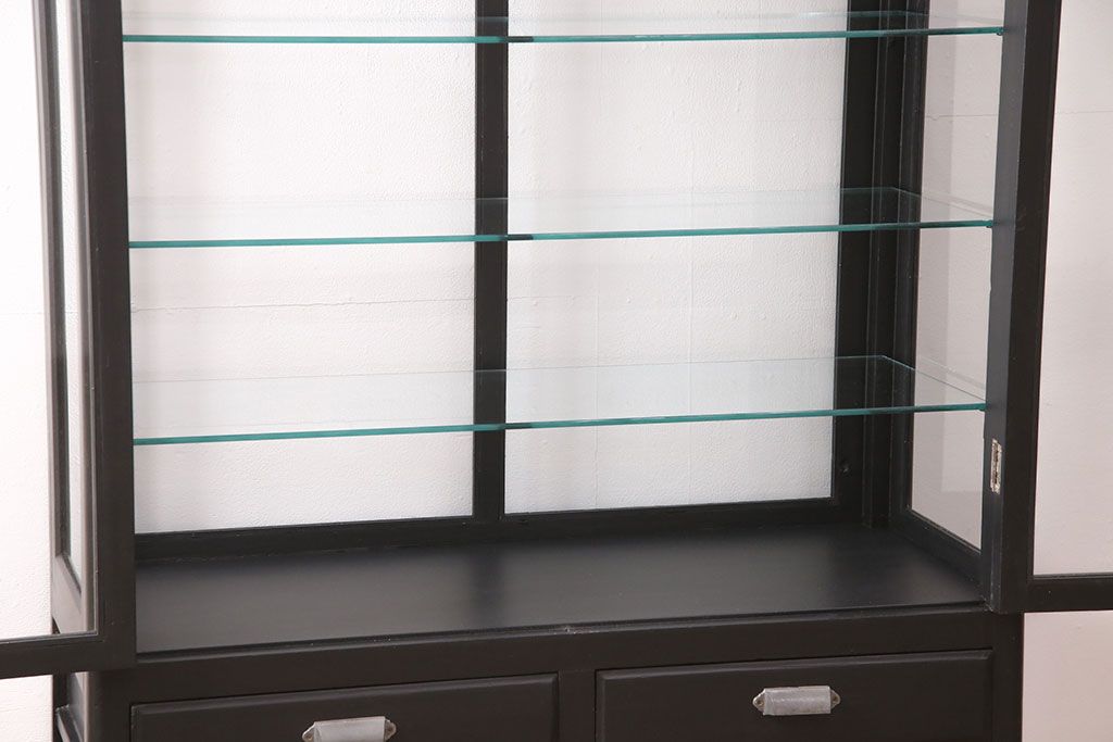ケビントをリペア&カスタム!艶消しブラックでペイント仕上げ。(デンタルケース、デンタルキャビネット、ガラスケース、ショーケース、飾り棚)