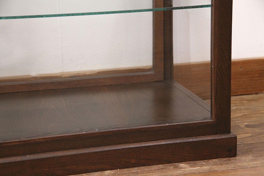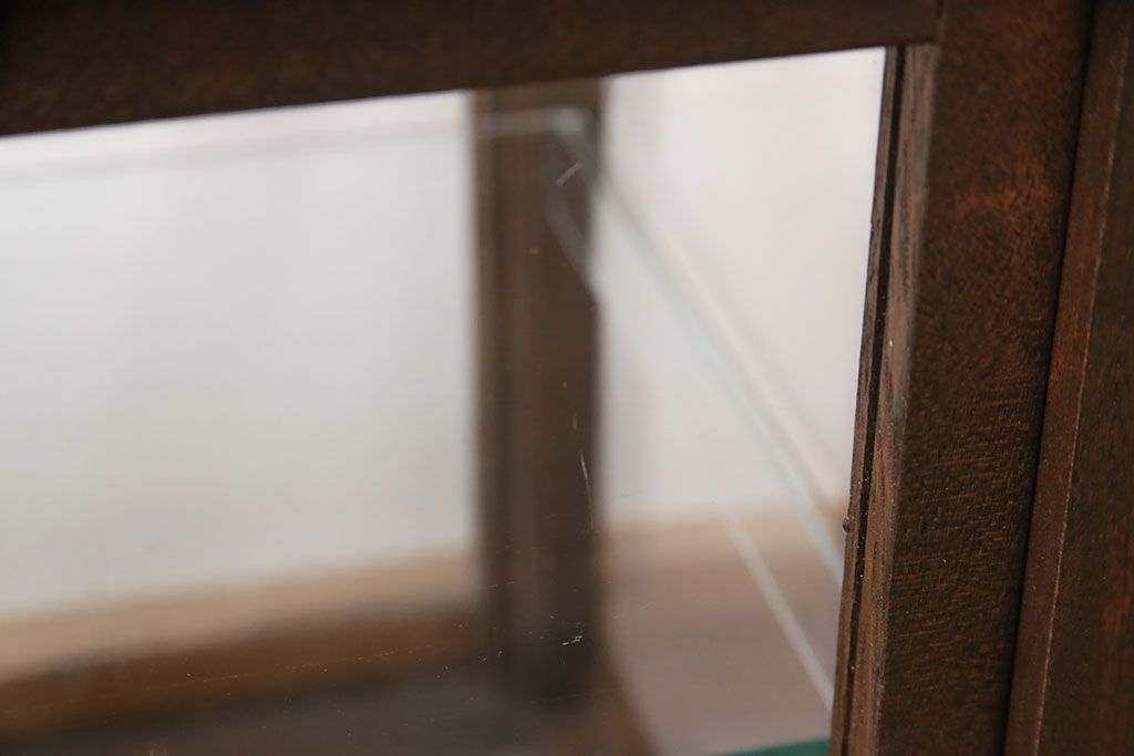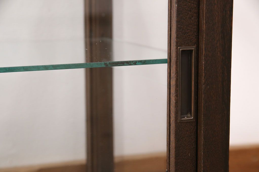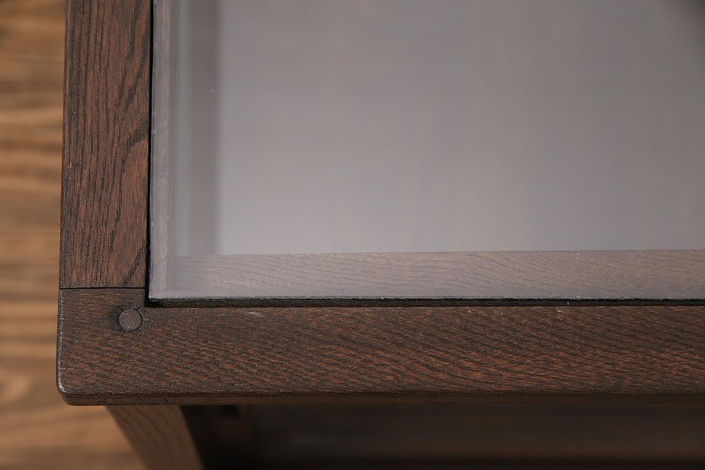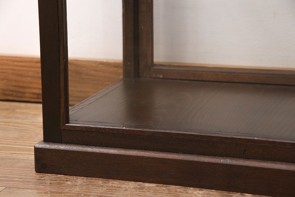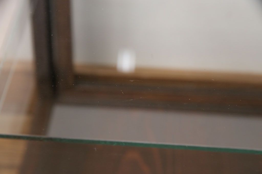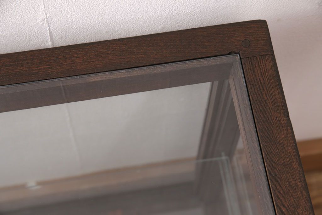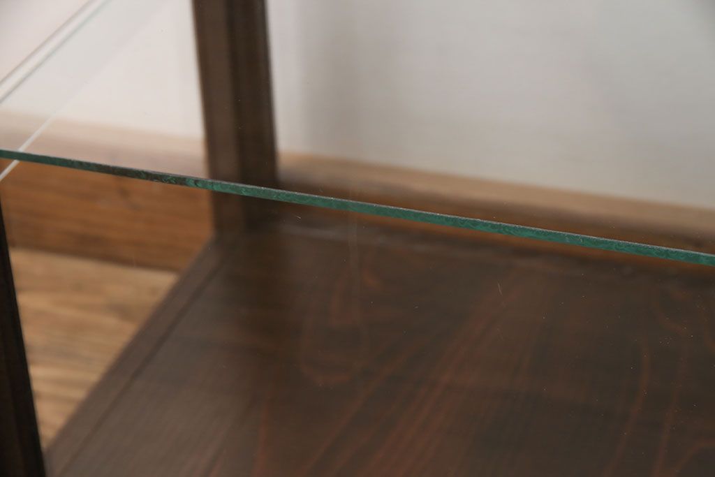 ガラスケース・ショーケース > ガラスケースをリペア&カスタム!木製の棚板を取り外し可能なガラス製に変更。縁飾りを取り外し、取っ手を取り付け。濃い茶色で着色し仕上げ。(陳列棚、ショーケース)