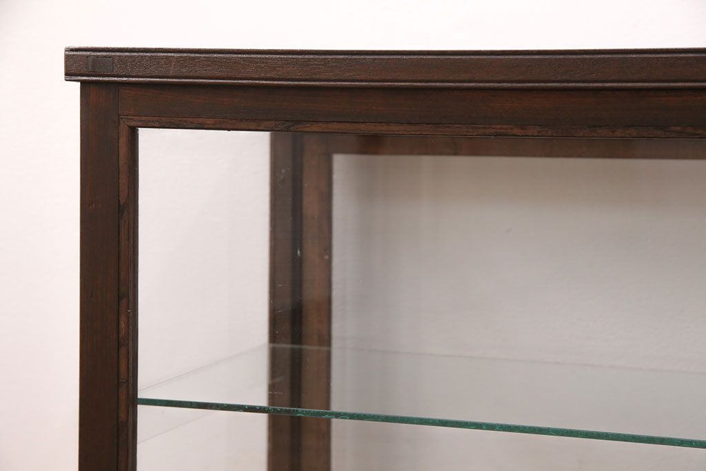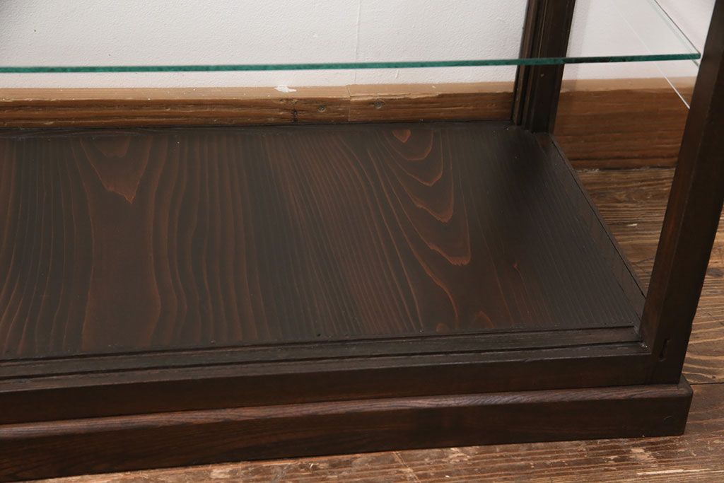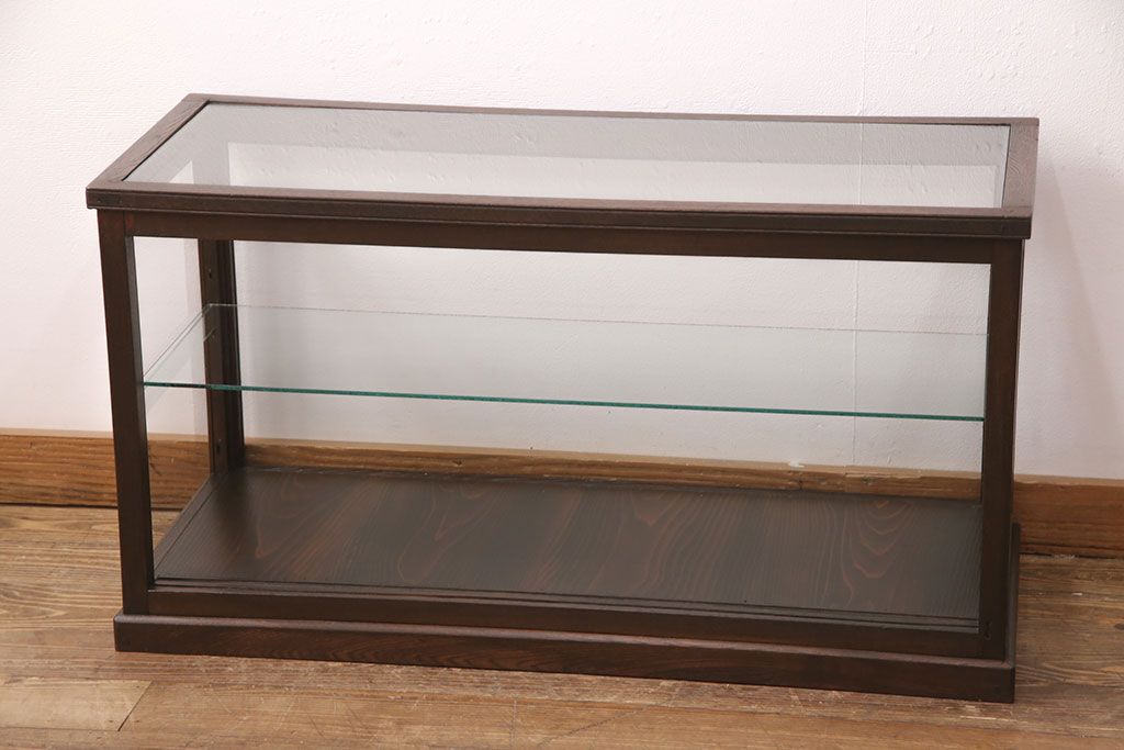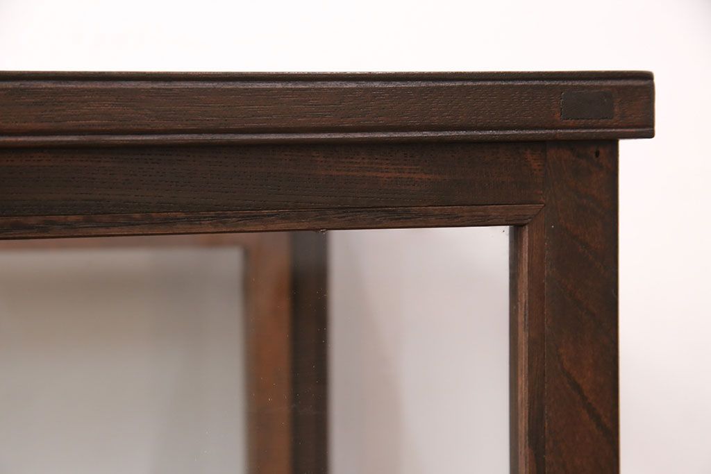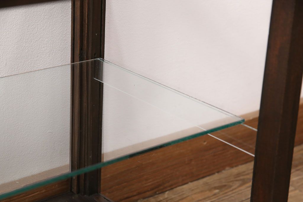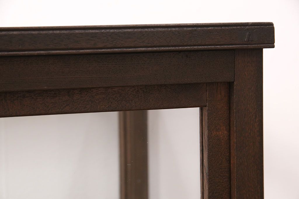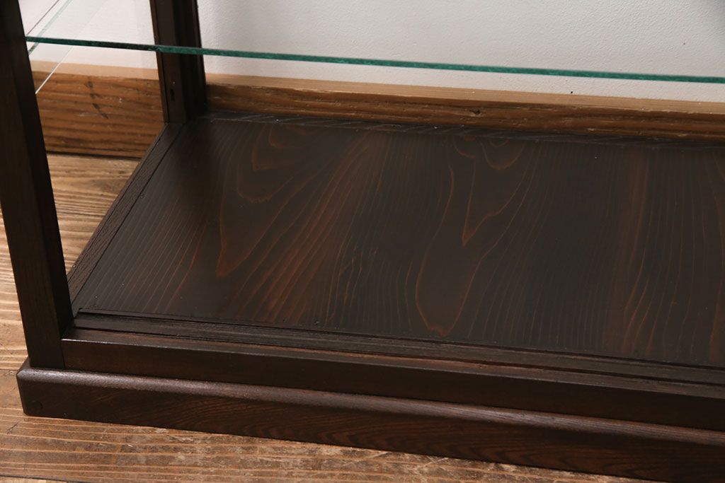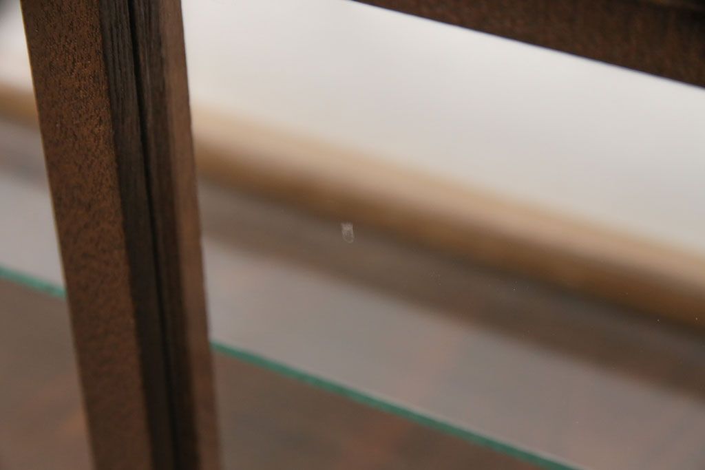 ガラスケース・ショーケース > ガラスケースをリペア&カスタム!木製の棚板を取り外し可能なガラス製に変更。縁飾りを取り外し、取っ手を取り付け。濃い茶色で着色し仕上げ。(陳列棚、ショーケース)