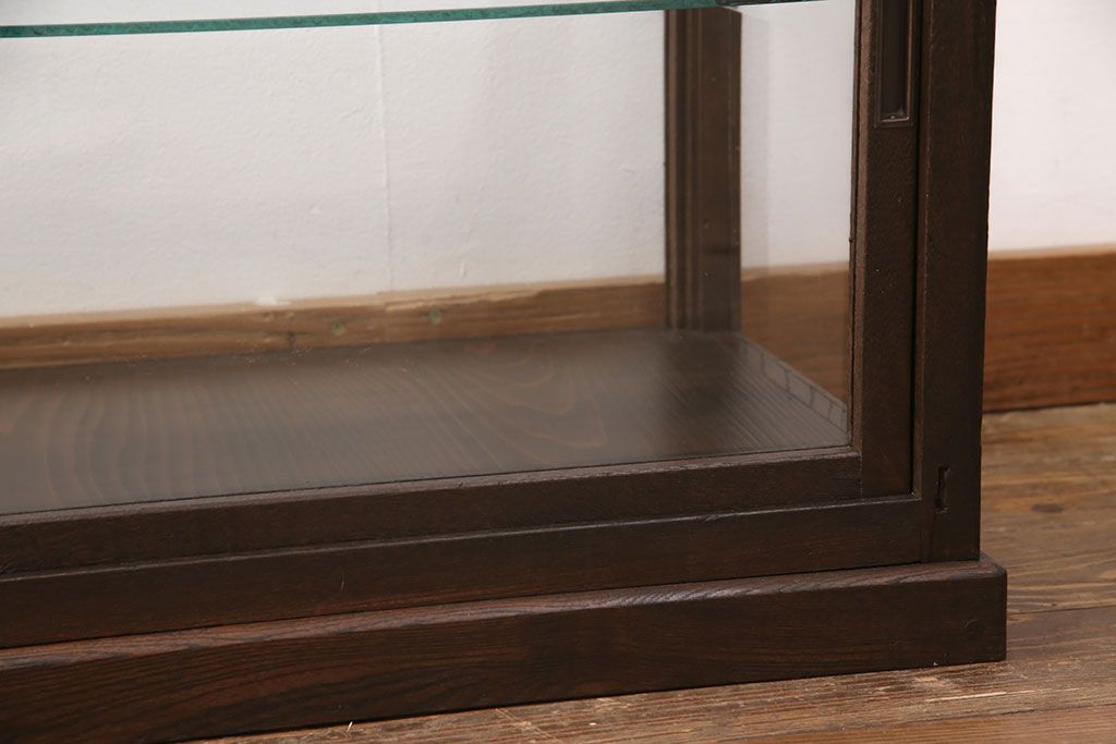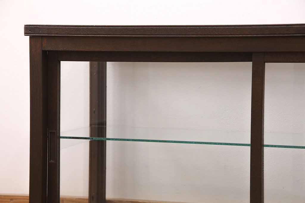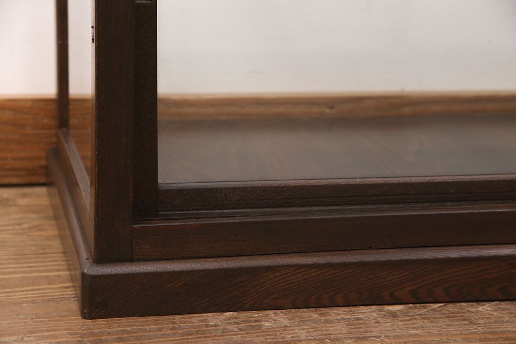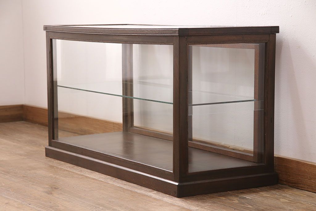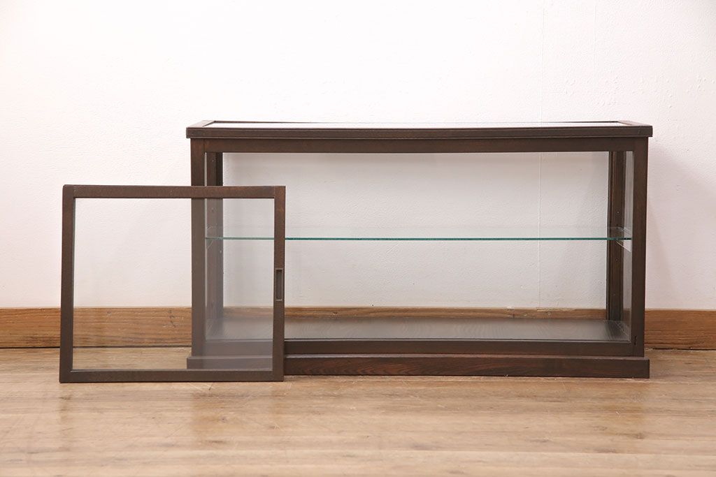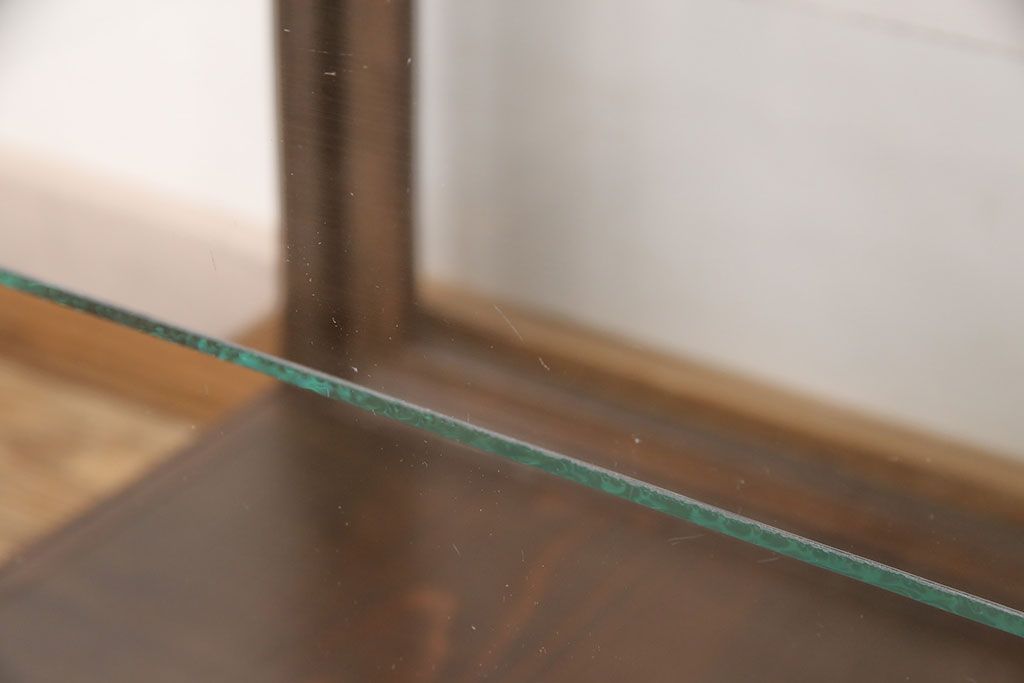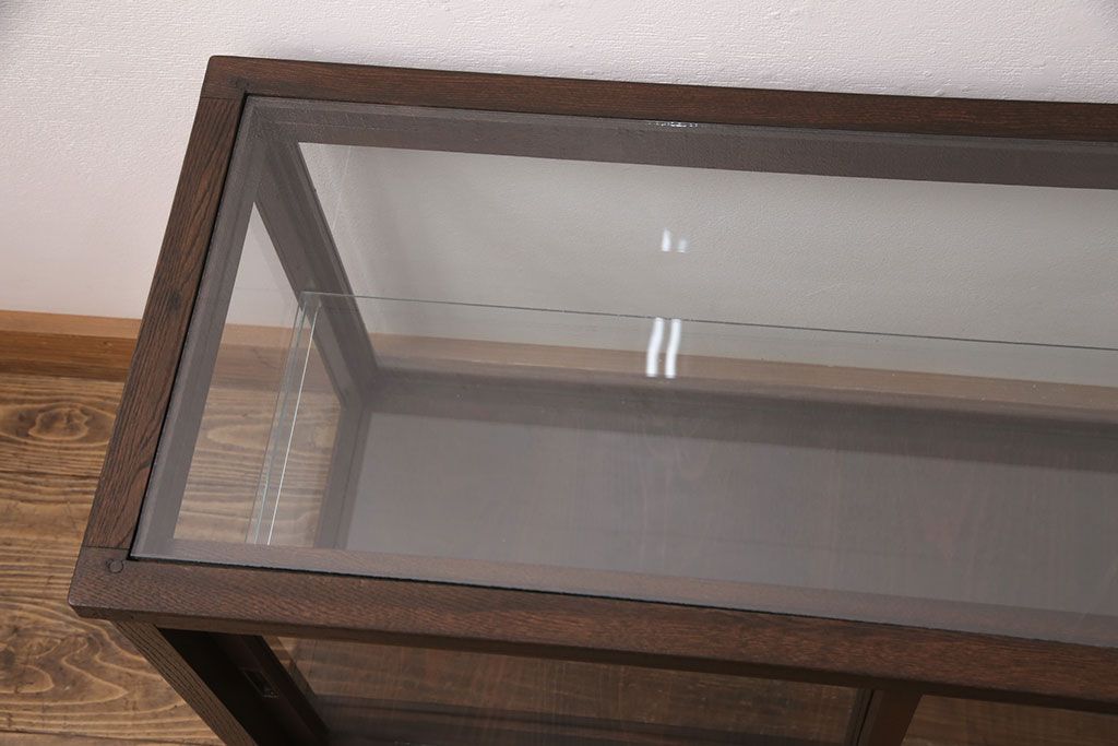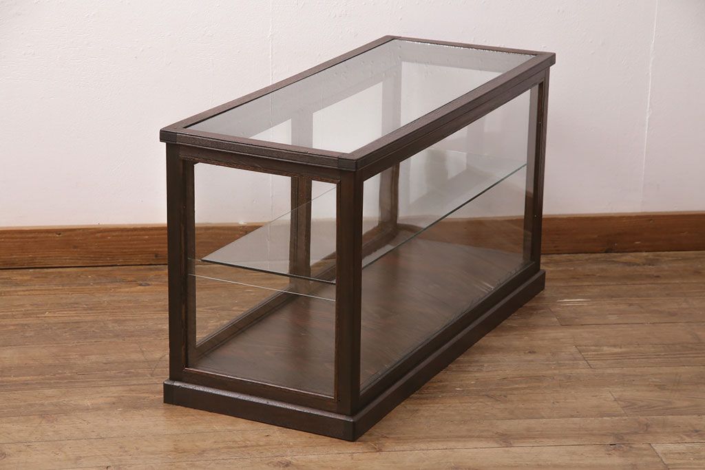 ガラスケース・ショーケース > ガラスケースをリペア&カスタム!木製の棚板を取り外し可能なガラス製に変更。縁飾りを取り外し、取っ手を取り付け。濃い茶色で着色し仕上げ。(陳列棚、ショーケース)