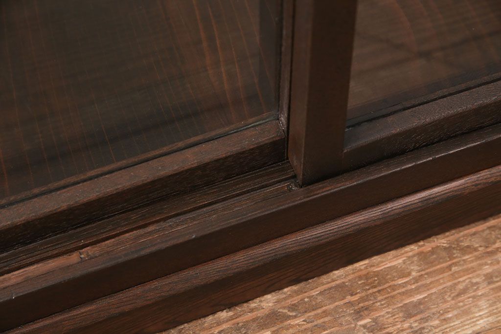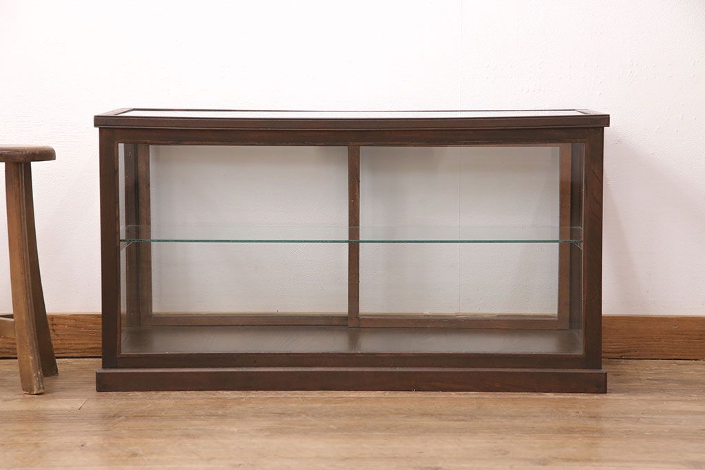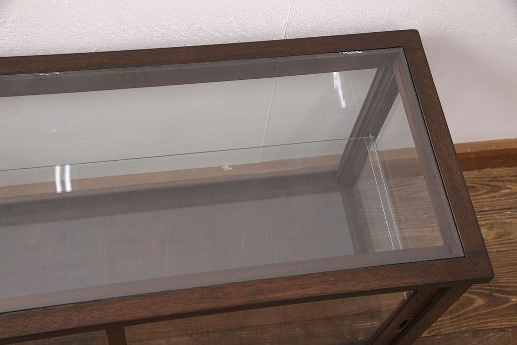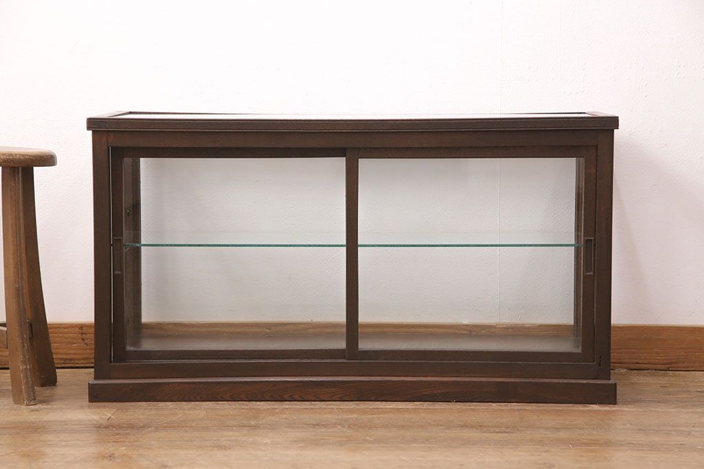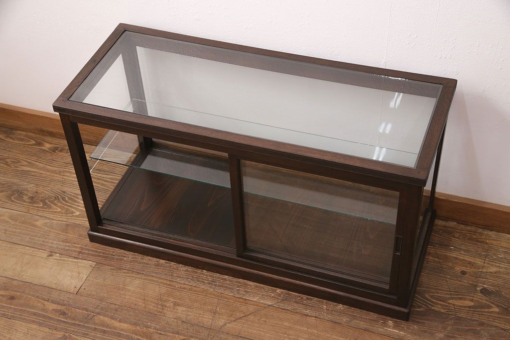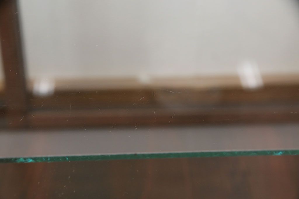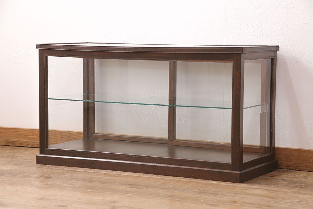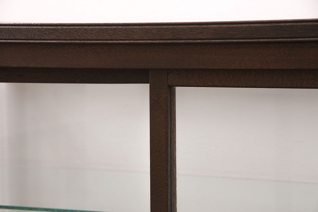 ガラスケース・ショーケース > ガラスケースをリペア&カスタム!木製の棚板を取り外し可能なガラス製に変更。縁飾りを取り外し、取っ手を取り付け。濃い茶色で着色し仕上げ。(陳列棚、ショーケース)