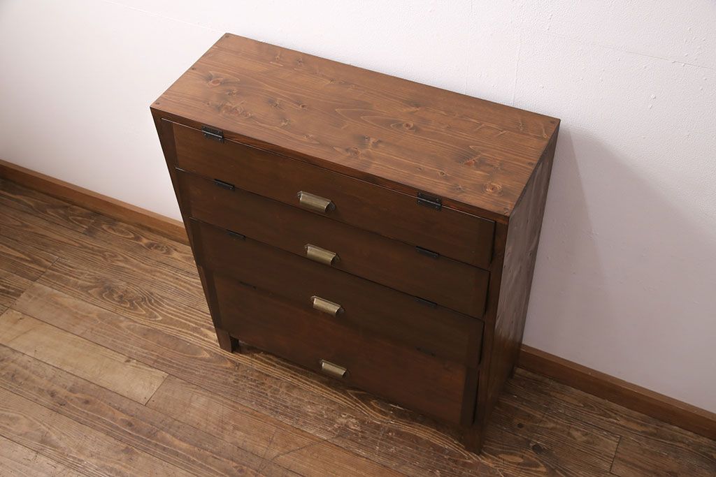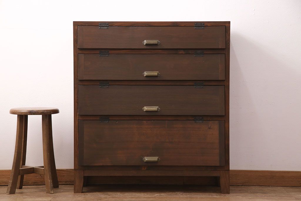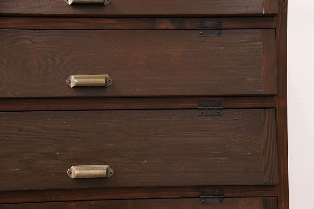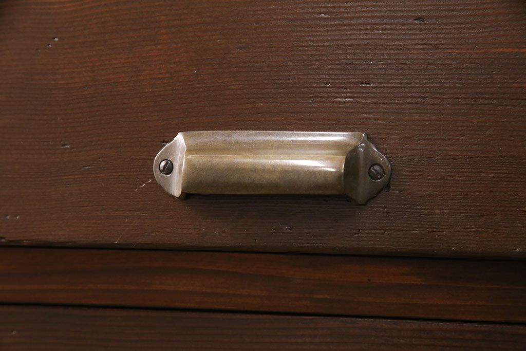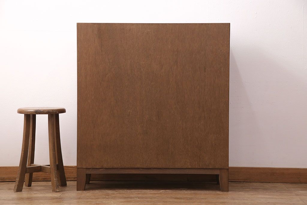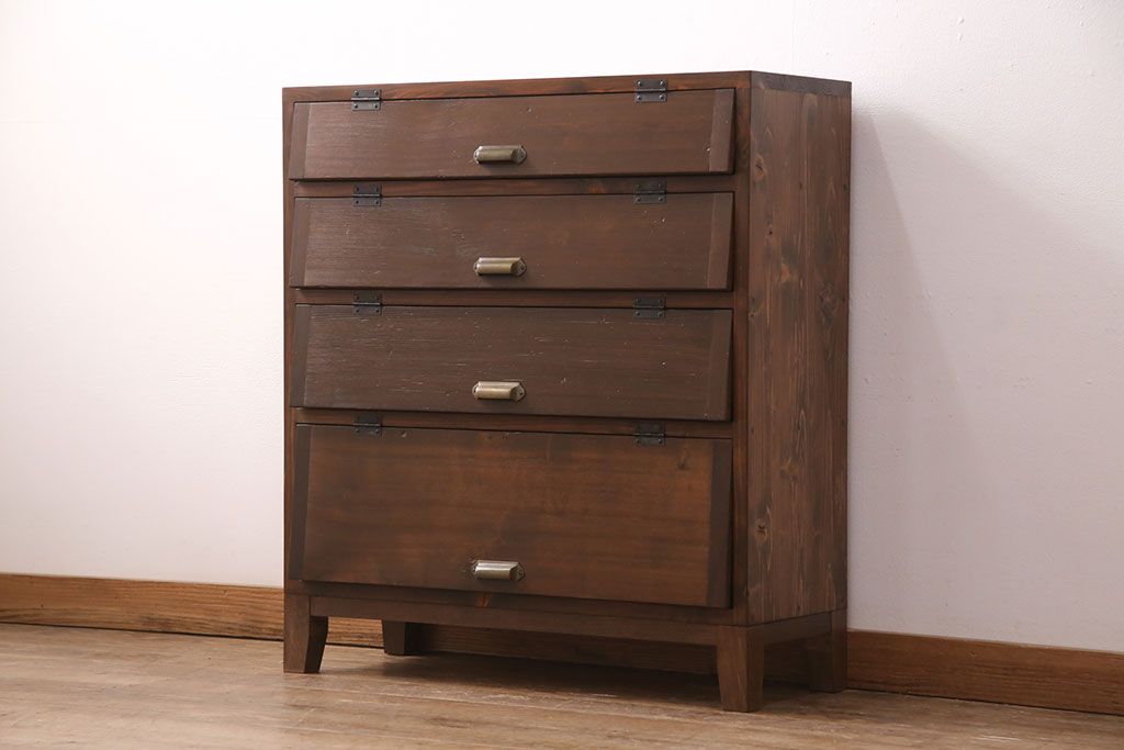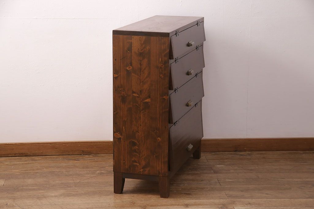 ワードローブ・ロッカー> ロッカー > パタパタ扉の下駄箱を新規製作!本体はヒノキ無垢材、前板は古材で制作。取っ手と木製脚を取り付け。当店商品を参考に着色し仕上げ。(戸棚、キャビネット、収納棚、ロッカー)