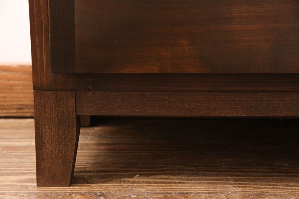 パタパタ扉の下駄箱を新規製作!本体はヒノキ無垢材、前板は古材で制作。取っ手と木製脚を取り付け。当店商品を参考に着色し仕上げ。(戸棚、キャビネット、収納棚、ロッカー)