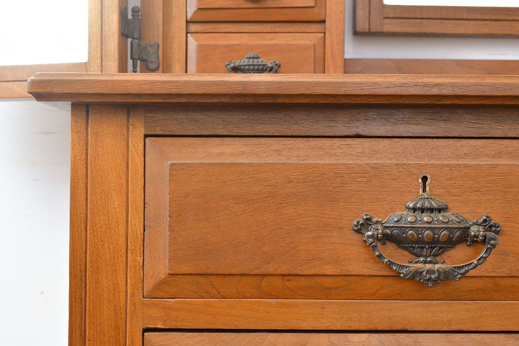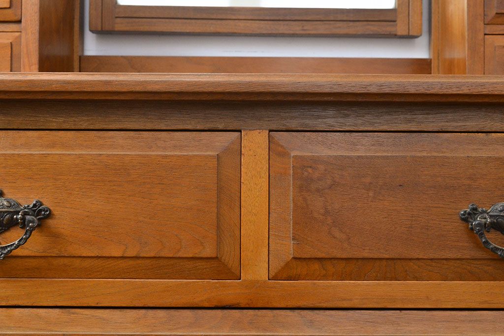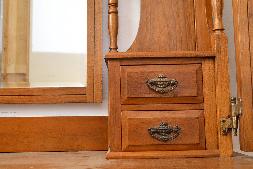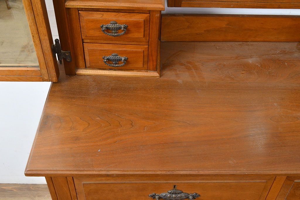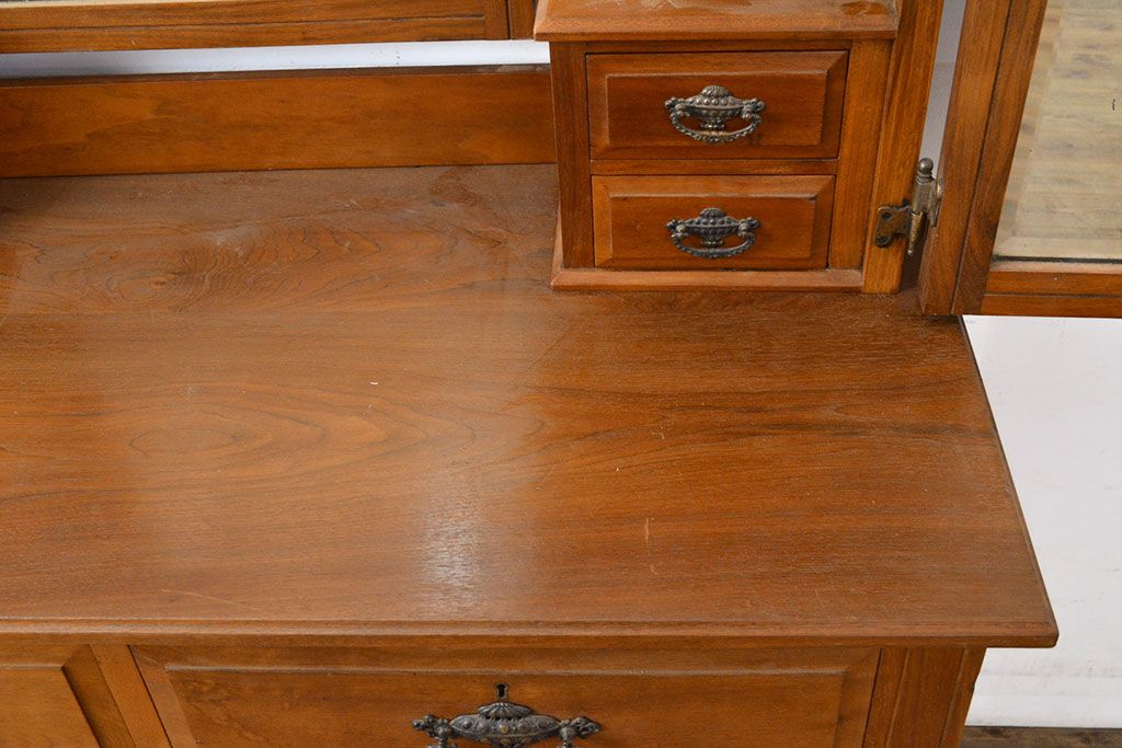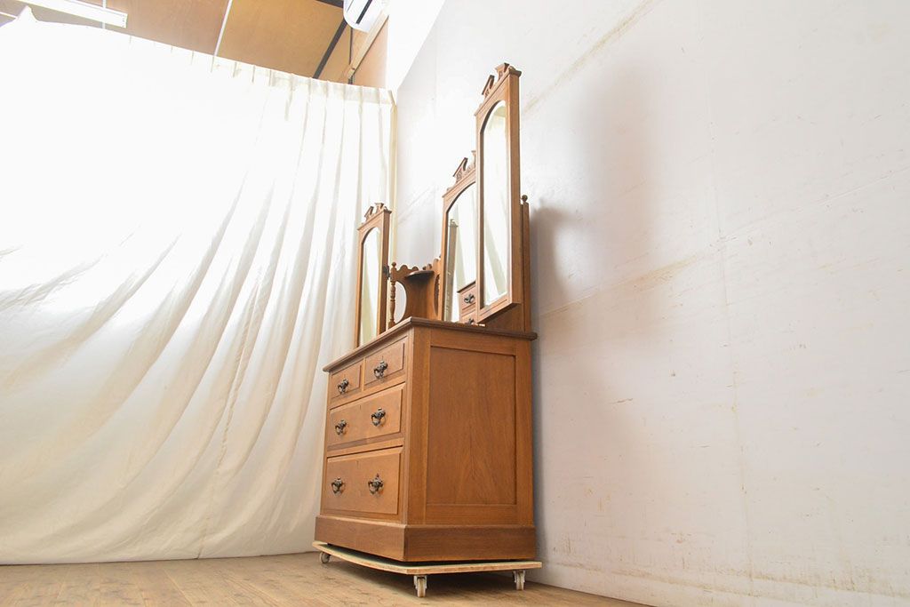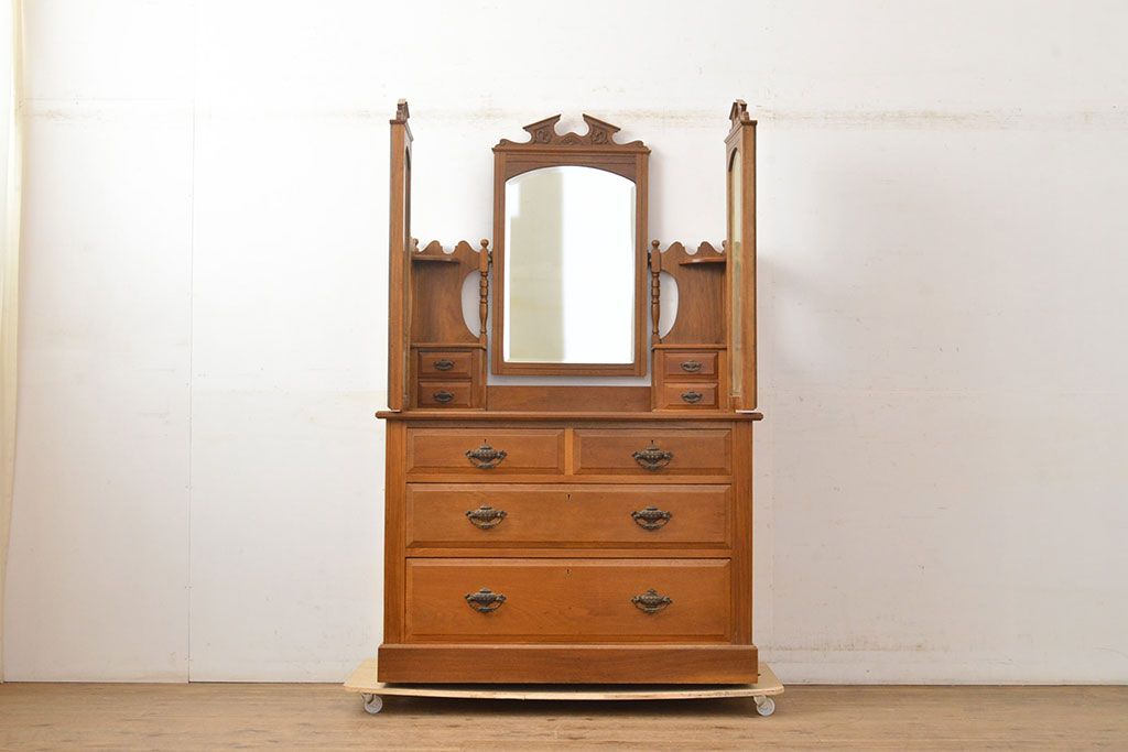 イギリスアンティーク チーク材 インパクトのある凝ったつくりが魅力のドレッシングチェスト(ドレッサー、鏡台、三面鏡)(R-050254)