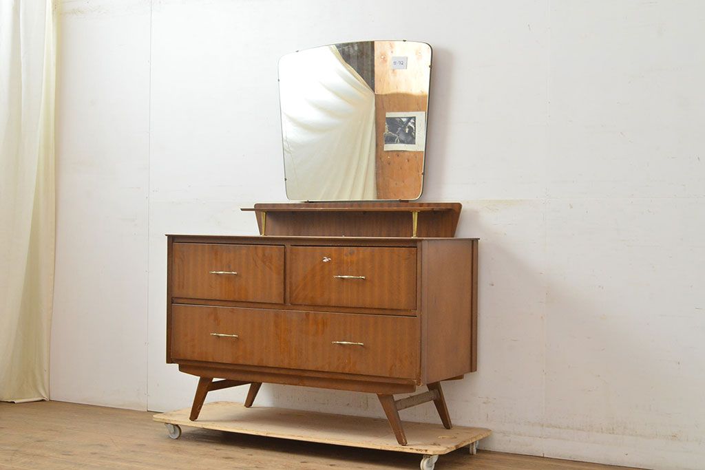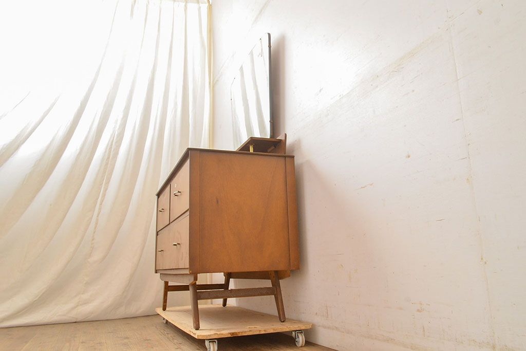 ドレッサー・鏡台 > イギリスヴィンテージ 北欧スタイル家具 Remploy社製 チーク材が温かい雰囲気を醸し出すビンテージドレッサー(化粧台、チェスト、鏡台、引き出し)(R-050194)
