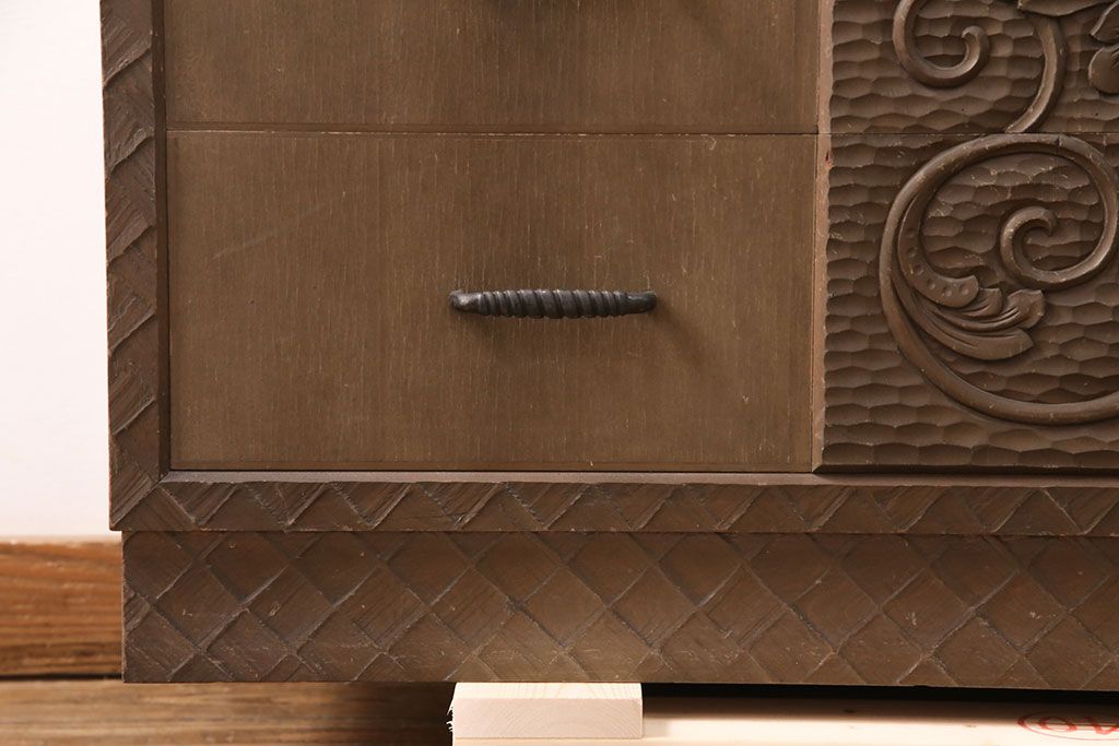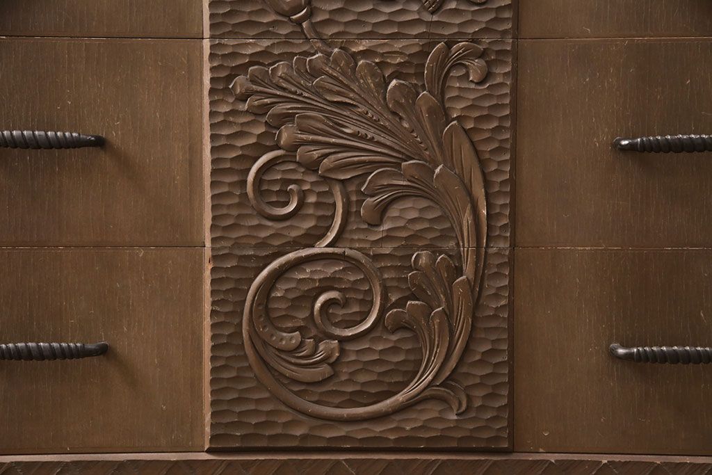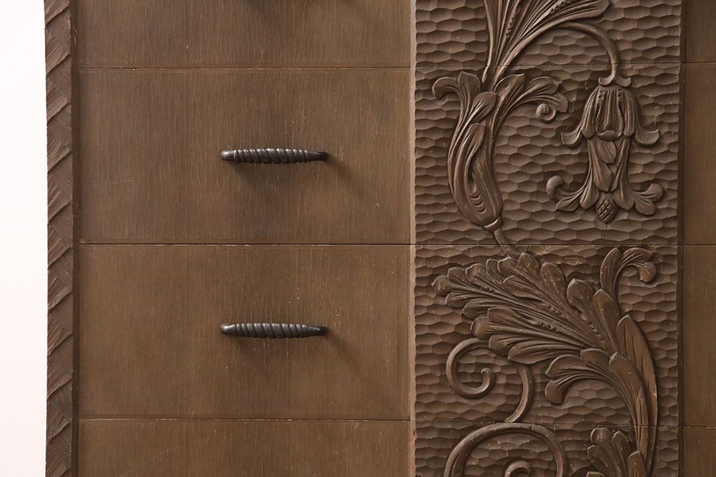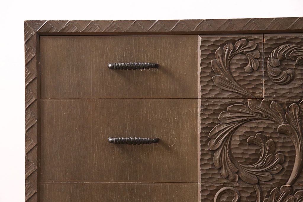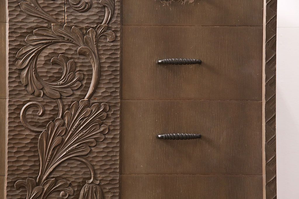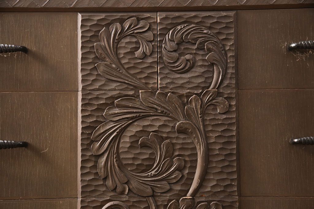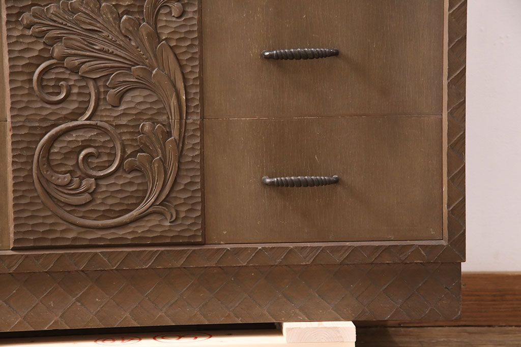 ビンテージ家具 京都産 神戸洋家具 ペイント仕上げ限定 連なった彫が見事!まるで美術品のようなチェスト(引き出し、衣装タンス、ヴィンテージ)(R-051273)