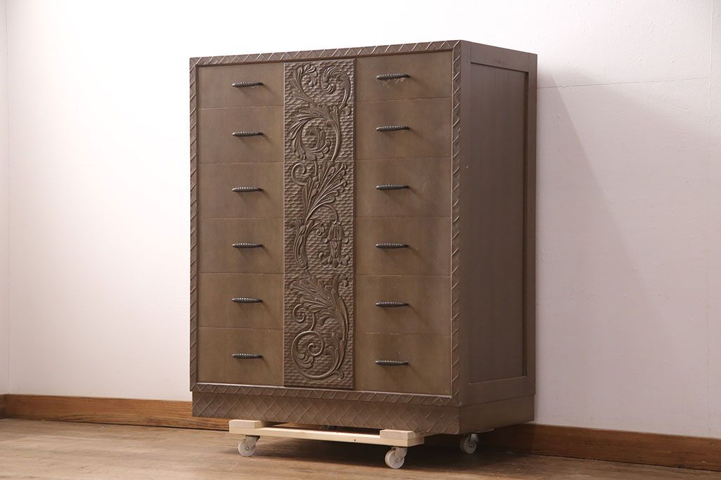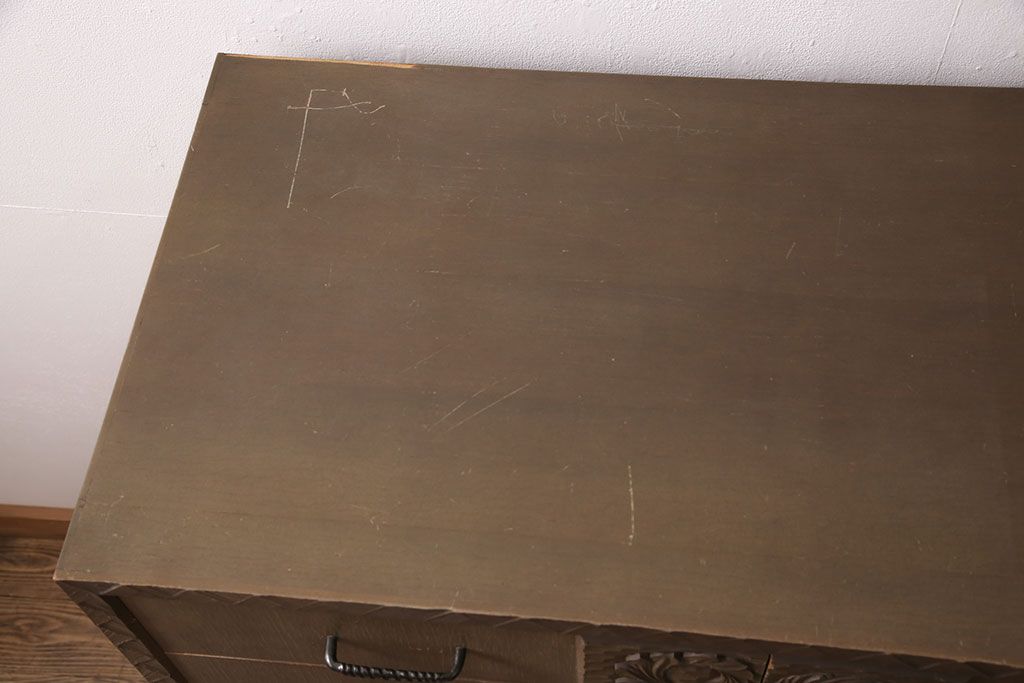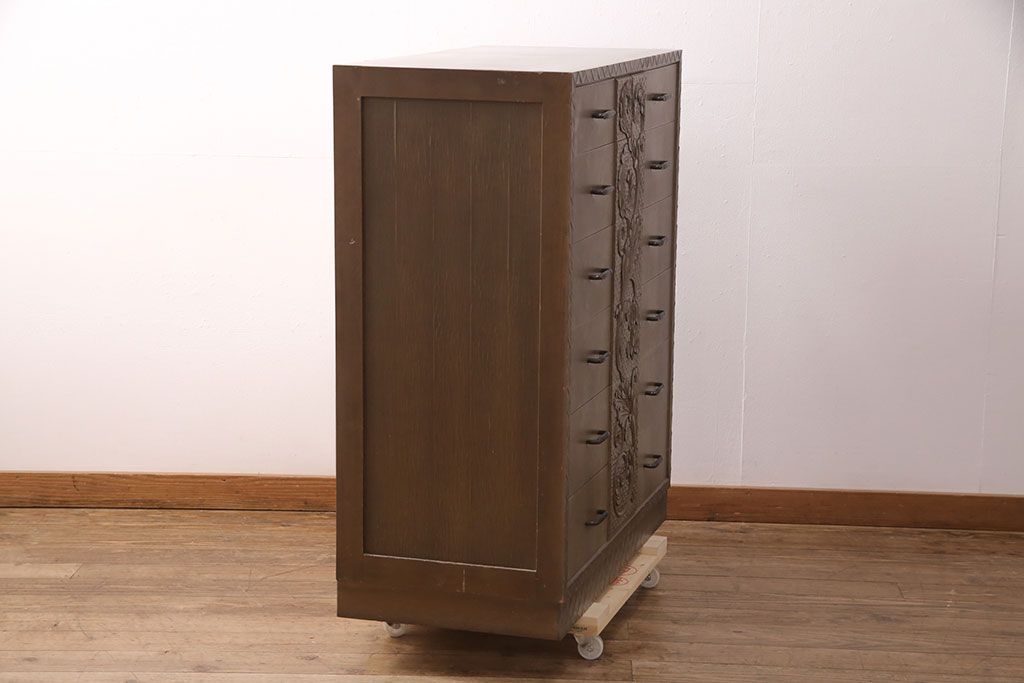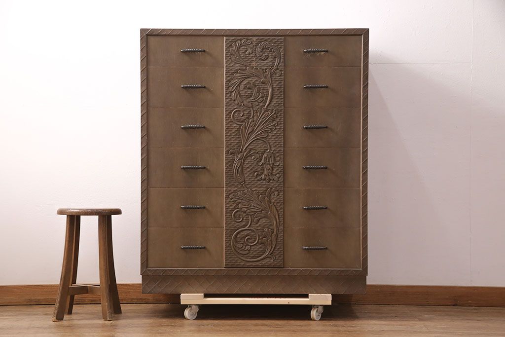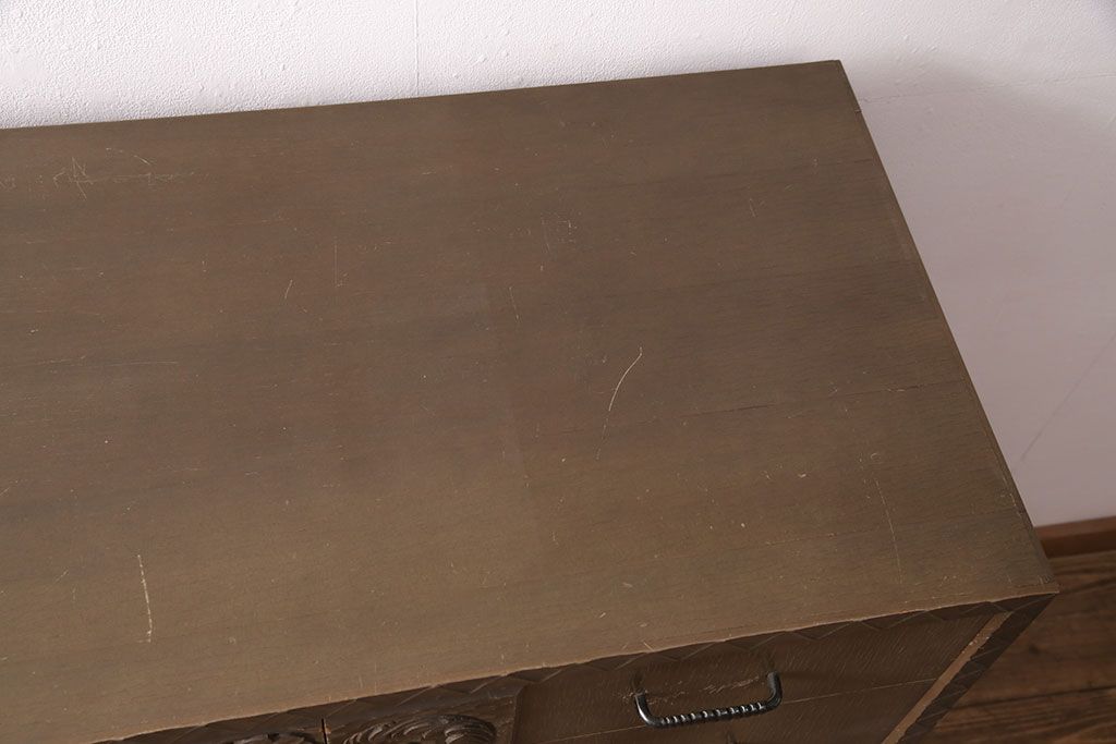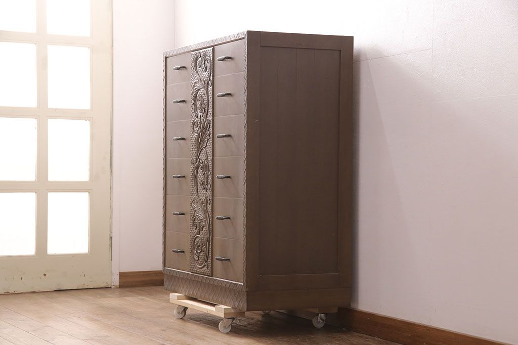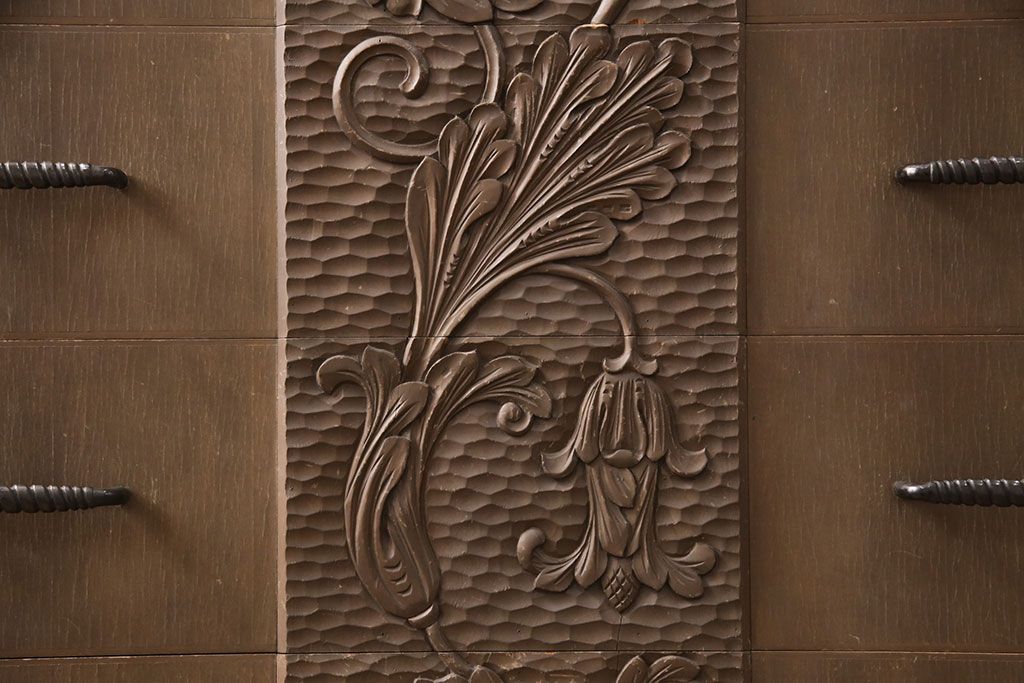 ビンテージ家具 京都産 神戸洋家具 ペイント仕上げ限定 連なった彫が見事!まるで美術品のようなチェスト(引き出し、衣装タンス、ヴィンテージ)(R-051273)