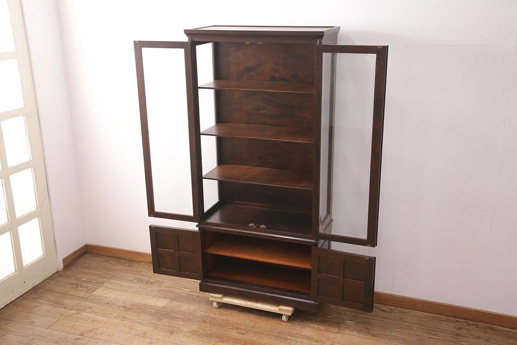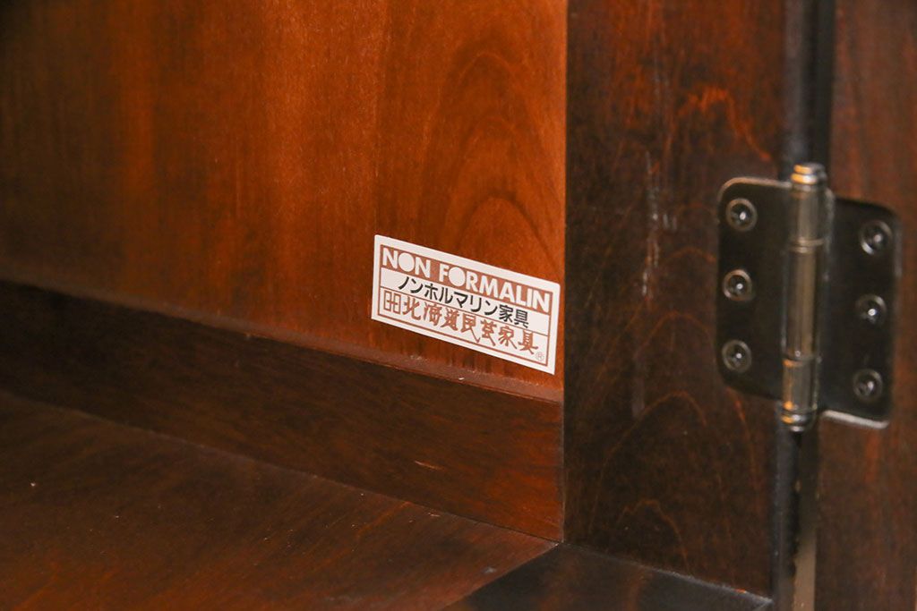 中古 希少な廃盤品!! 北海道民芸家具 OM158 落ち着きのある上品な空間づくりにおすすめの飾り棚(収納棚、戸棚、キャビネット、陳列棚、店舗什器)(R-051274)