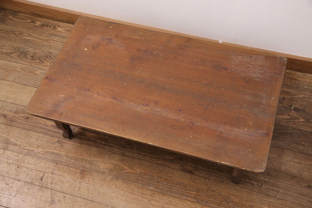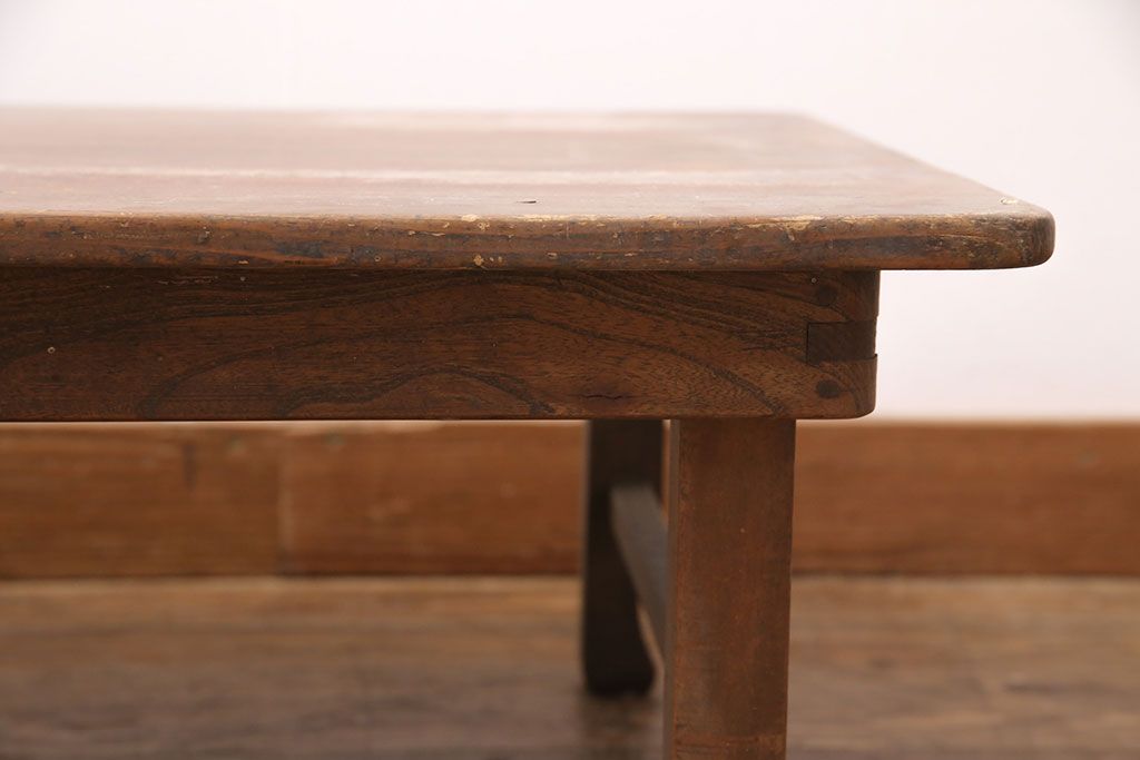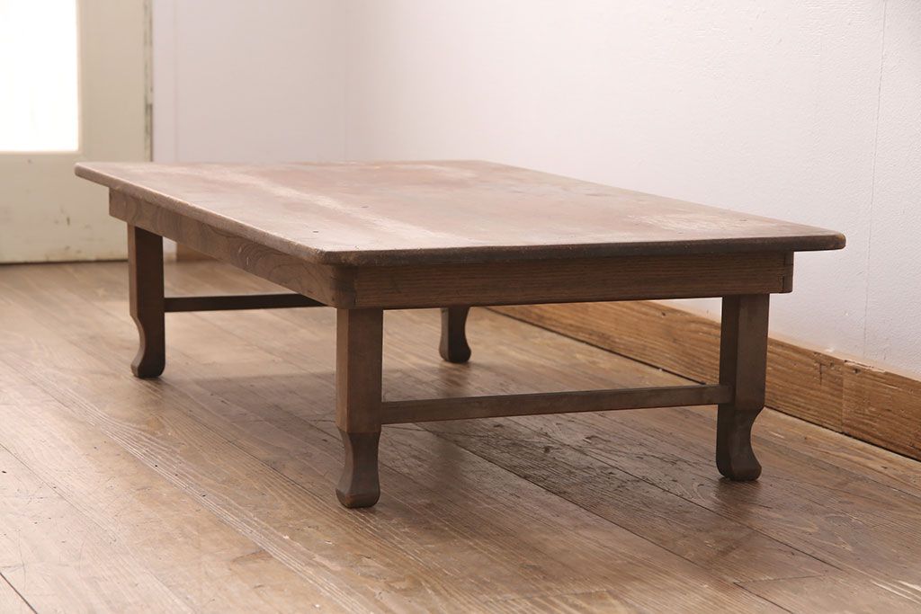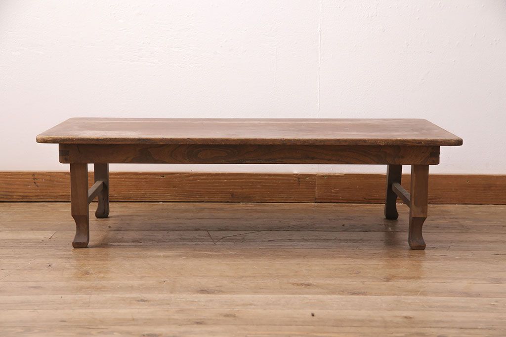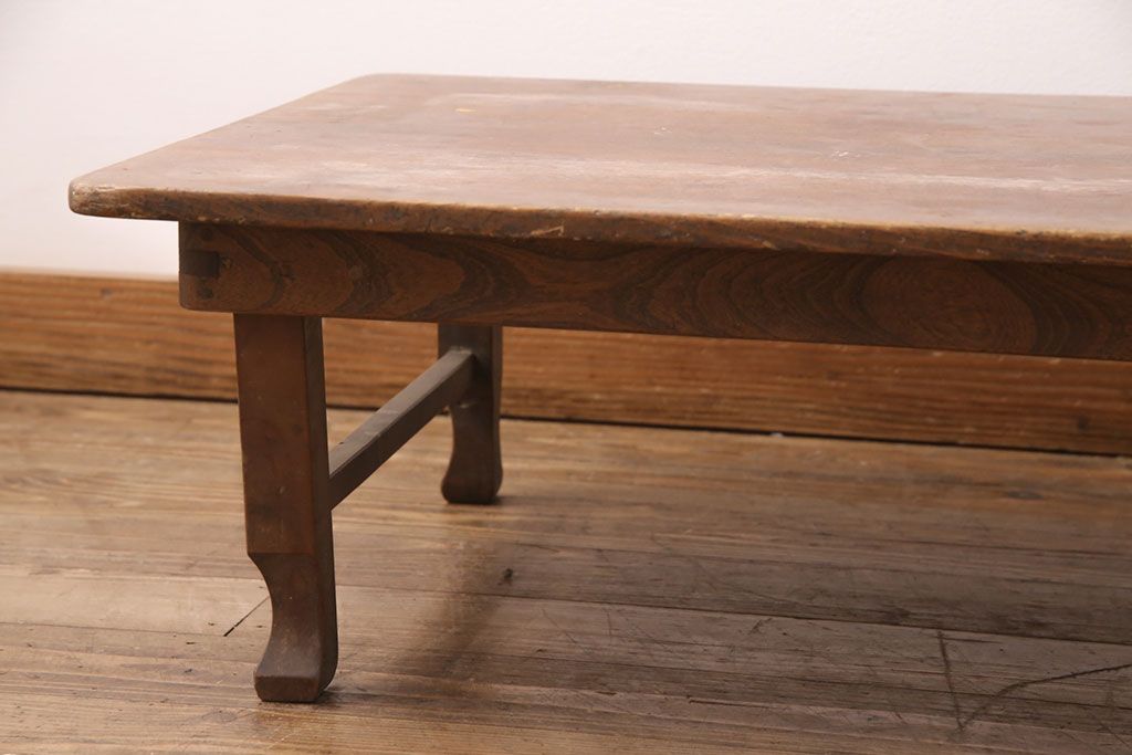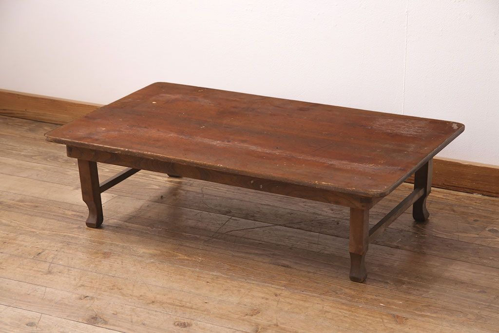 テーブル> 座卓 > 和製アンティーク ヒノキ材・ケヤキ材 レトロな空間づくりに活躍する横長タイプのちゃぶ台(座卓、ローテーブル、折り畳み)(R-051318)