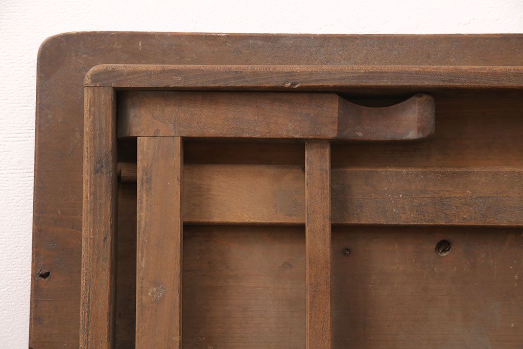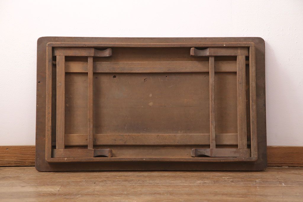 テーブル> おりたたみテーブル > 和製アンティーク ヒノキ材・ケヤキ材 レトロな空間づくりに活躍する横長タイプのちゃぶ台(座卓、ローテーブル、折り畳み)(R-051318)