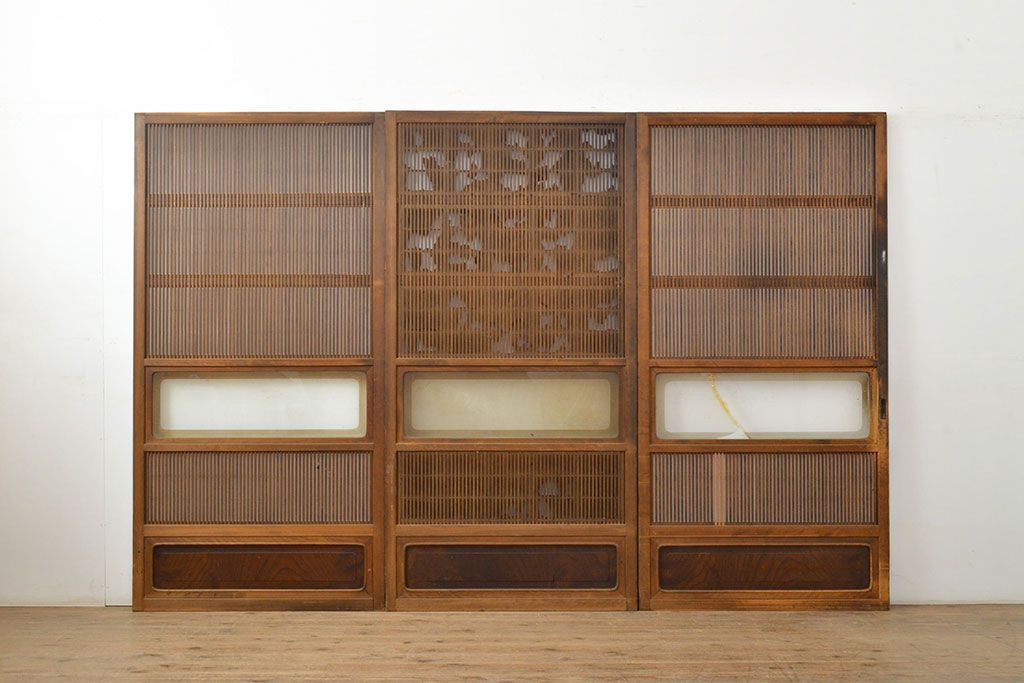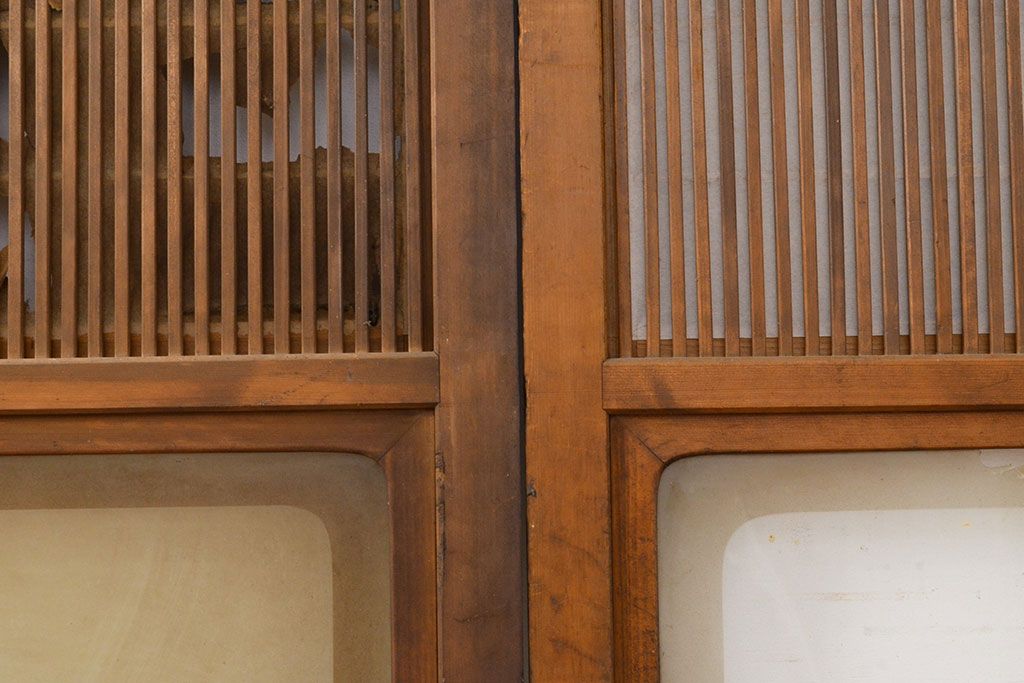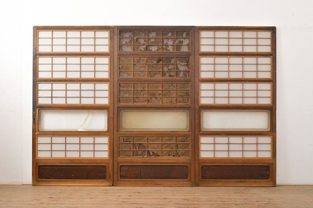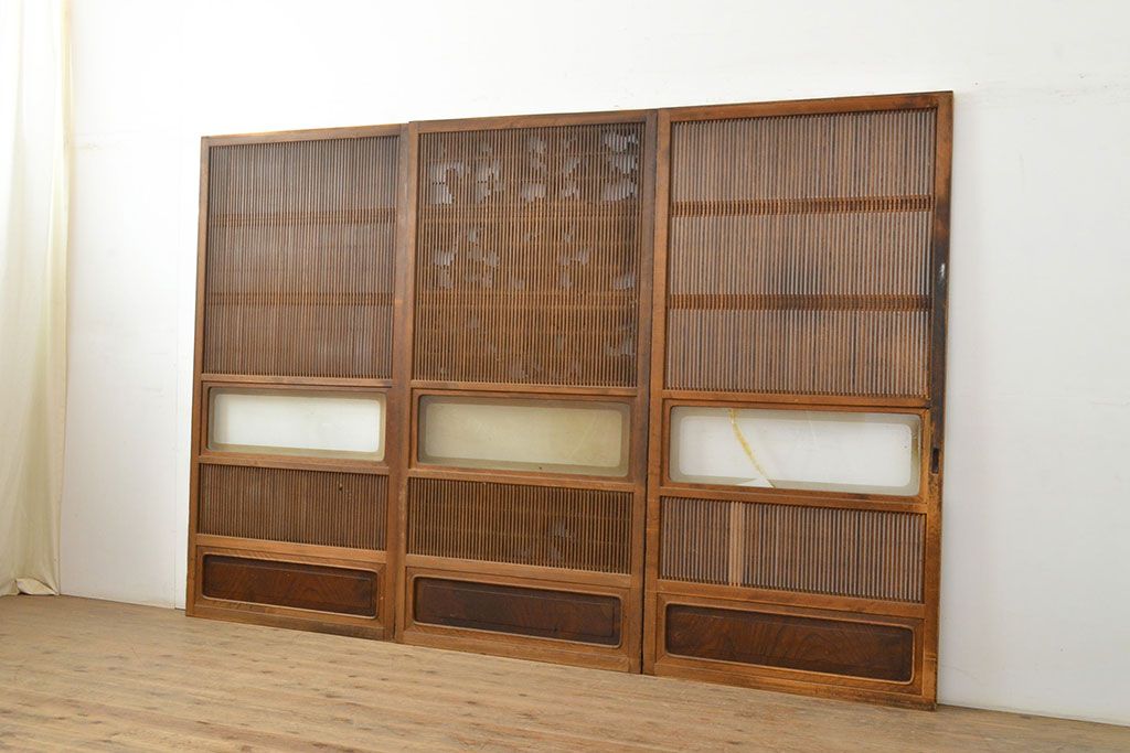 アンティーク建具 昭和中期 レトロな雰囲気漂う裏障子付き万本格子戸3枚セット(引き戸、障子戸)(R-051173)