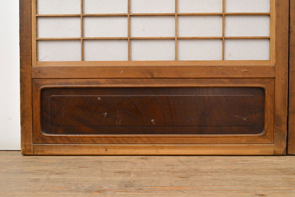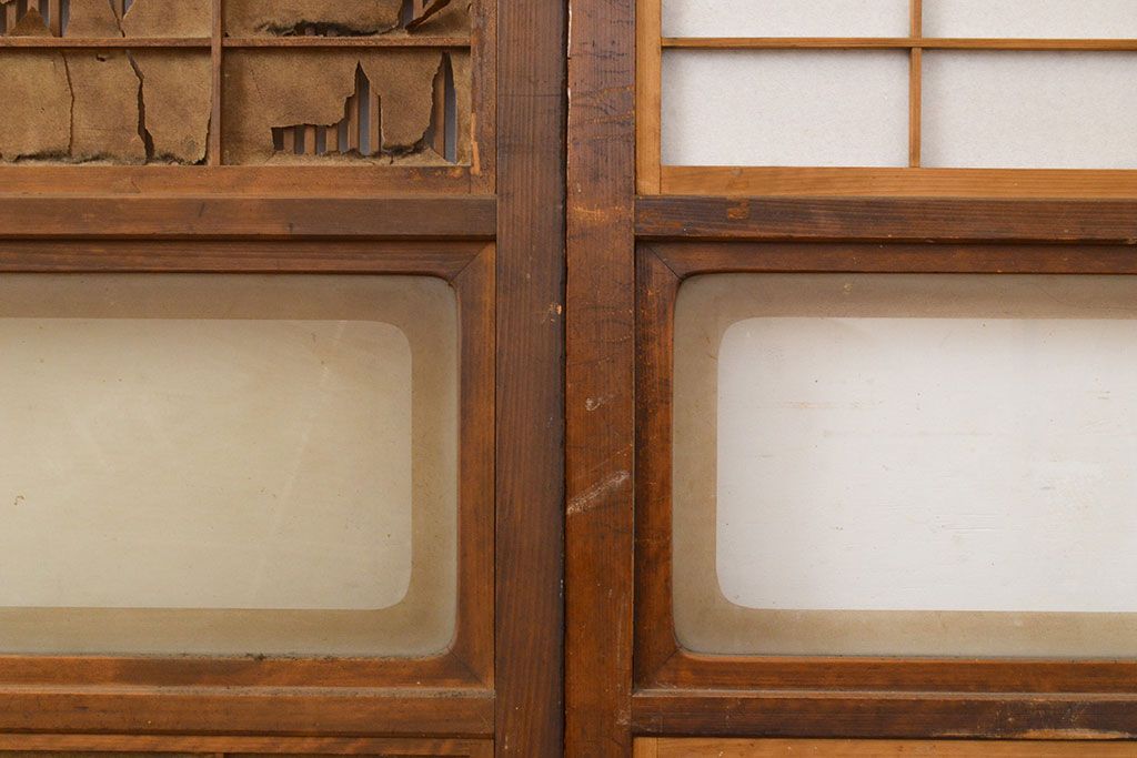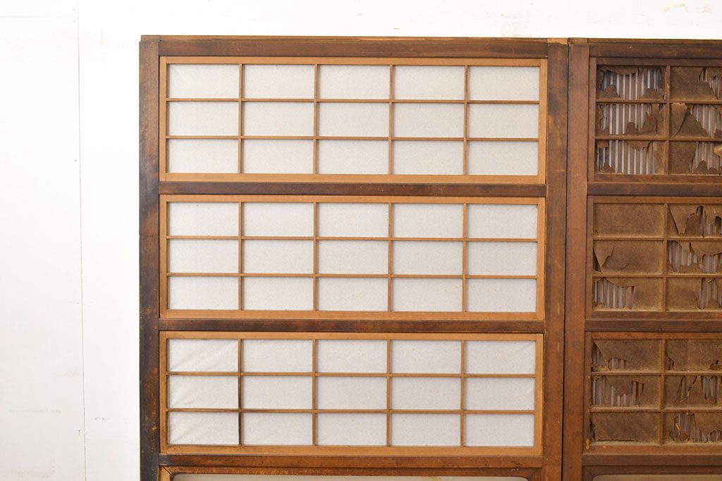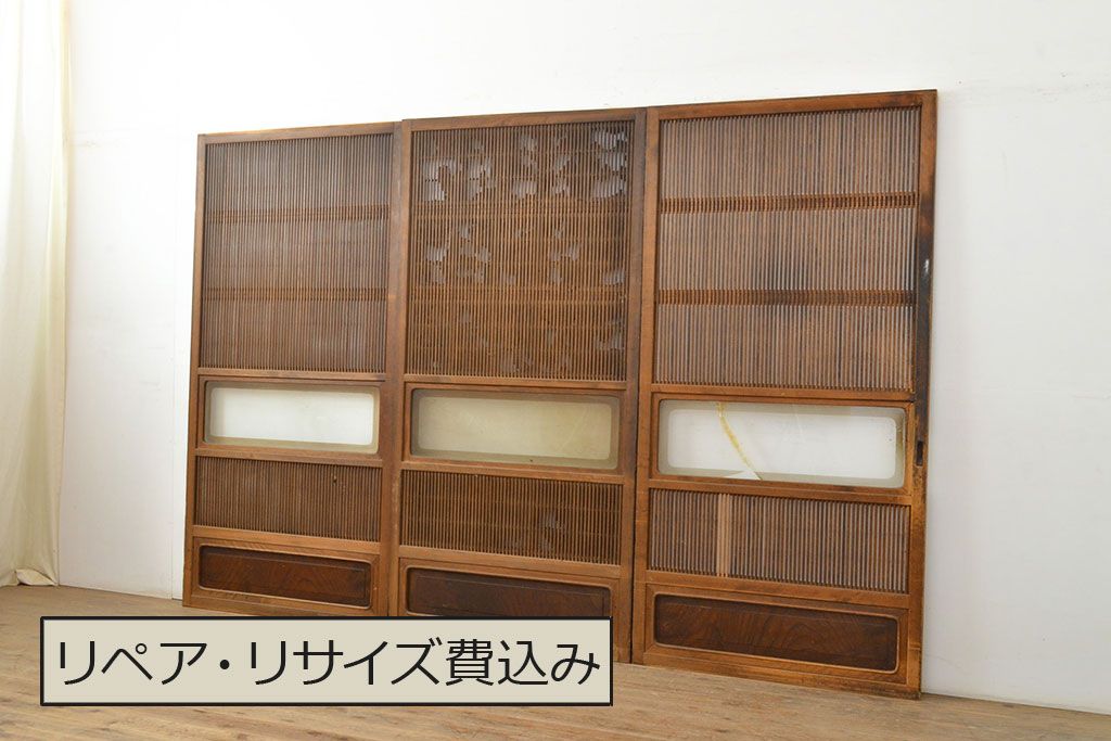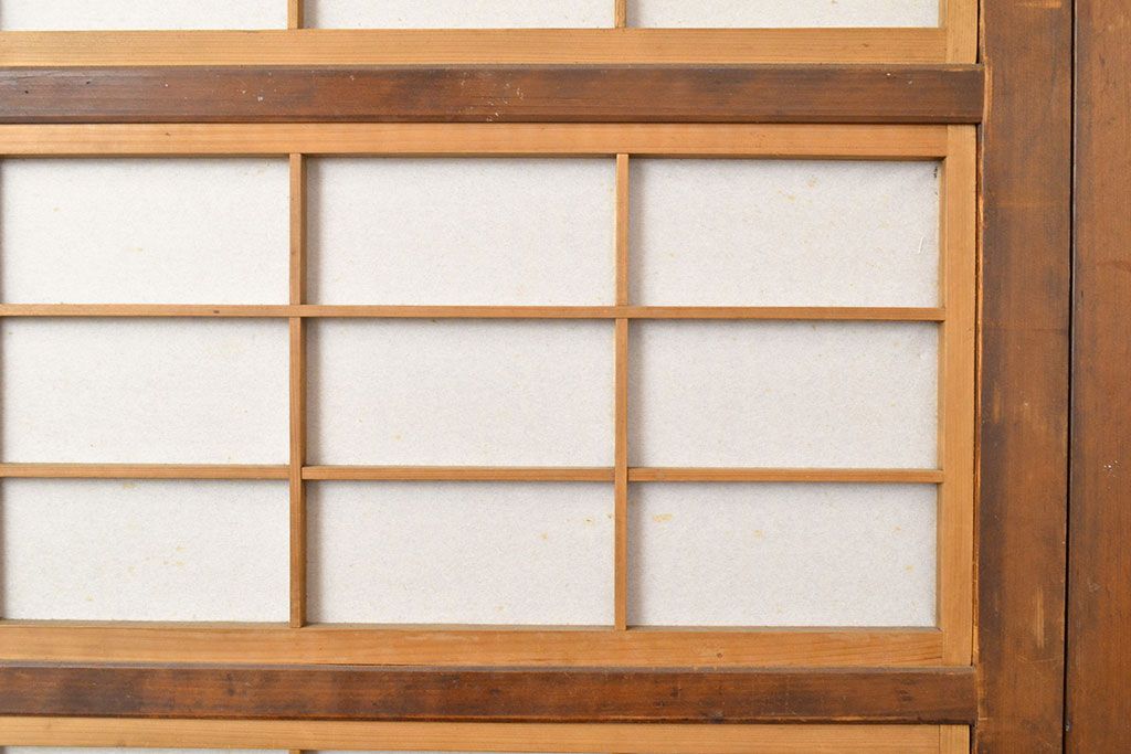アンティーク建具 昭和中期 レトロな雰囲気漂う裏障子付き万本格子戸3枚セット(引き戸、障子戸)(R-051173)