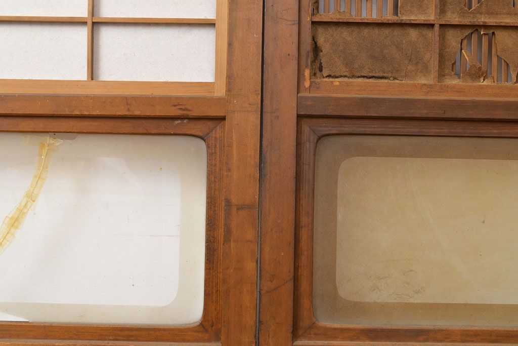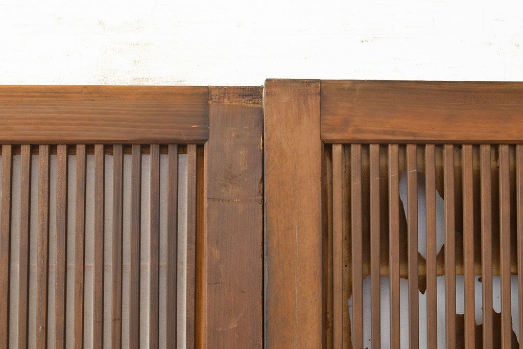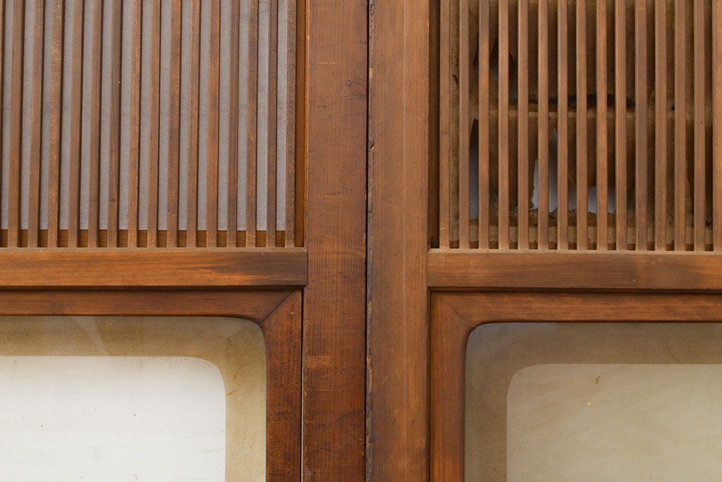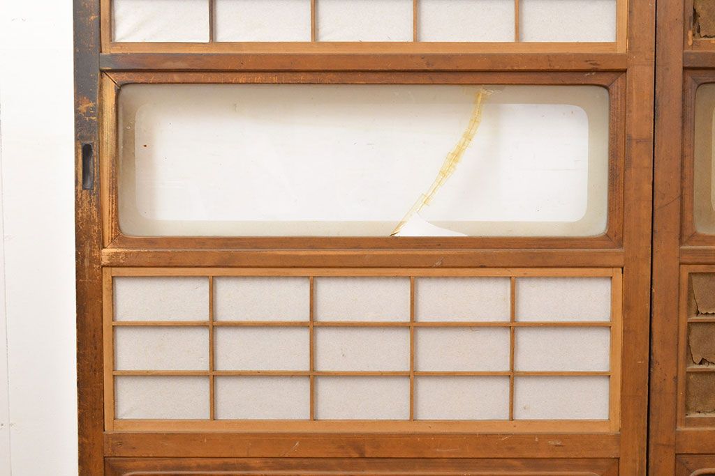 ラフジュ工房> ドア・建具> 障子戸 > アンティーク建具 昭和中期 レトロな雰囲気漂う裏障子付き万本格子戸3枚セット(引き戸、障子戸)(R-051173)