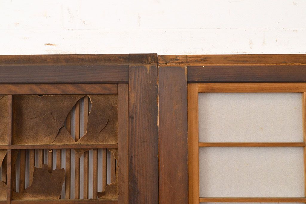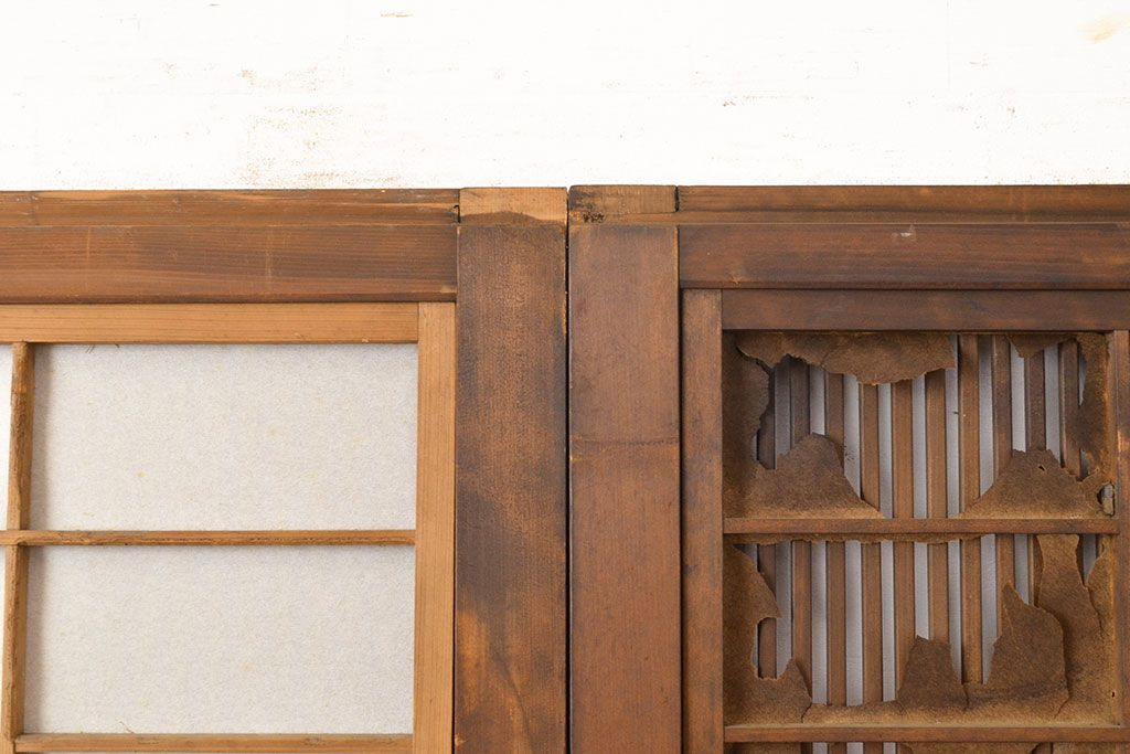 ラフジュ工房> ドア・建具> 引き戸 > アンティーク建具 昭和中期 レトロな雰囲気漂う裏障子付き万本格子戸3枚セット(引き戸、障子戸)(R-051173)