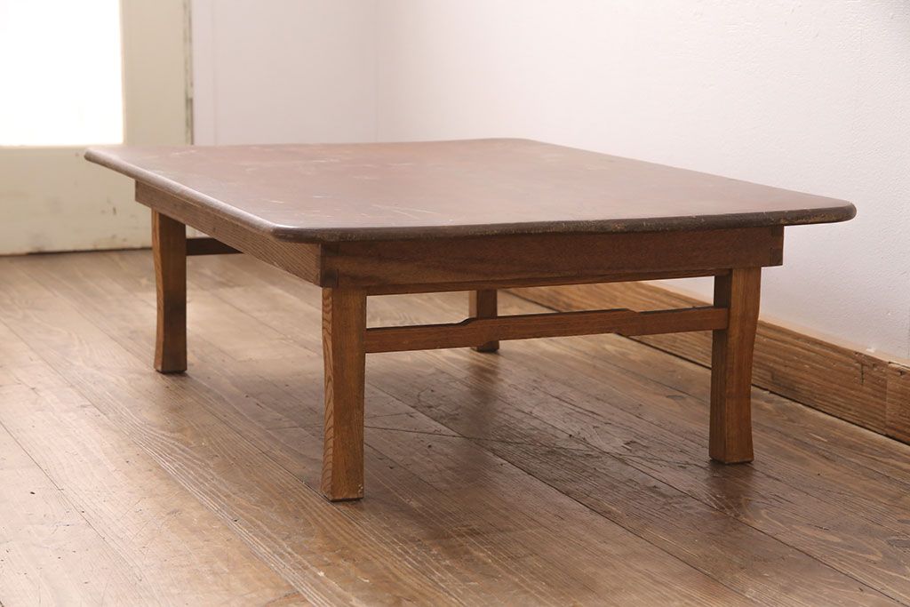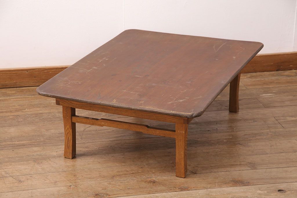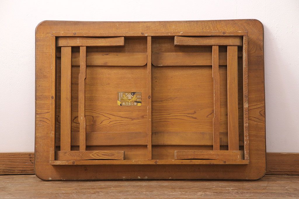 アンティーク家具 昭和レトロ 栓材 木の温もりを感じる風合いが魅力の折り畳みちゃぶ台(座卓、ローテーブル)(R-051324)