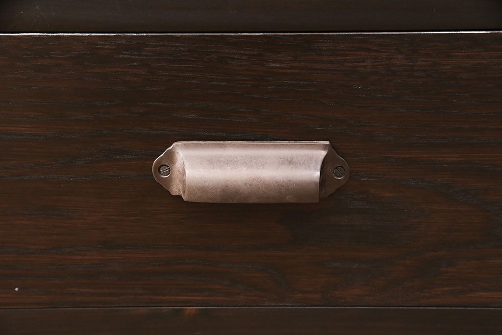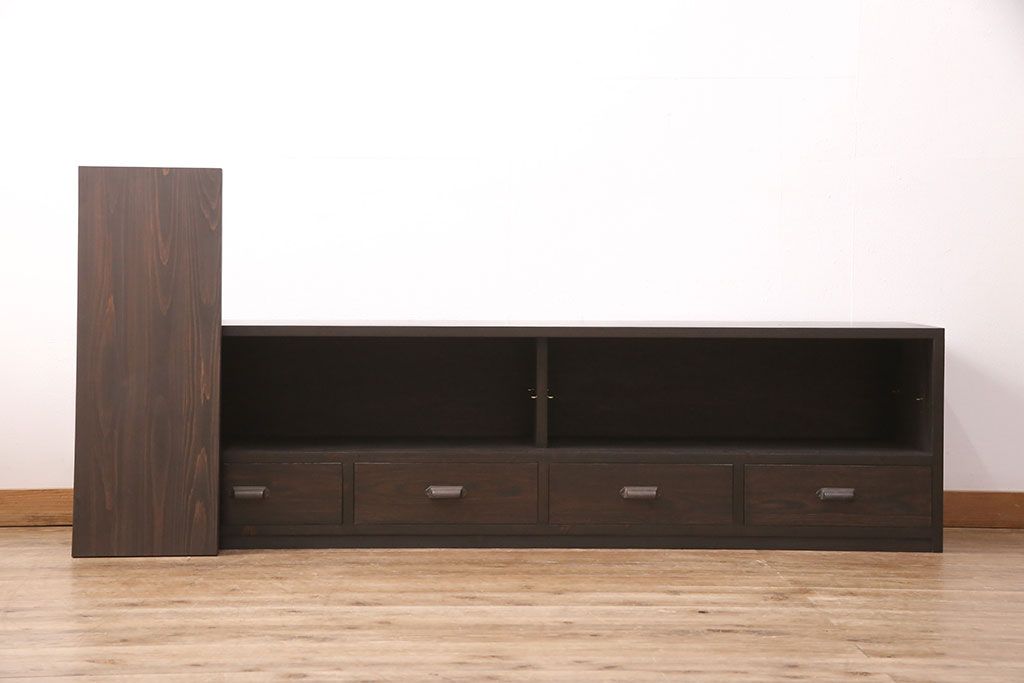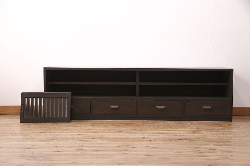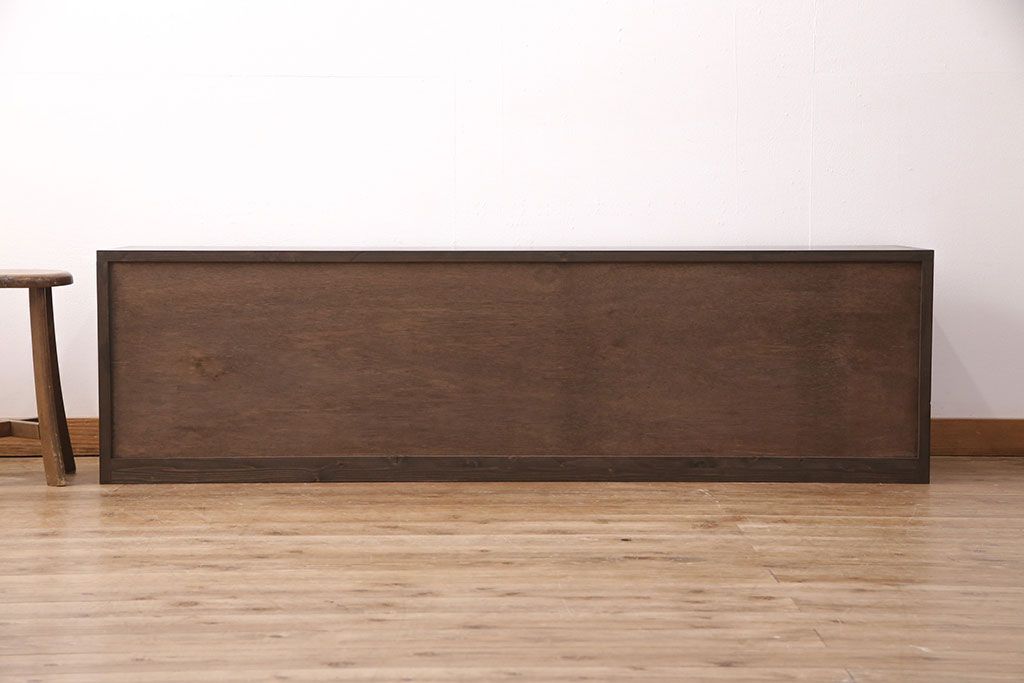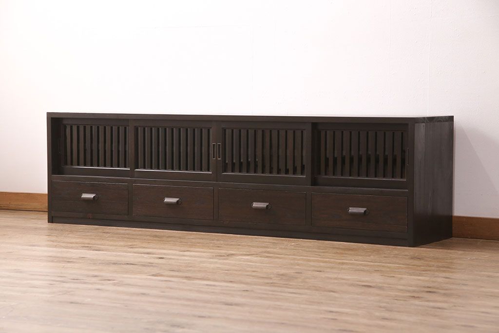 ローボードを新規製作!建具は縦格子とクリアガラスを組み入れ、下部に引き出しを設置。同時購入の商品と色を合わせて着色し仕上げ。(収納棚、戸棚、サイドボード)