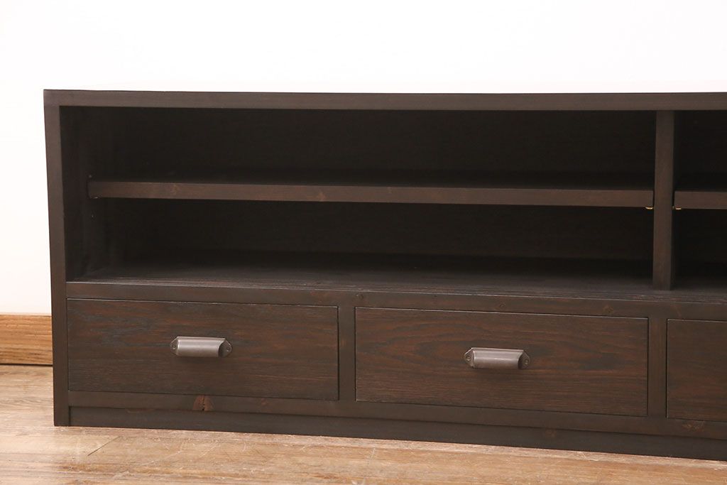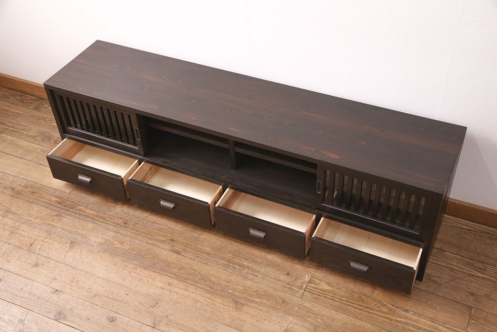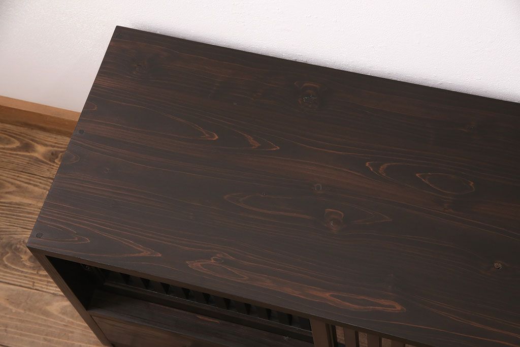 キャビネット・戸棚> テレビ台・ローボード > ローボードを新規製作!建具は縦格子とクリアガラスを組み入れ、下部に引き出しを設置。同時購入の商品と色を合わせて着色し仕上げ。(収納棚、戸棚、サイドボード)