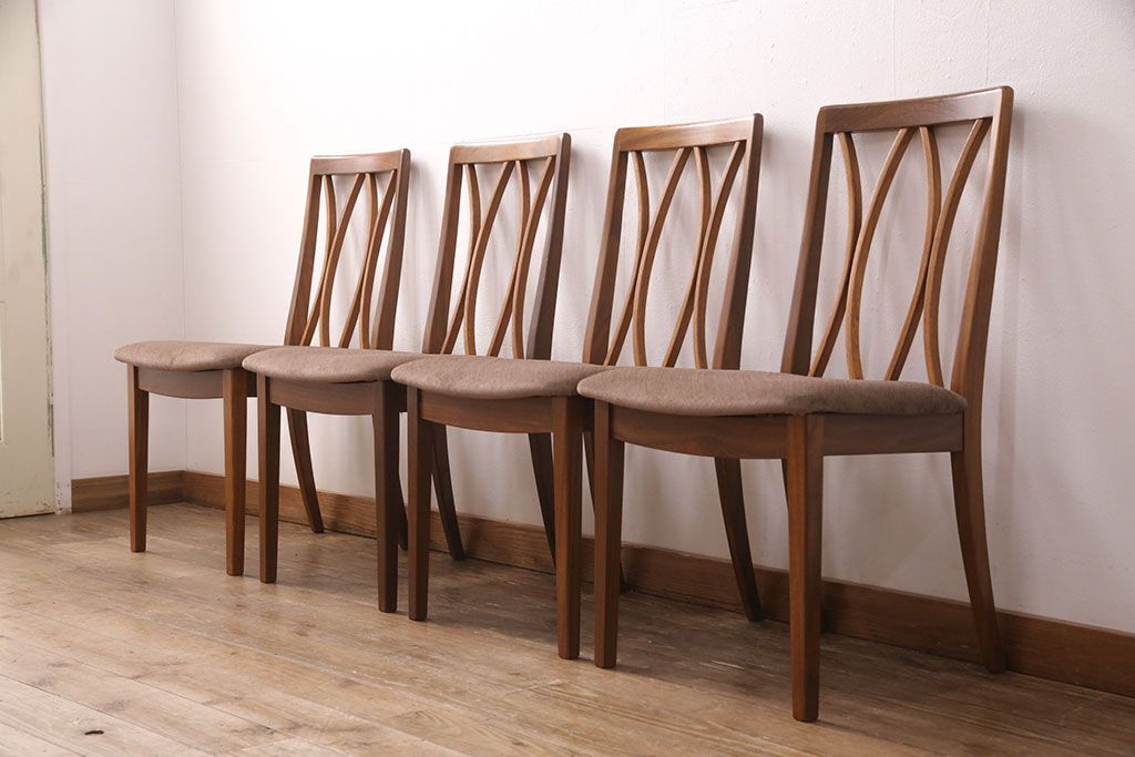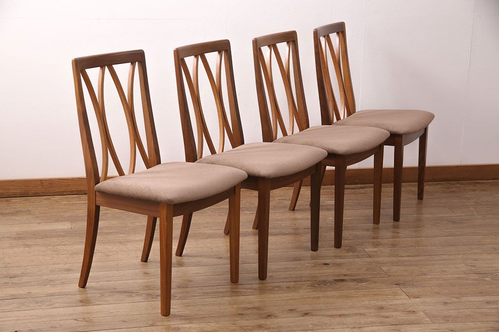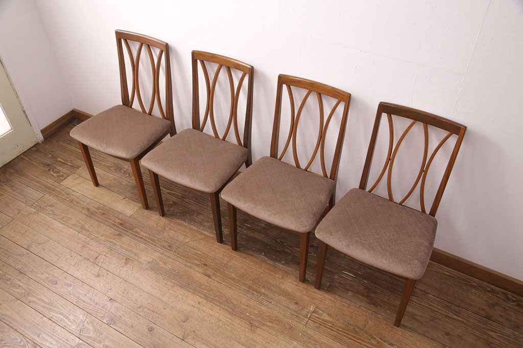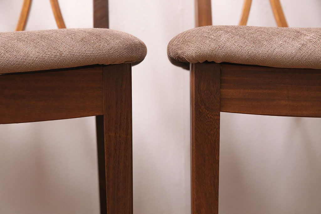 セミオーダー家具実績 > G-PLANのチェア4脚をリペア&カスタム!指定の生地で座面の張り替え。木部は現状に近しい色味に着色し仕上げ。(ダイニングチェア、椅子)