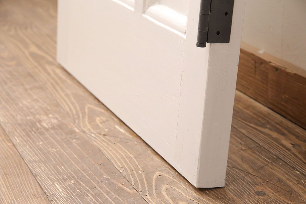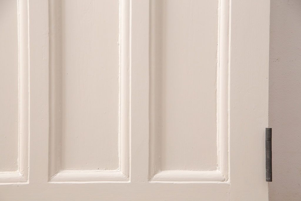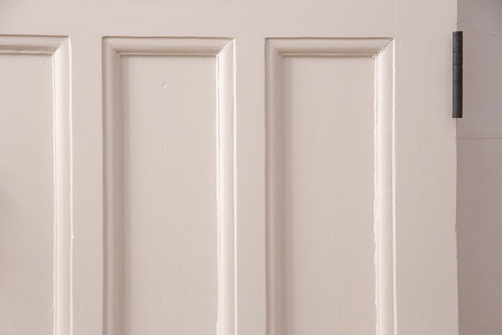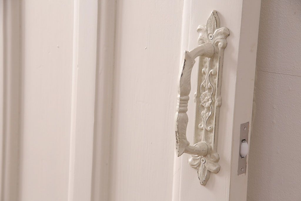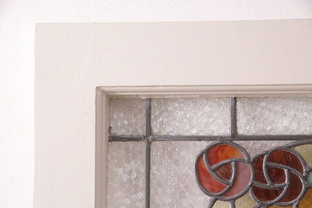 ドア・建具> ドア・扉 > フランスアンティークのステンドグラス入り木製ドアをリペア&カスタム!開き勝手を左右変更し、ローラー締り・蝶番も取り付け。元の色味に近しいアンティークホワイトの着色し仕上げ。(扉、玄関戸、建具)