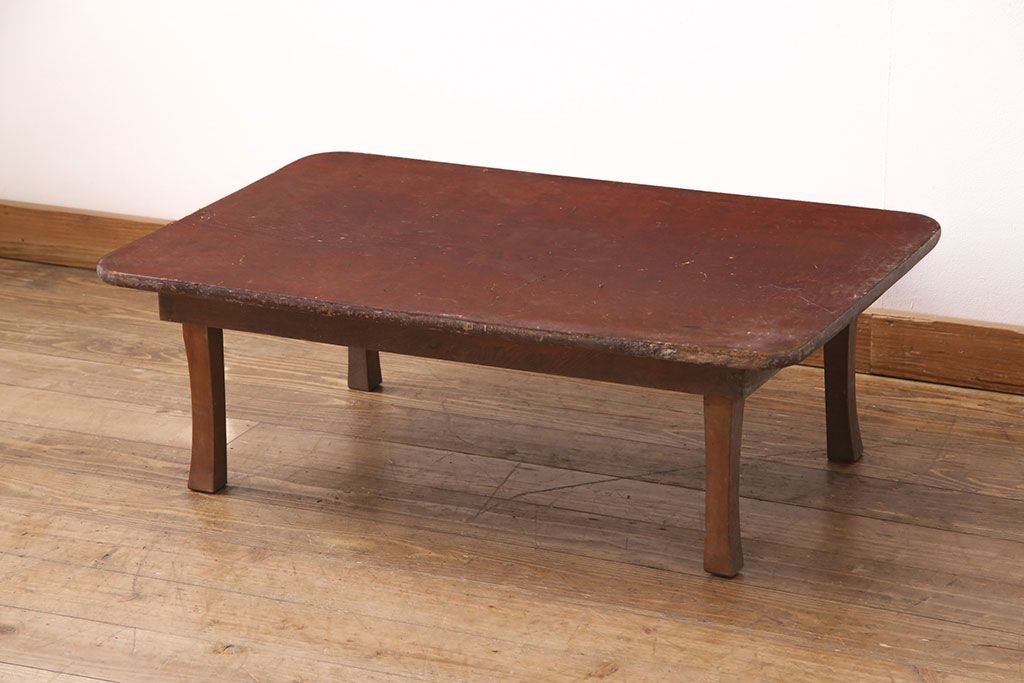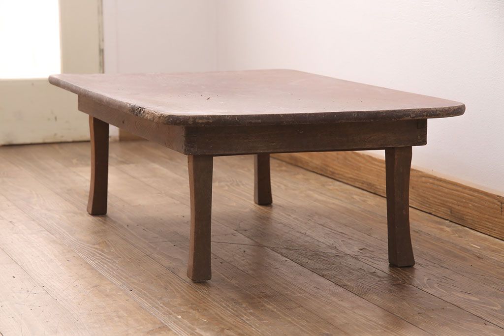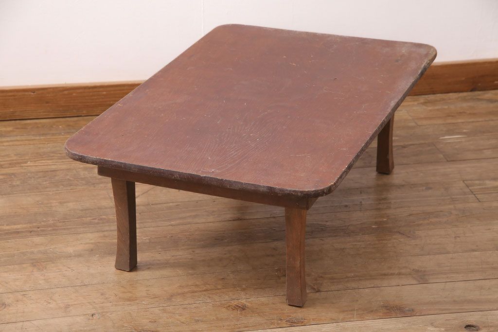 テーブル> 座卓 > 和製アンティーク 栓材の一枚板を使用したレトロな角型ちゃぶ台(座卓、ローテーブル、折り畳みテーブル)(R-051322)