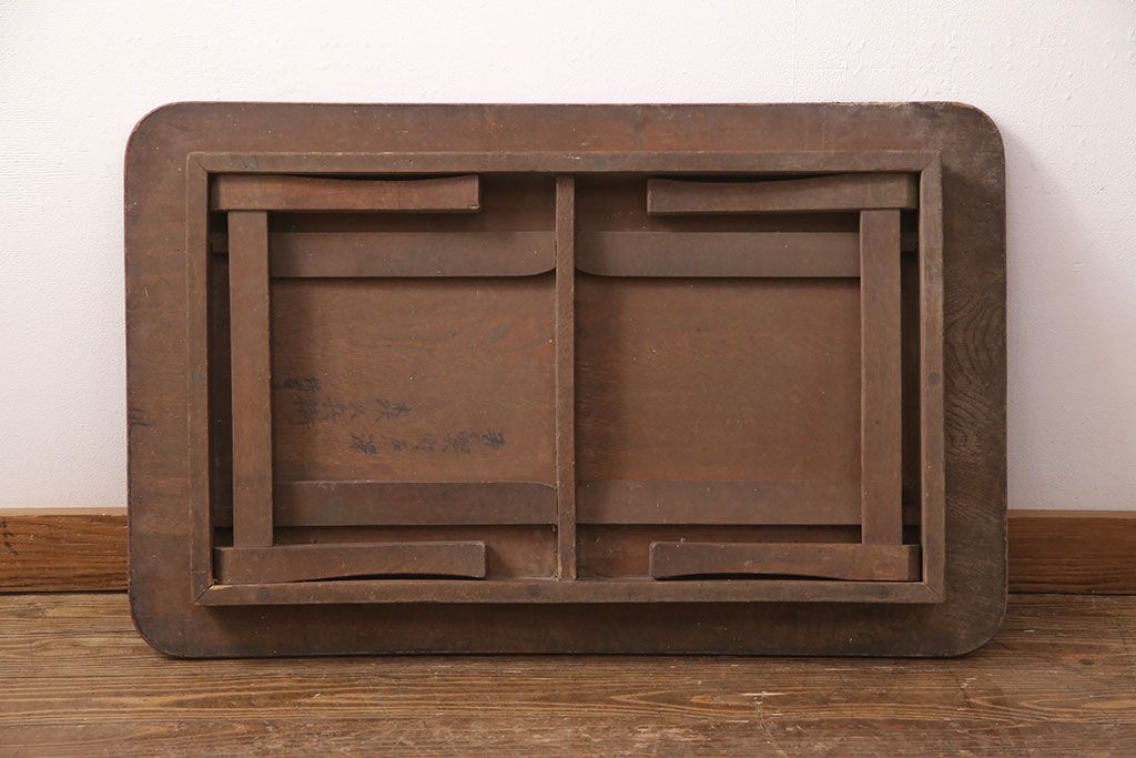 テーブル> おりたたみテーブル > 和製アンティーク 栓材の一枚板を使用したレトロな角型ちゃぶ台(座卓、ローテーブル、折り畳みテーブル)(R-051322)