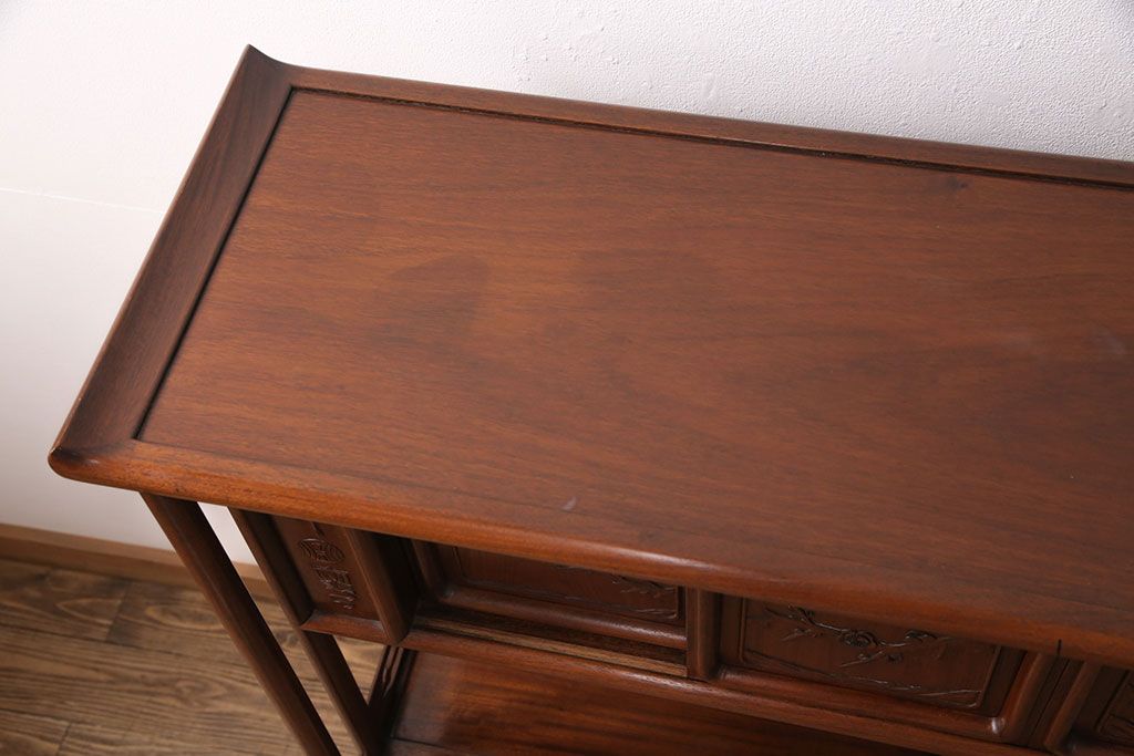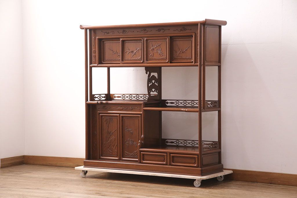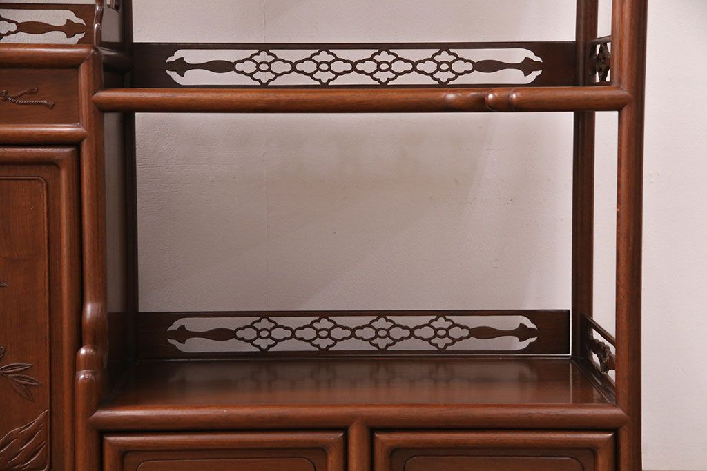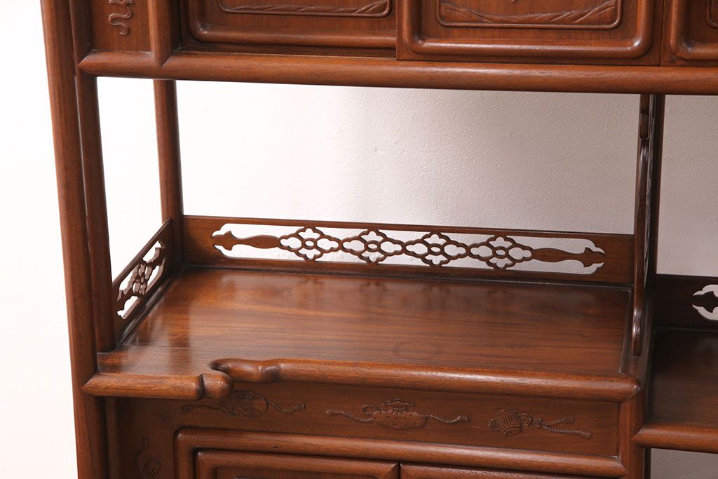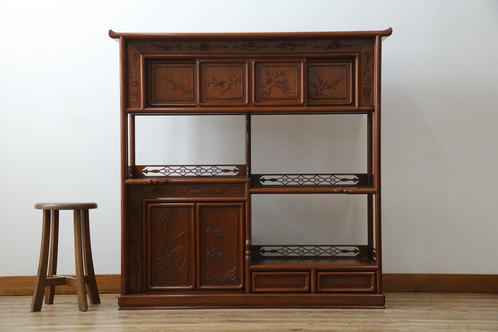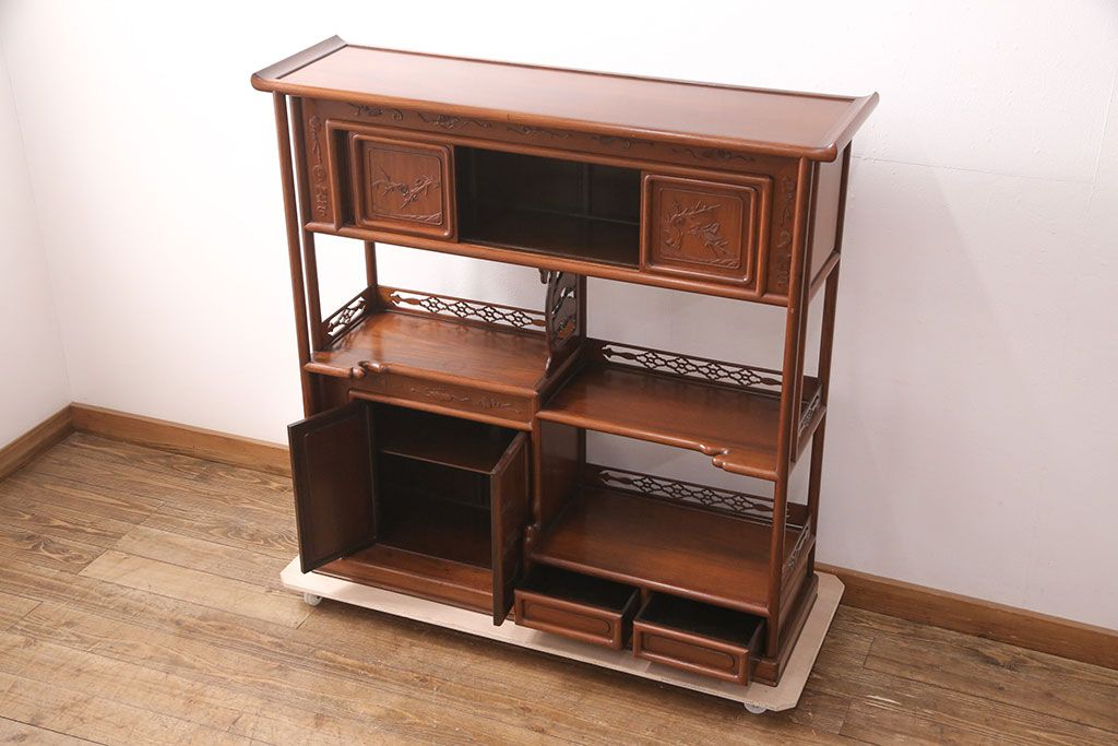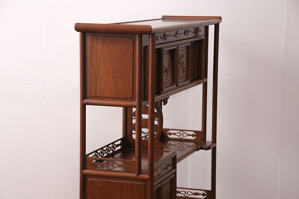 民芸家具 > 中古 美品 伝統工芸家具 中澤唐木製 漆塗りが上品な雰囲気を漂わせるカリン材製の飾り棚(茶棚、収納棚、戸棚、花梨材)(R-051408)