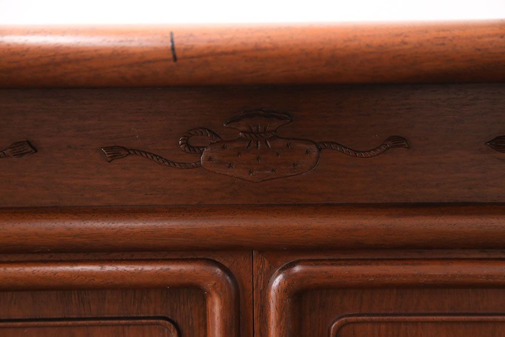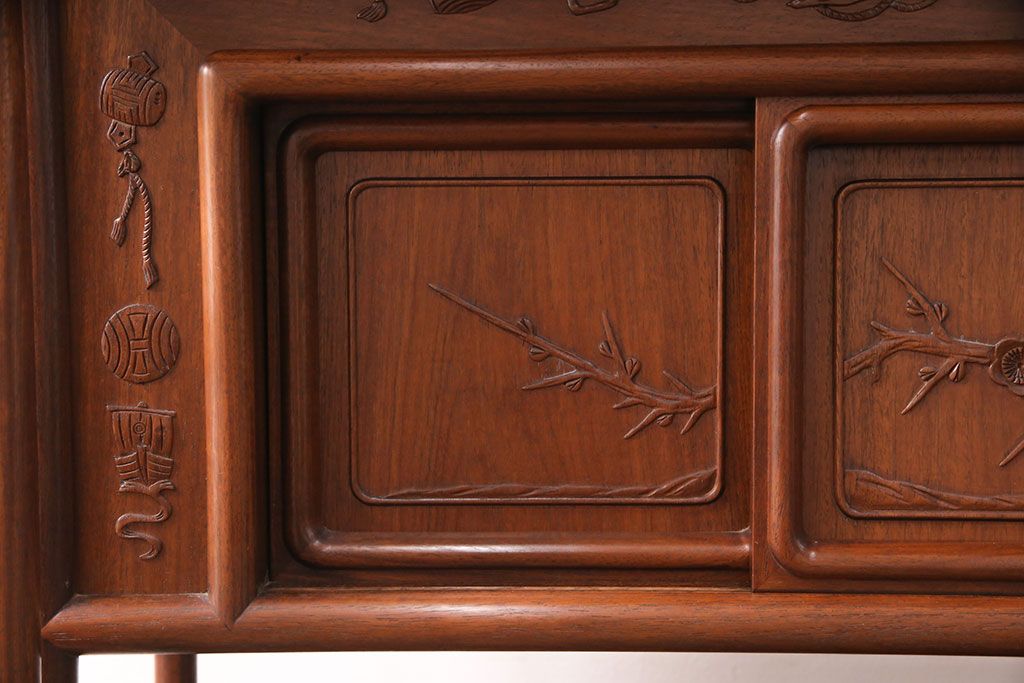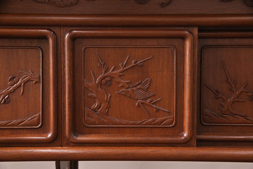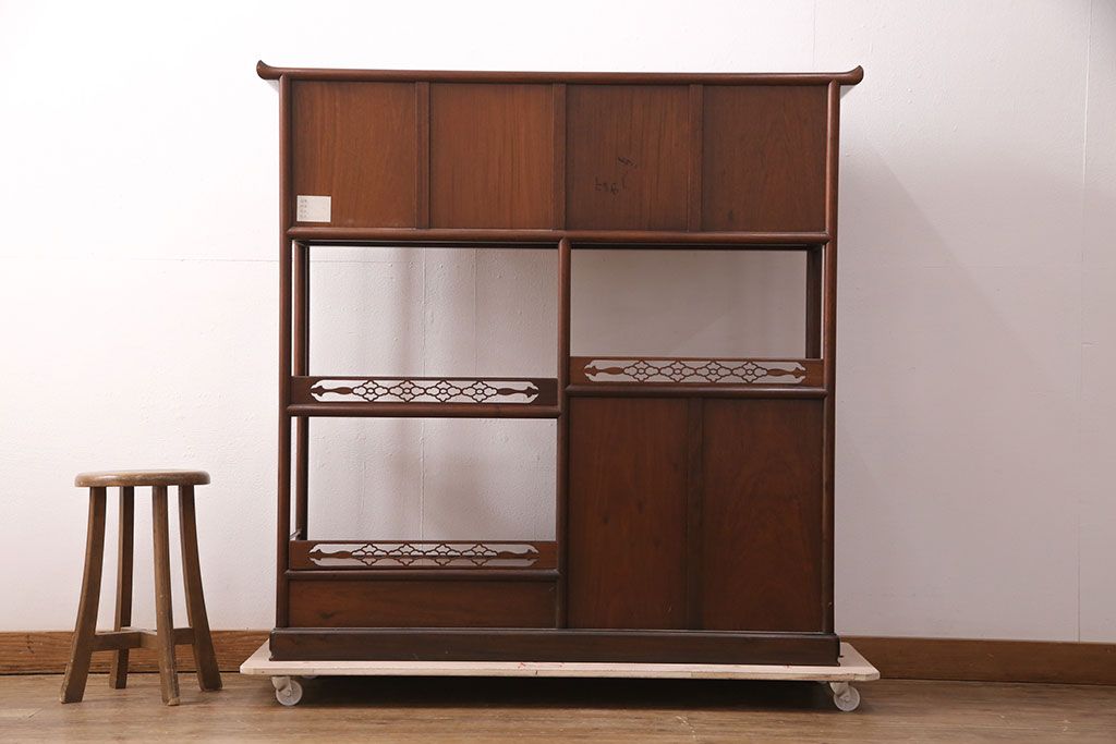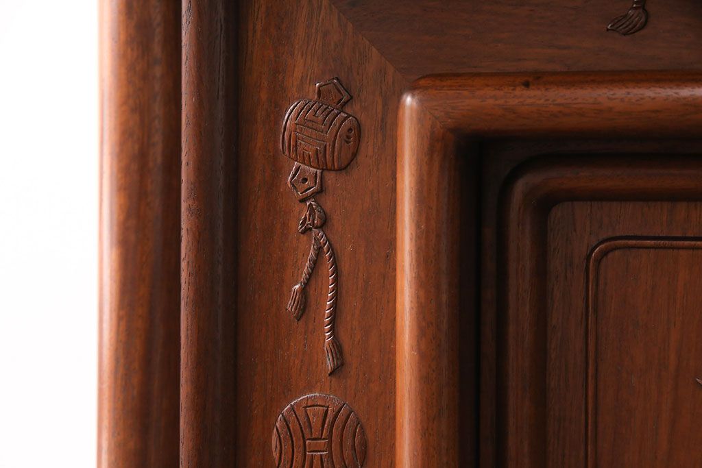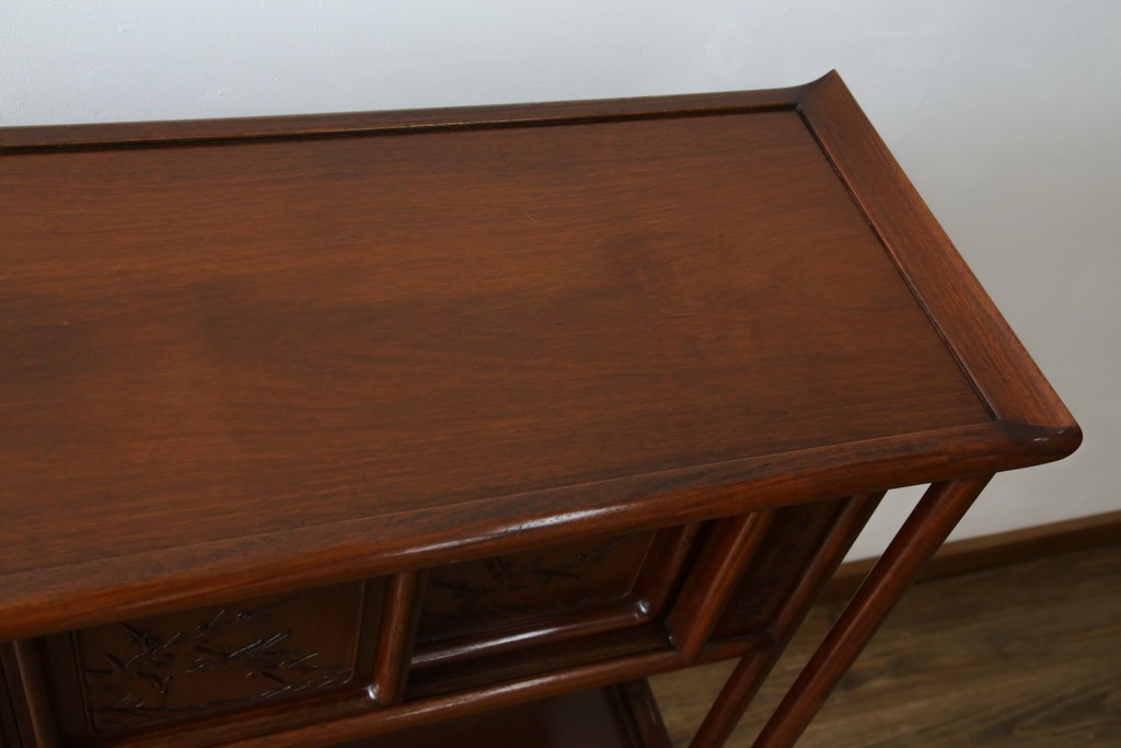 民芸家具 > 中古 美品 伝統工芸家具 中澤唐木製 漆塗りが上品な雰囲気を漂わせるカリン材製の飾り棚(茶棚、収納棚、戸棚、花梨材)(R-051408)