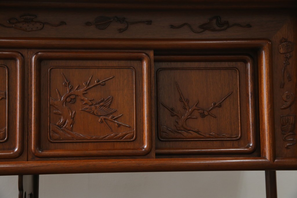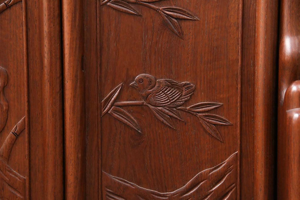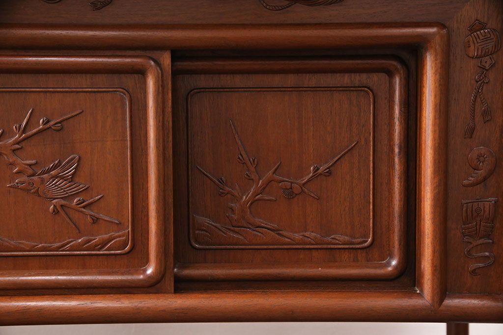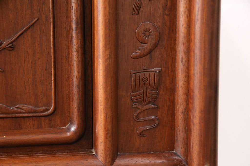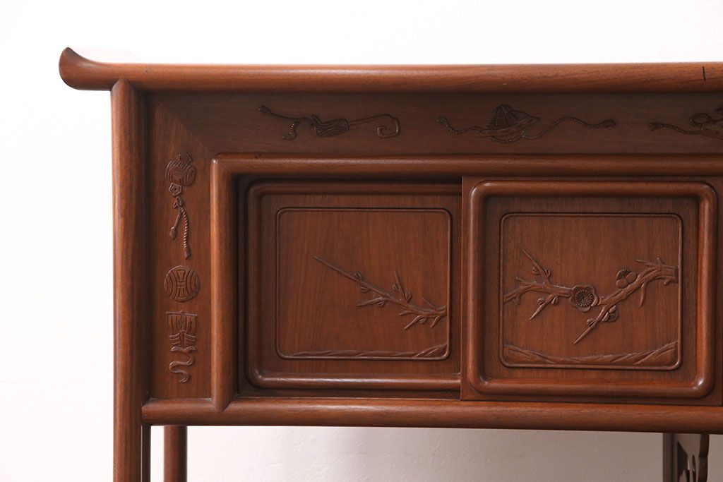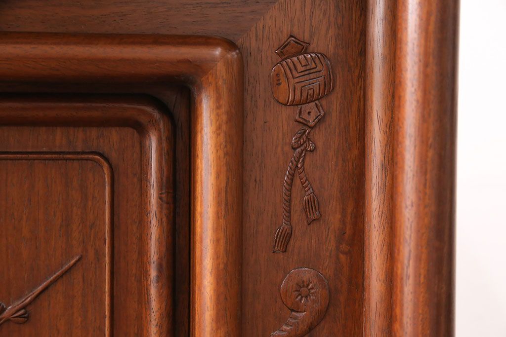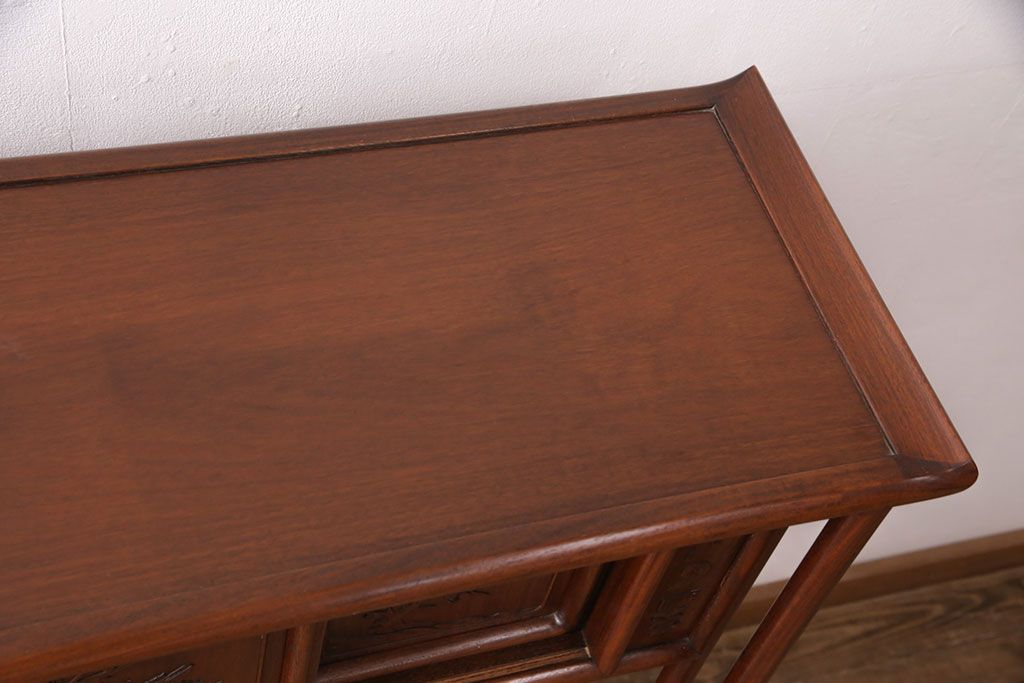 民芸家具 > 中古 美品 伝統工芸家具 中澤唐木製 漆塗りが上品な雰囲気を漂わせるカリン材製の飾り棚(茶棚、収納棚、戸棚、花梨材)(R-051408)