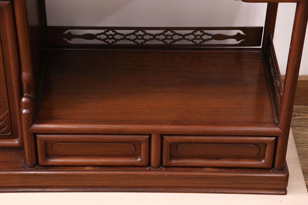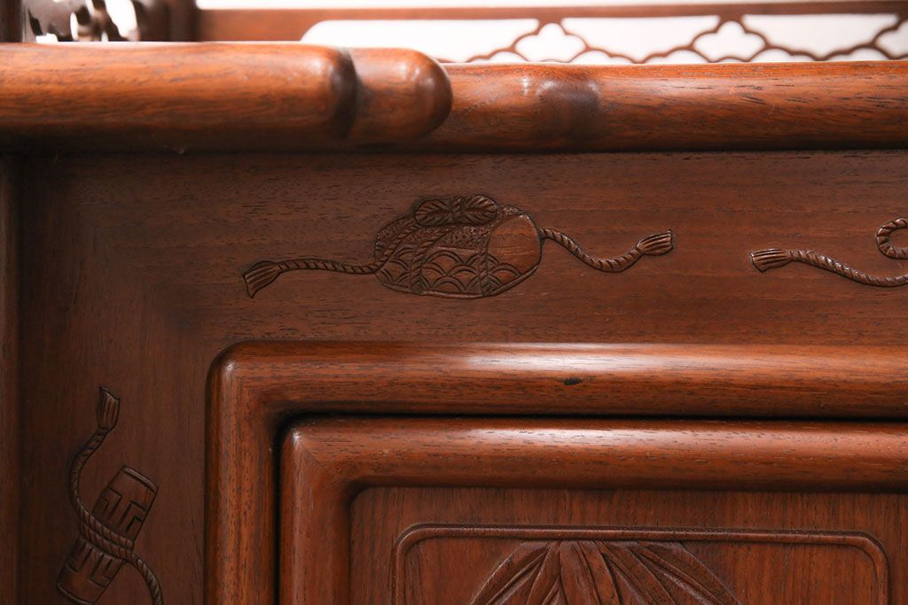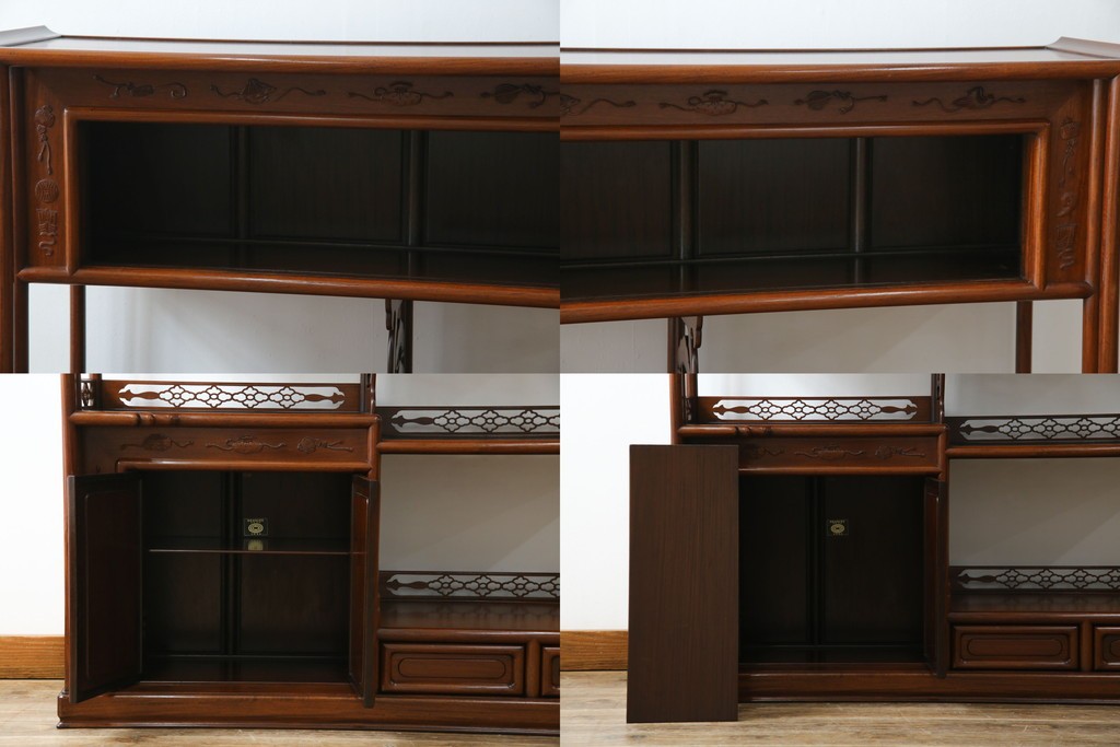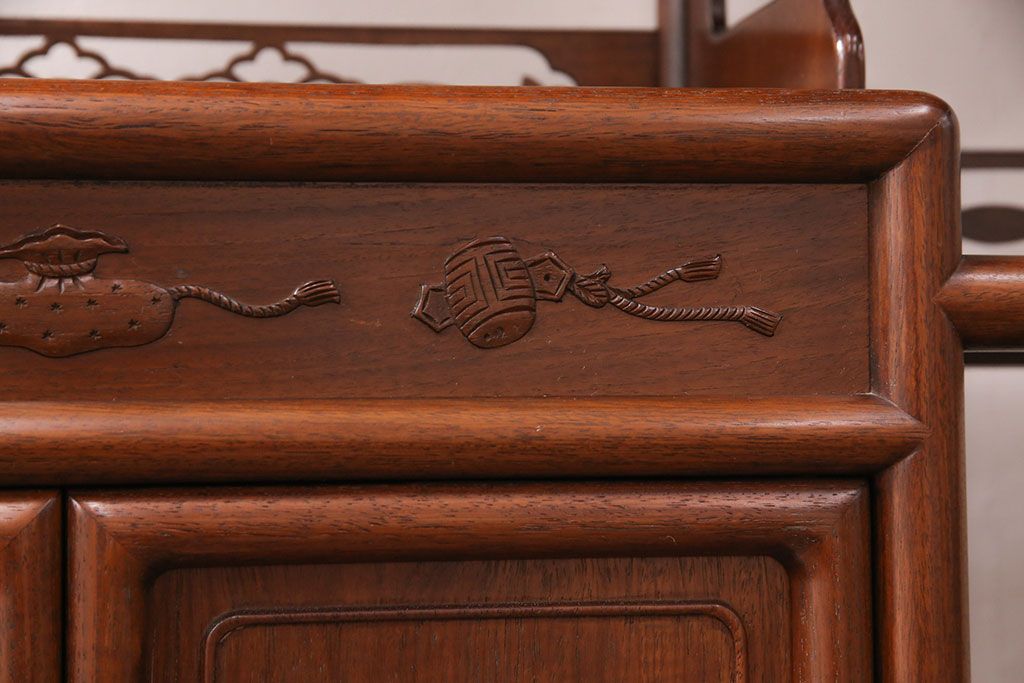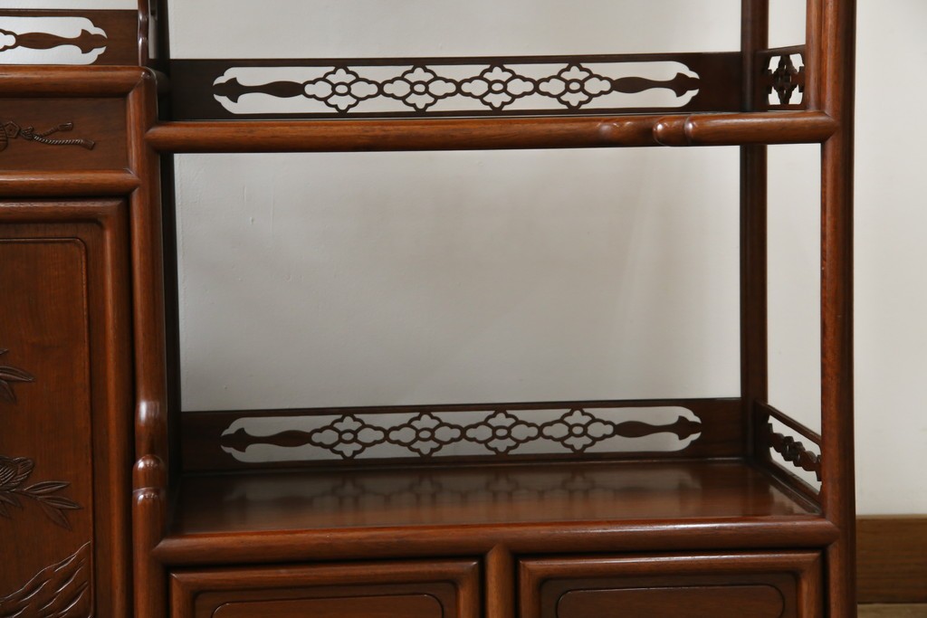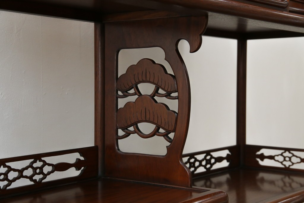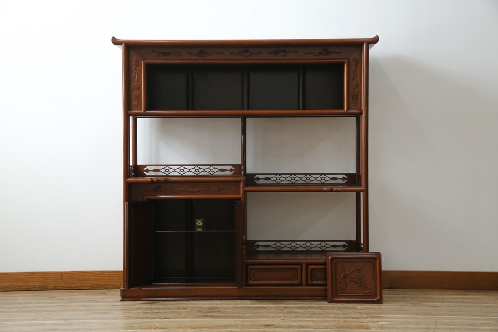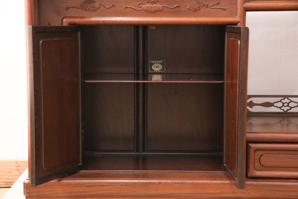 和箪笥 > 中古 美品 伝統工芸家具 中澤唐木製 漆塗りが上品な雰囲気を漂わせるカリン材製の飾り棚(茶棚、収納棚、戸棚、花梨材)(R-051408)