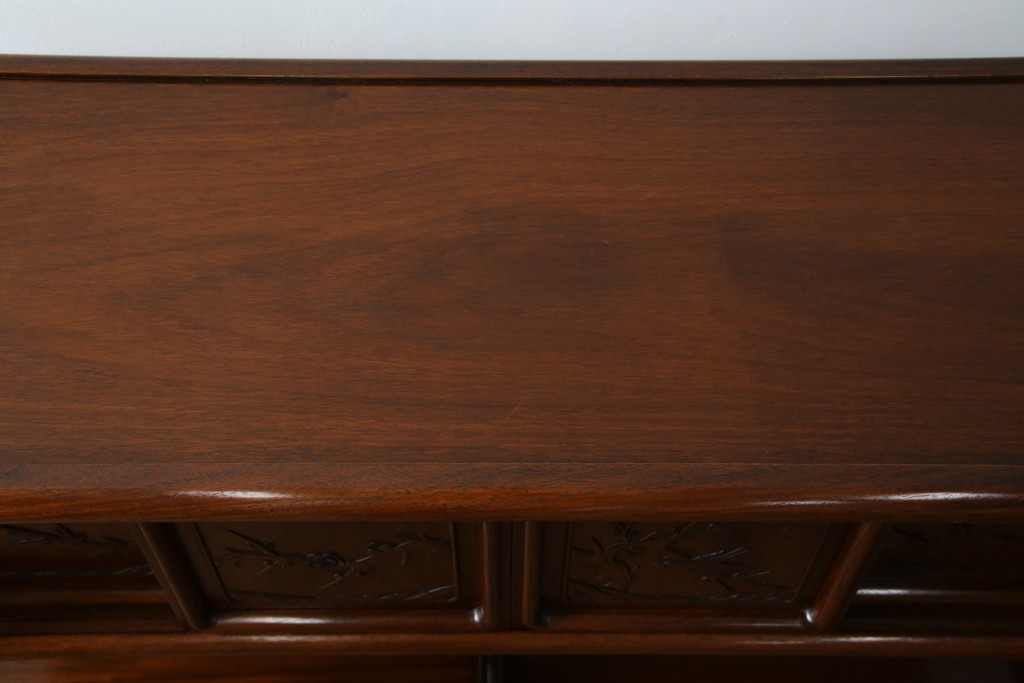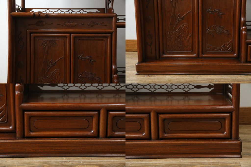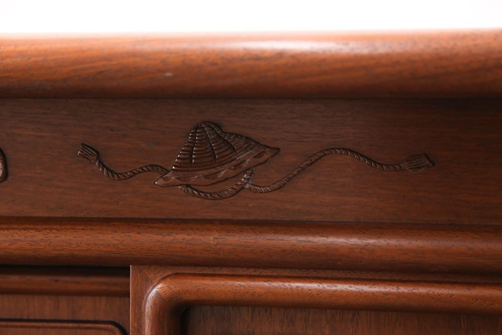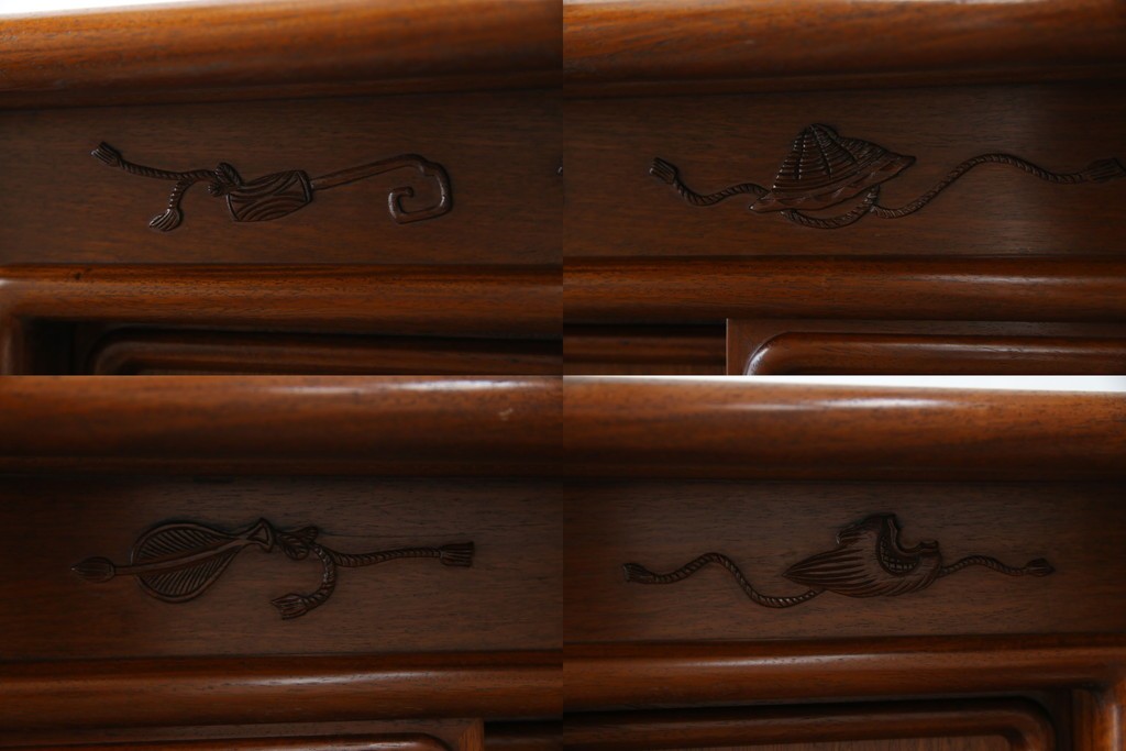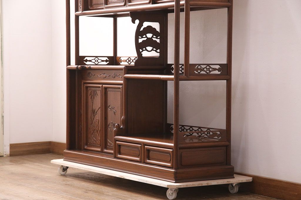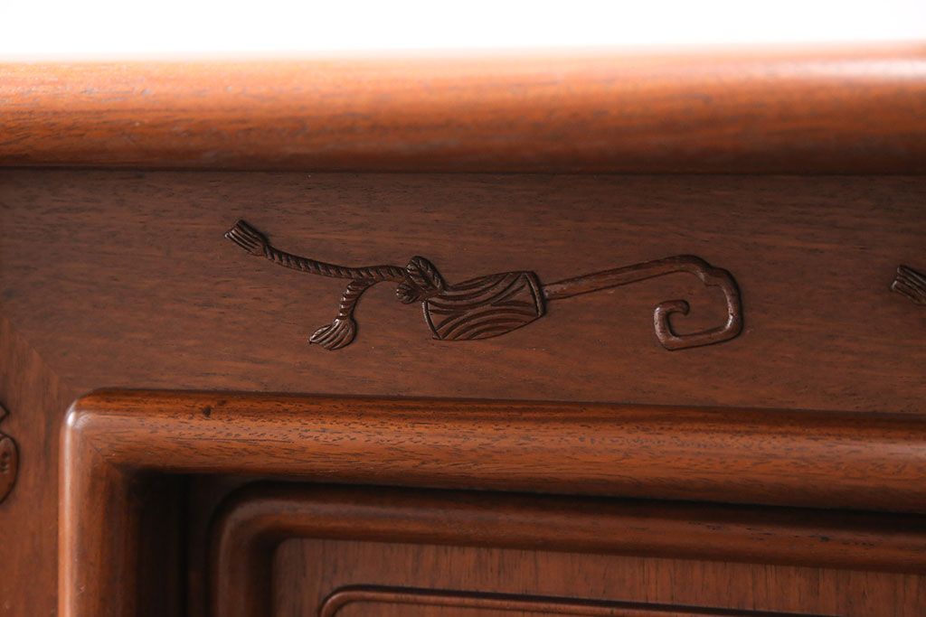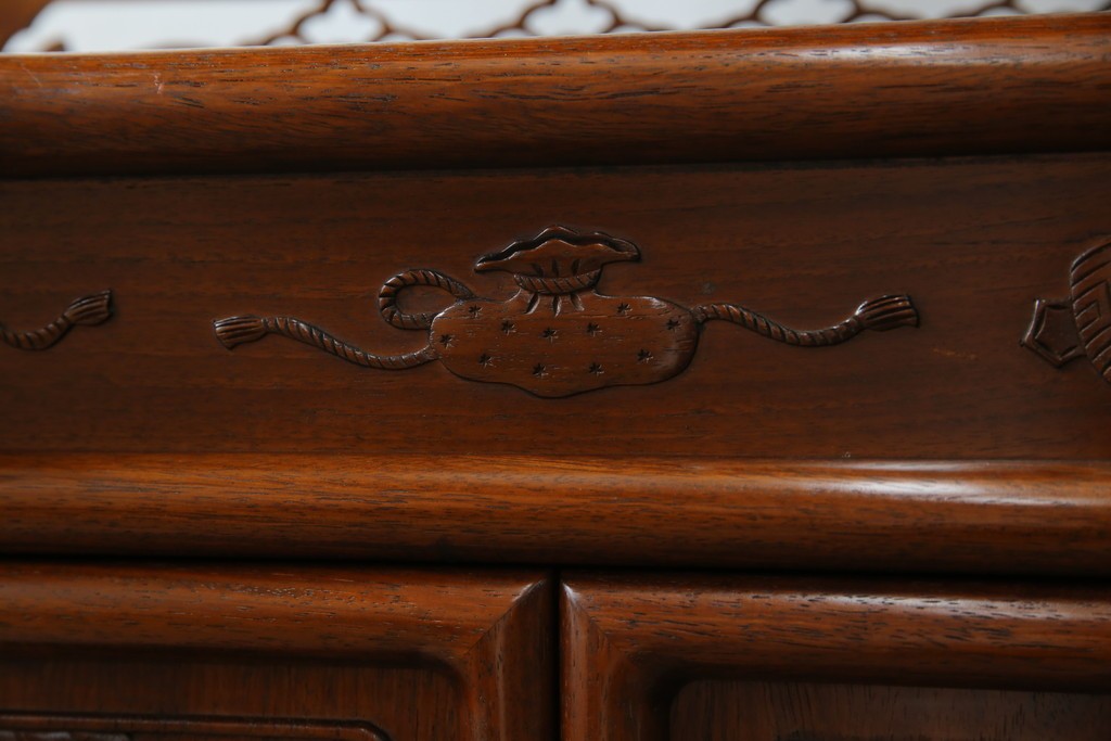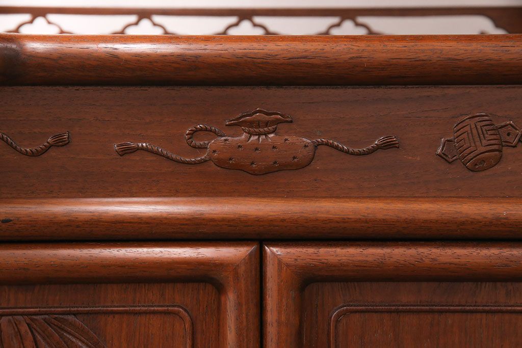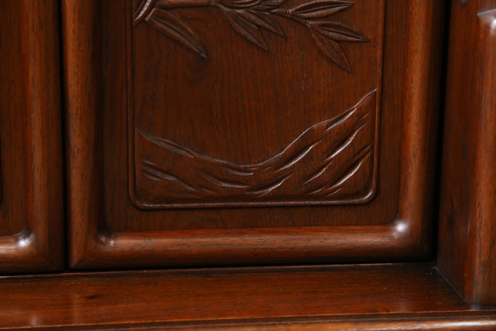 和箪笥 > 中古 美品 伝統工芸家具 中澤唐木製 漆塗りが上品な雰囲気を漂わせるカリン材製の飾り棚(茶棚、収納棚、戸棚、花梨材)(R-051408)