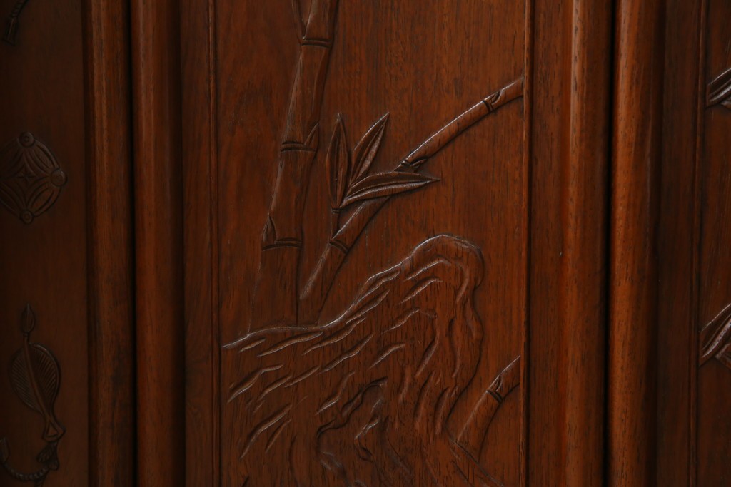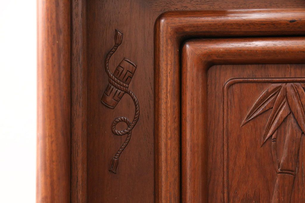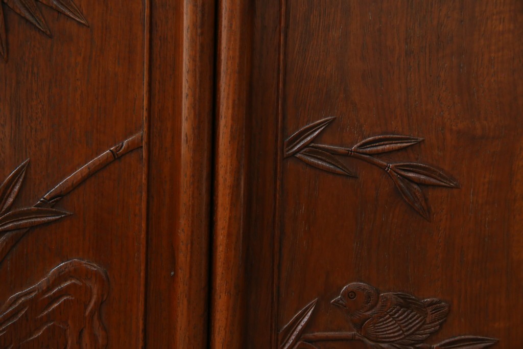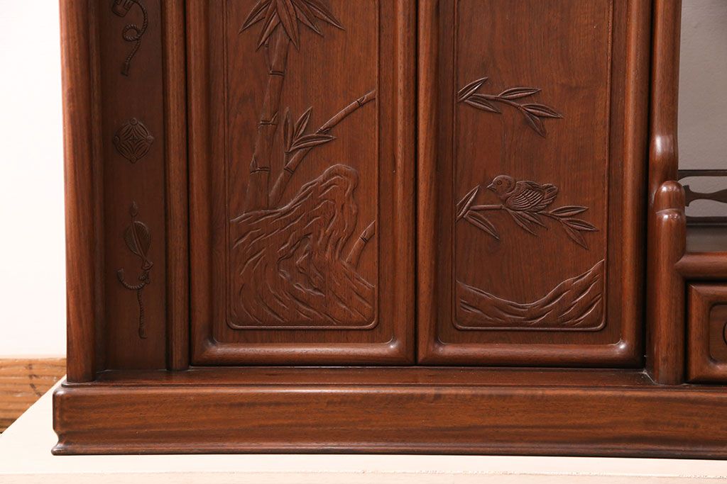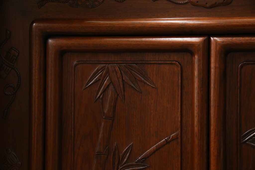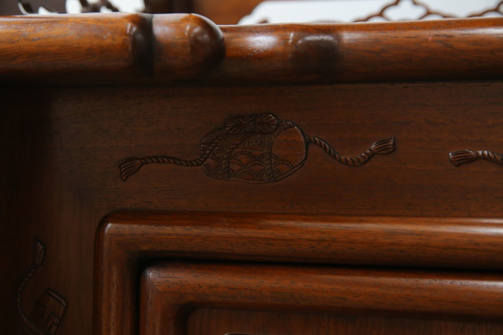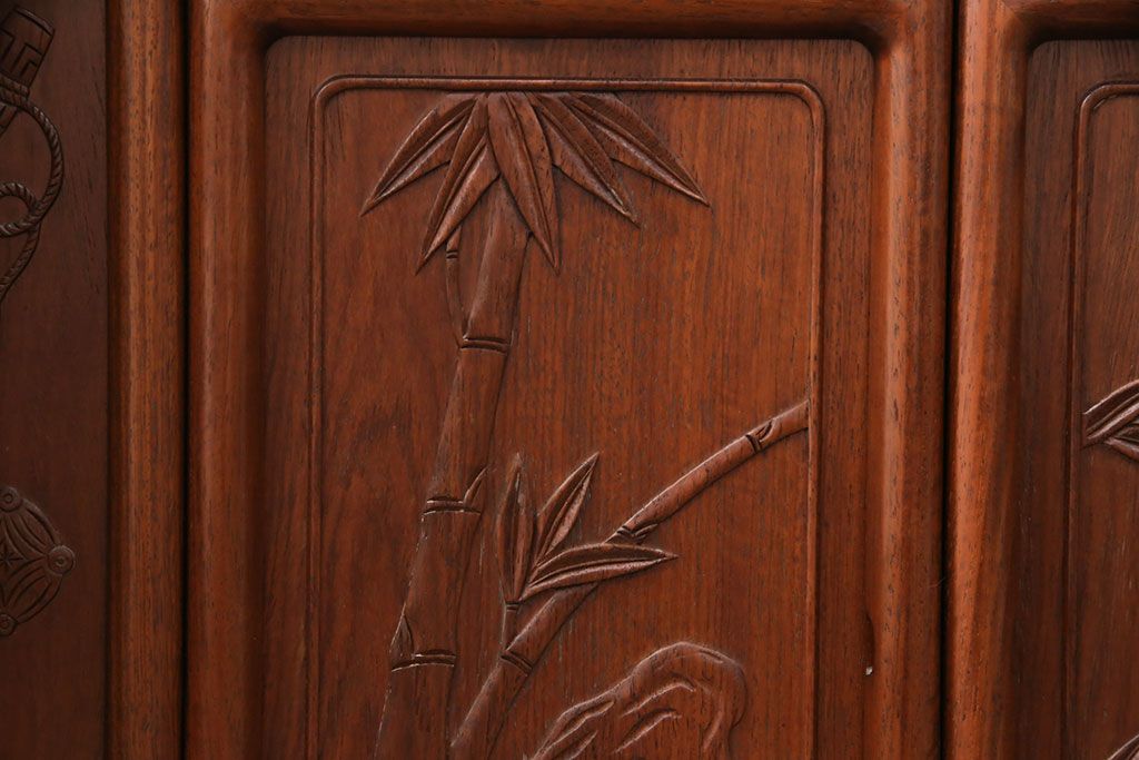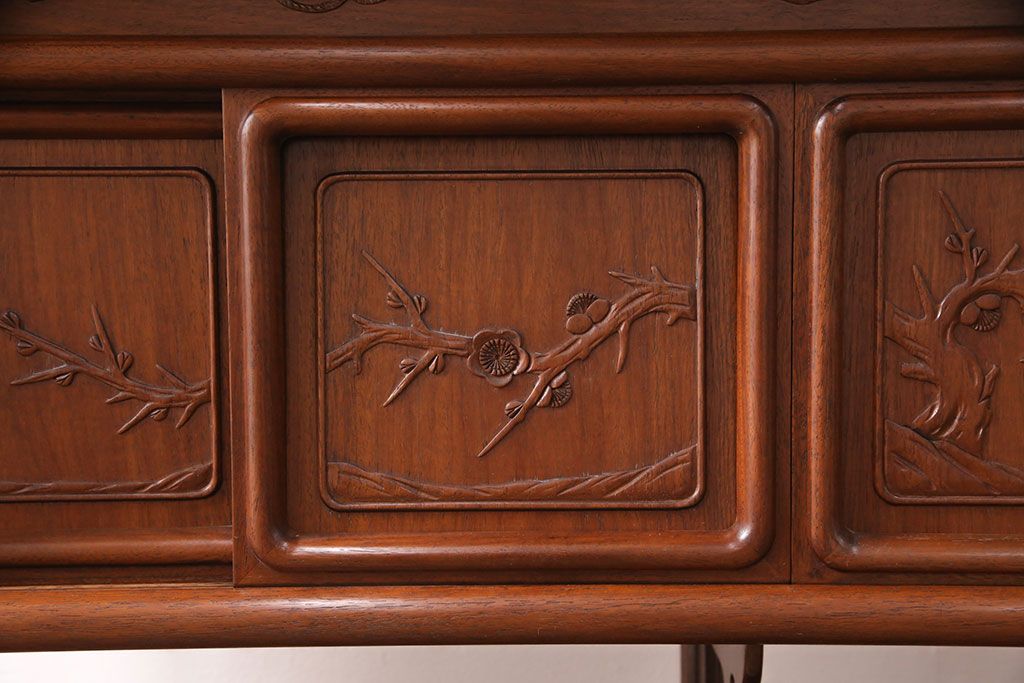 和箪笥 > 中古 美品 伝統工芸家具 中澤唐木製 漆塗りが上品な雰囲気を漂わせるカリン材製の飾り棚(茶棚、収納棚、戸棚、花梨材)(R-051408)