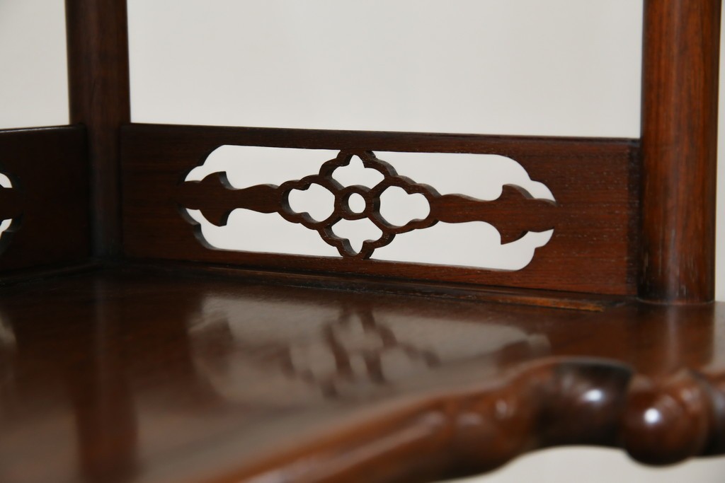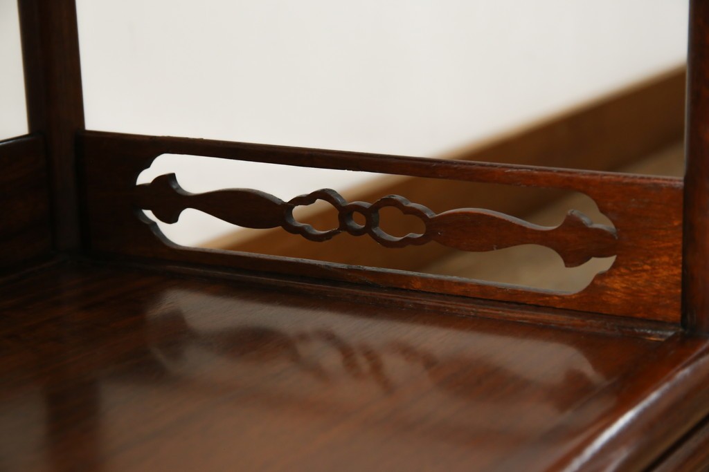 漆塗りが上品な雰囲気を漂わせる中澤唐木製のカリン材の飾り棚です。