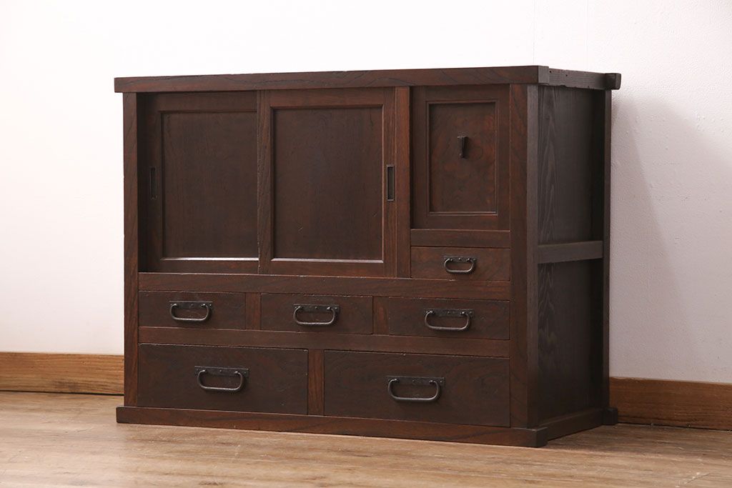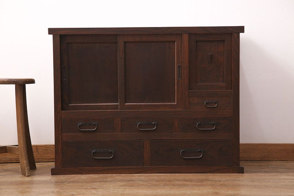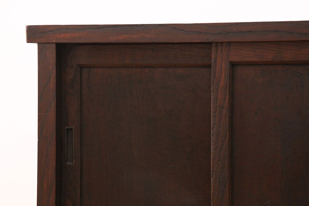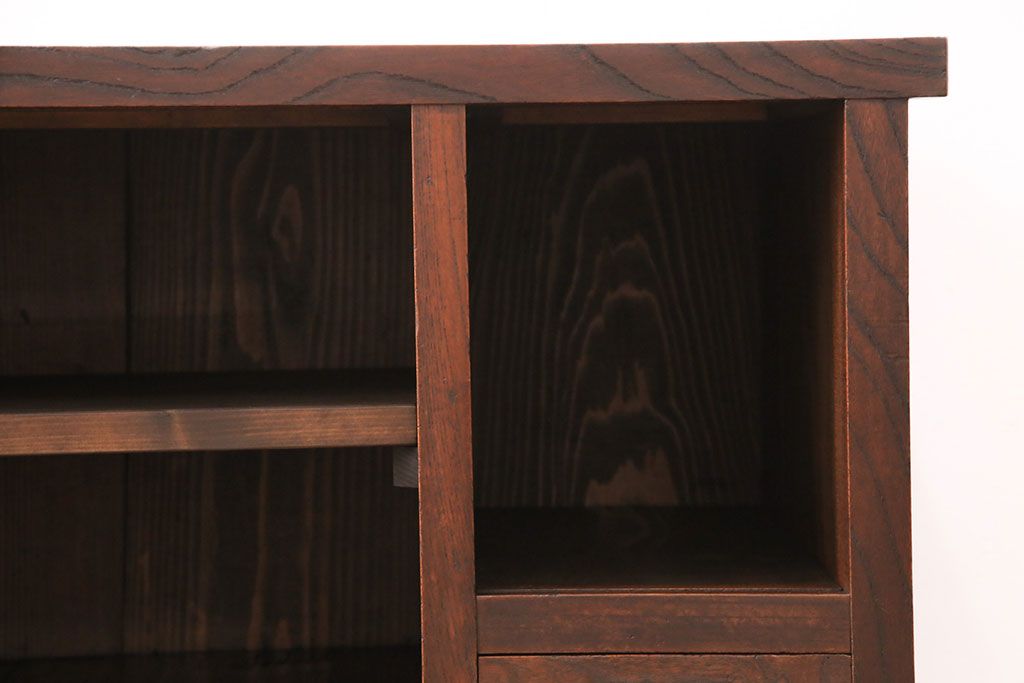 キャビネット・戸棚> 食器棚・カップボード > 関東水屋箪笥の見た目を変えずに綺麗にリペア!天板の突起をカットし、1トーン落ち着いた色味に着色し仕上げ。(収納棚、茶箪笥、キャビネット、食器棚)