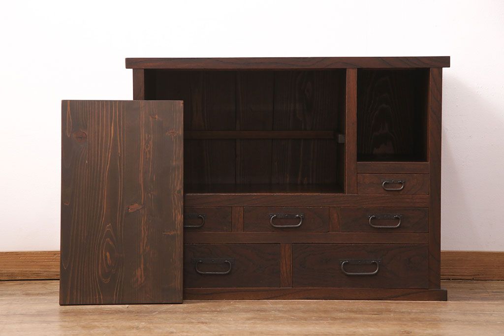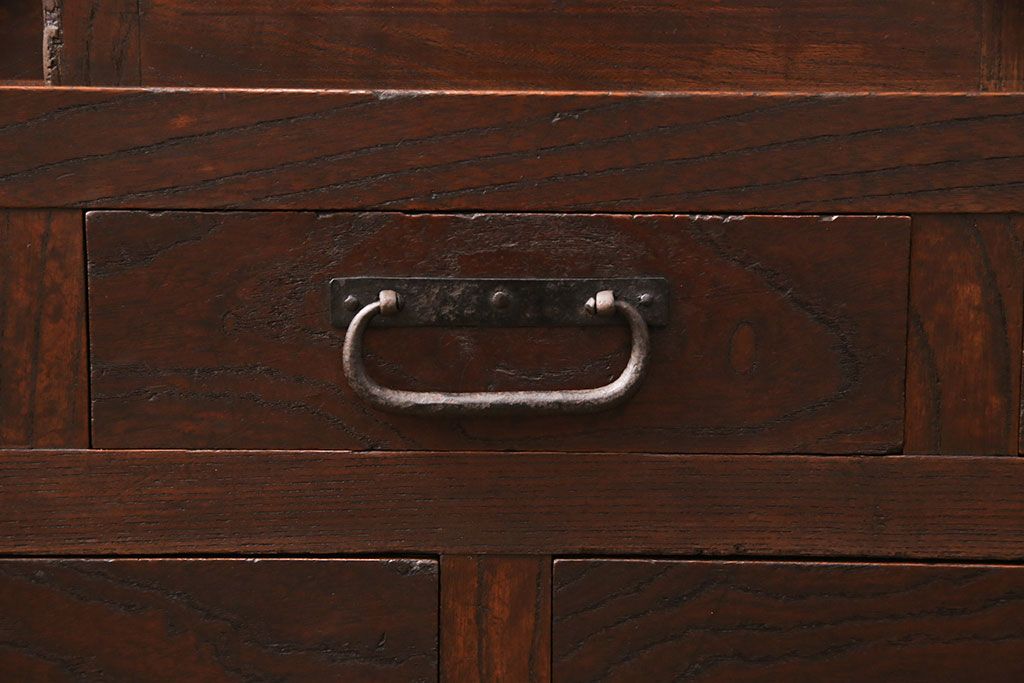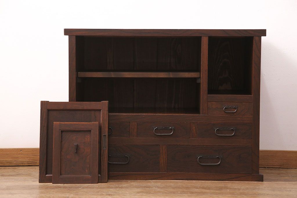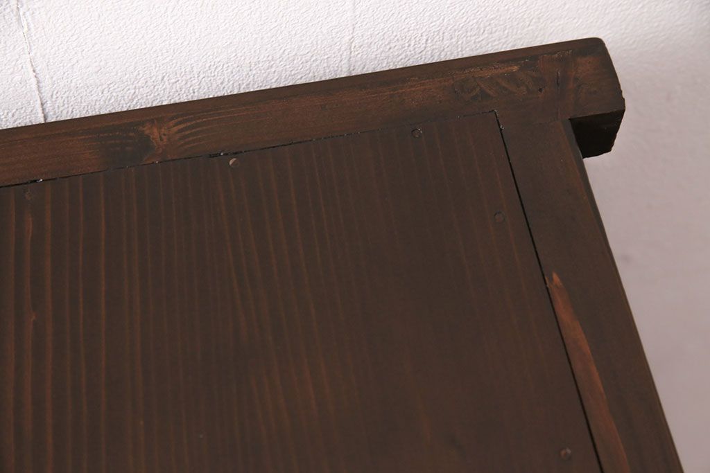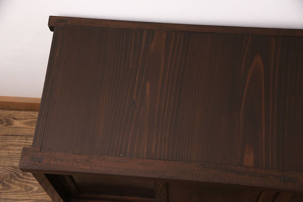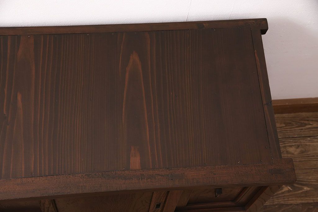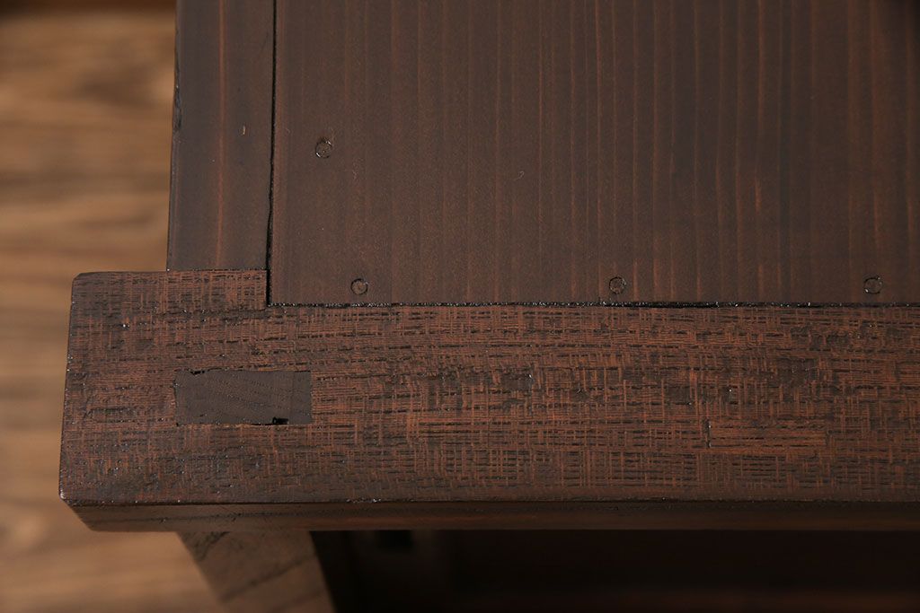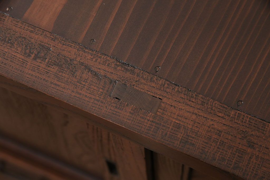 和箪笥> 水屋箪笥 > 関東水屋箪笥の見た目を変えずに綺麗にリペア!天板の突起をカットし、1トーン落ち着いた色味に着色し仕上げ。(収納棚、茶箪笥、キャビネット、食器棚)