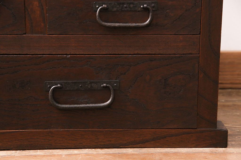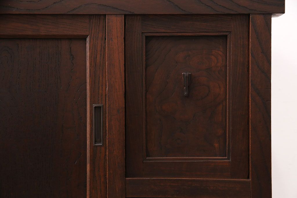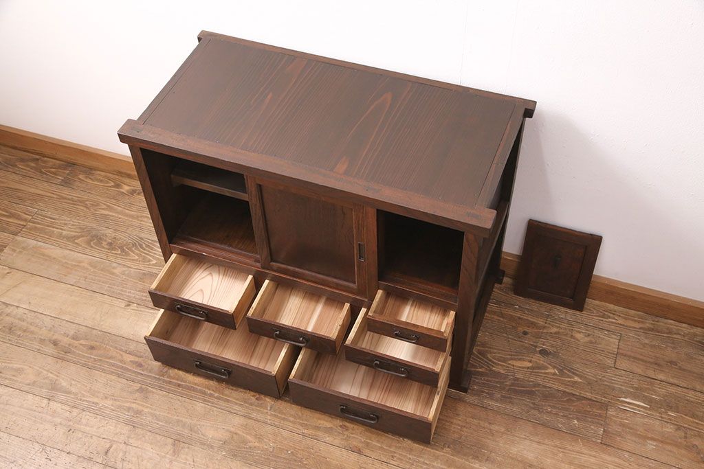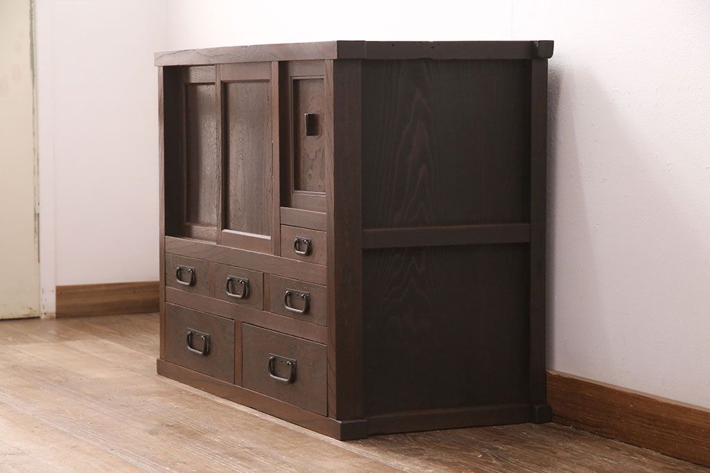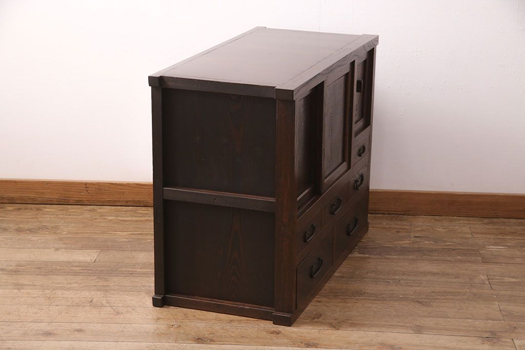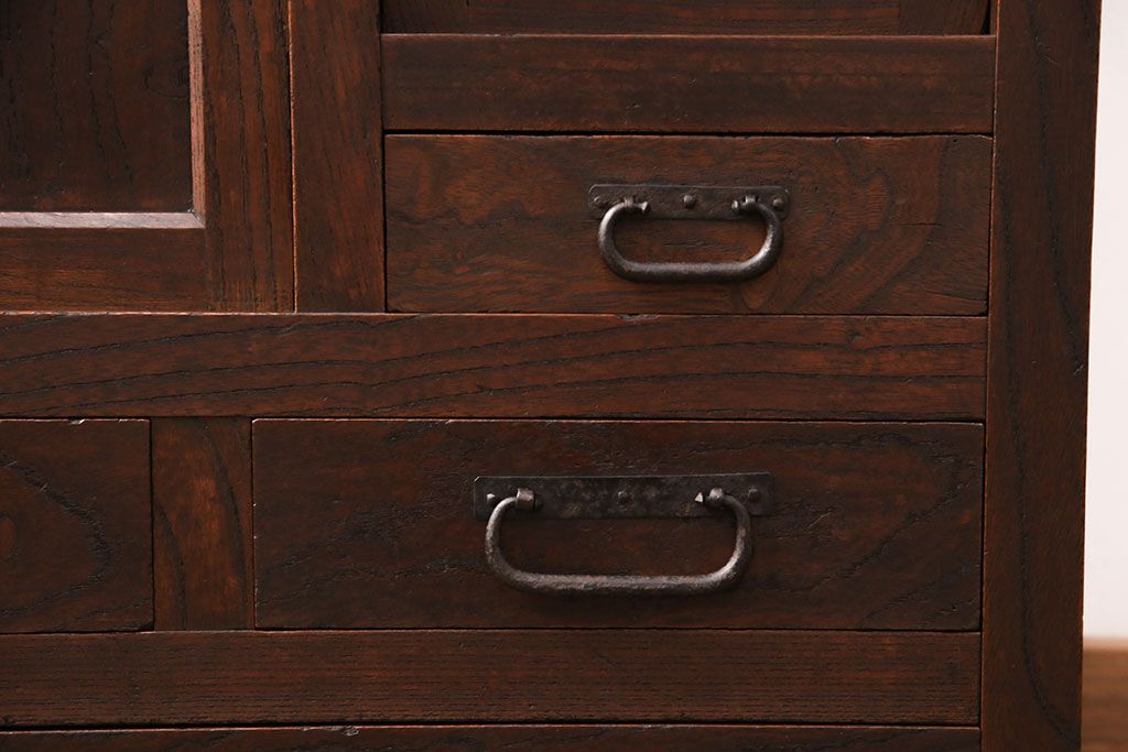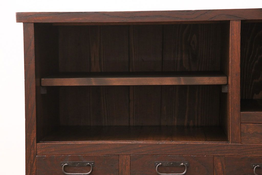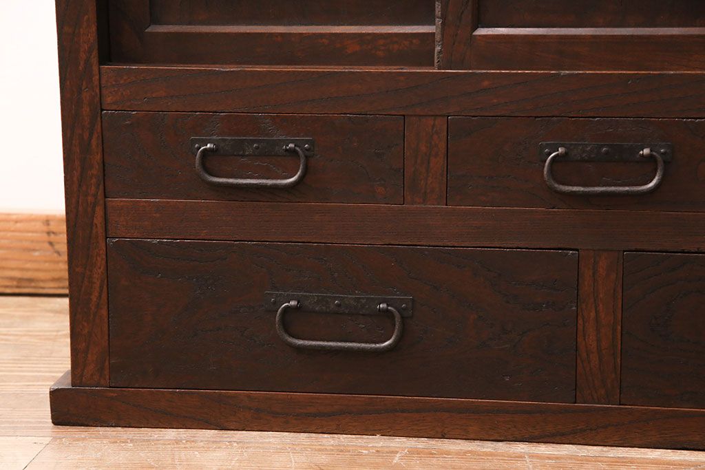 和箪笥> 水屋箪笥 > 関東水屋箪笥の見た目を変えずに綺麗にリペア!天板の突起をカットし、1トーン落ち着いた色味に着色し仕上げ。(収納棚、茶箪笥、キャビネット、食器棚)