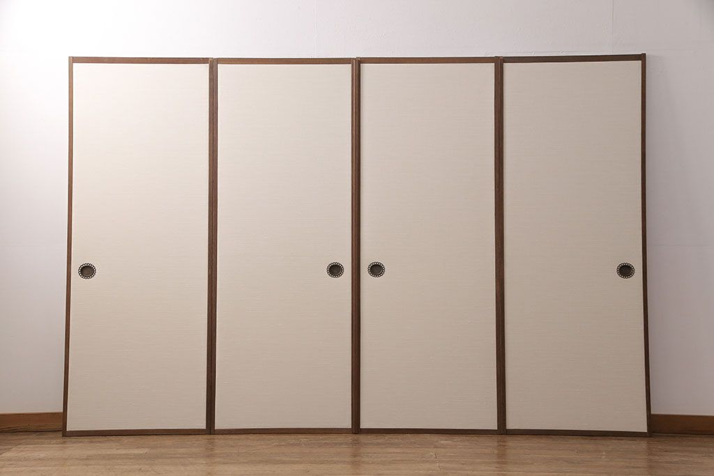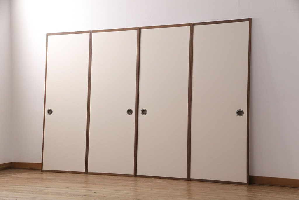 ドア・建具> 4枚〜セット > ふすま4枚にリペア&カスタム!お客様ご支給の雲肌麻紙、鳥の子紙で張り替え。桟は現状に近しい色味に着色し仕上げ。(引き戸、建具、襖)