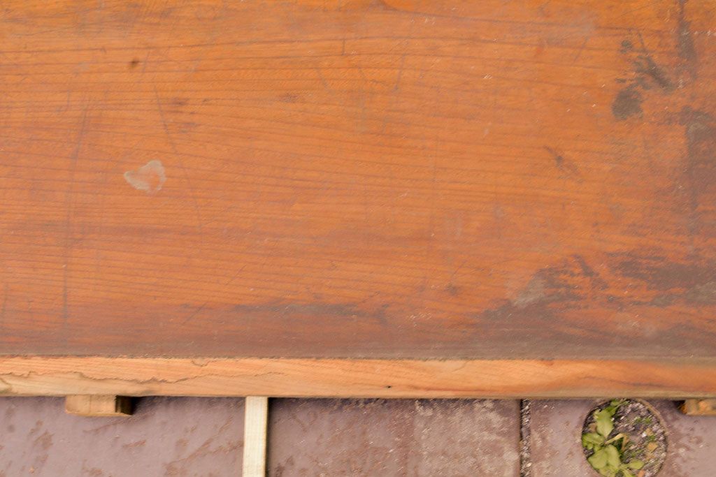 古材 味わいを増した木肌が魅力的な総ケヤキ材一枚板(DIY、材料、板、天板)(R-050283)です。