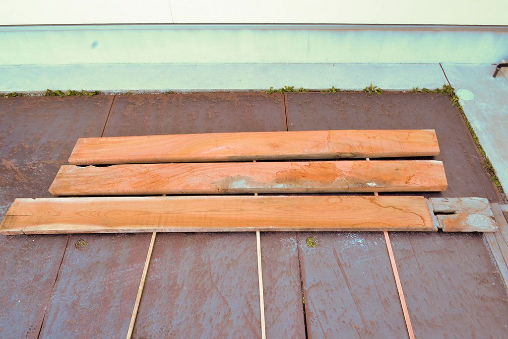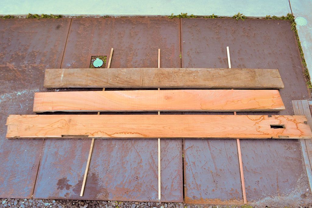 雑貨 > 古材 DIYにおすすめ!古民家の梁に使われていたケヤキ材3枚セット(材料、木材、板)(R-050273)