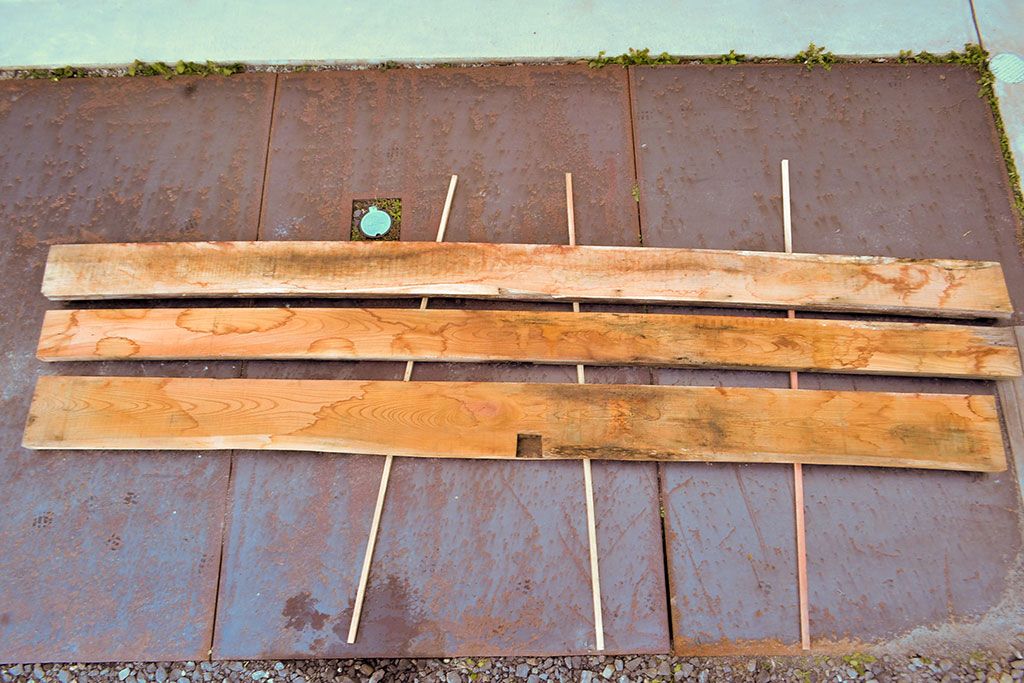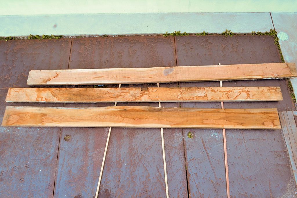 雑貨 > 古材 DIYにおすすめ!古民家の梁に使われていたケヤキ材3枚セット(材料、木材、板)(R-050275)